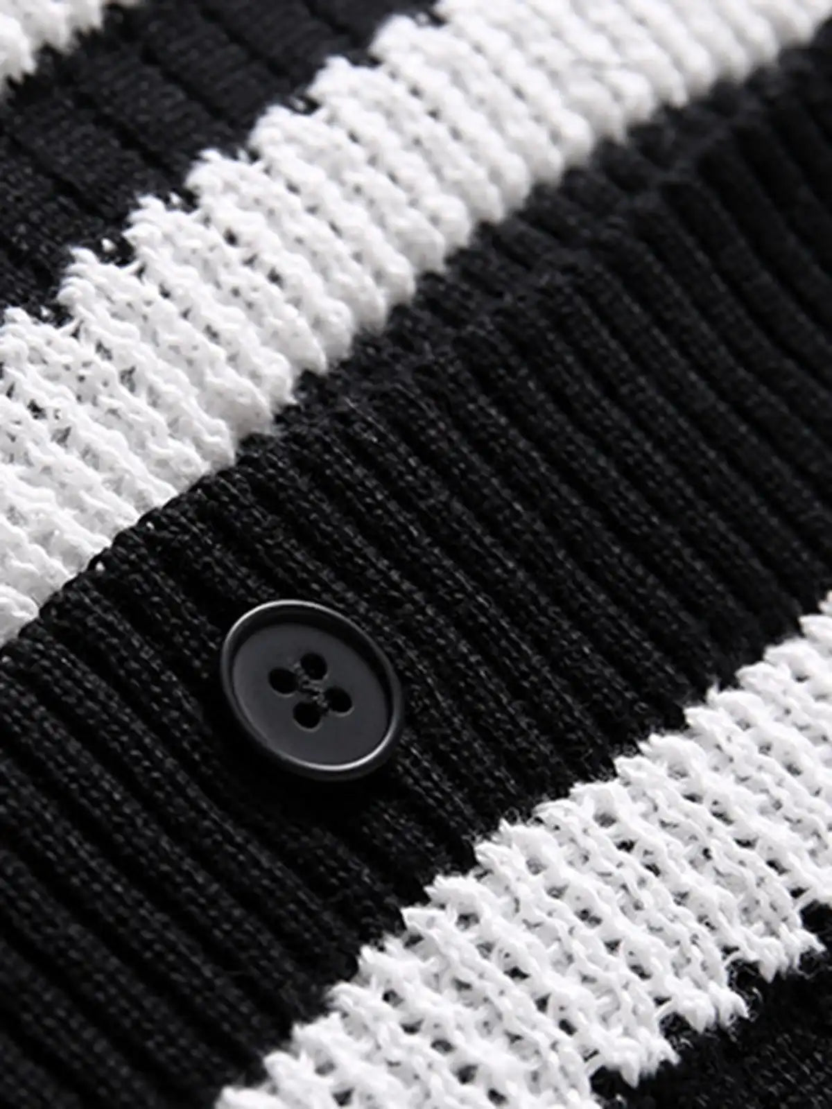 • リブ編みの立体ストライプが視覚的なアクセントを与え、一枚でコーディネートを格上げ