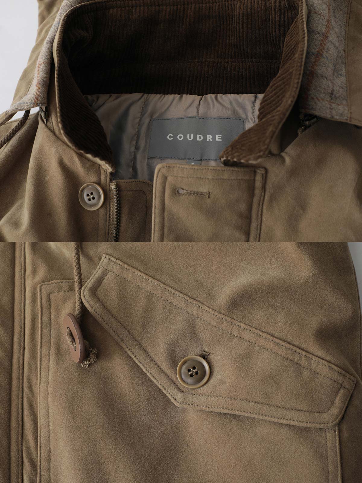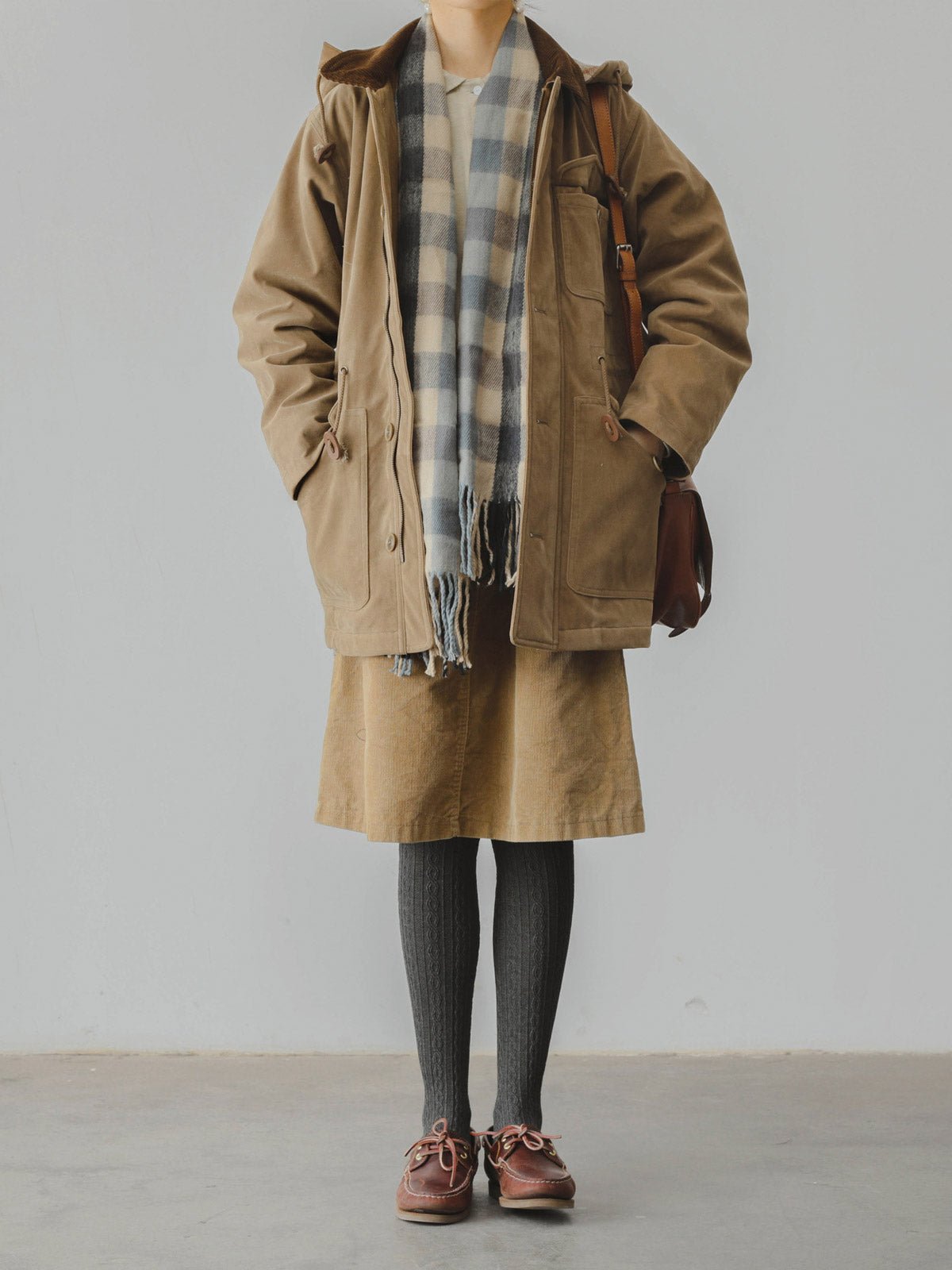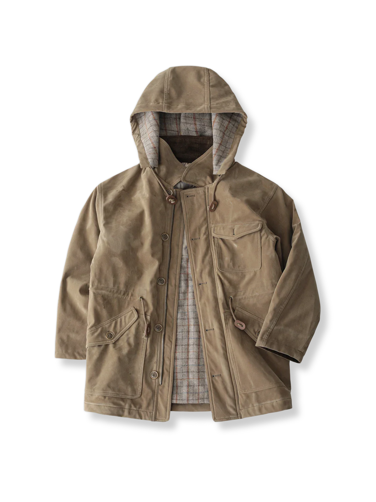 このスエード ベルベットジャケットは、クラシックなワークウェアデザインを採用し、多機能ポケットとゆったりとしたカットが日常の着こなしに実用的かつスタイリッシュな選択肢を提供します。フード付きのデザインはカジュアルでリラックスした雰囲気を加え、内側のチェック柄のディテールはレトロな魅力を演出しています。