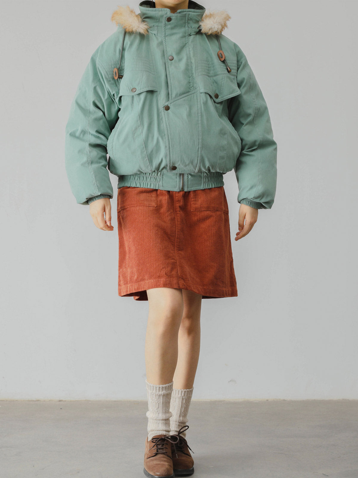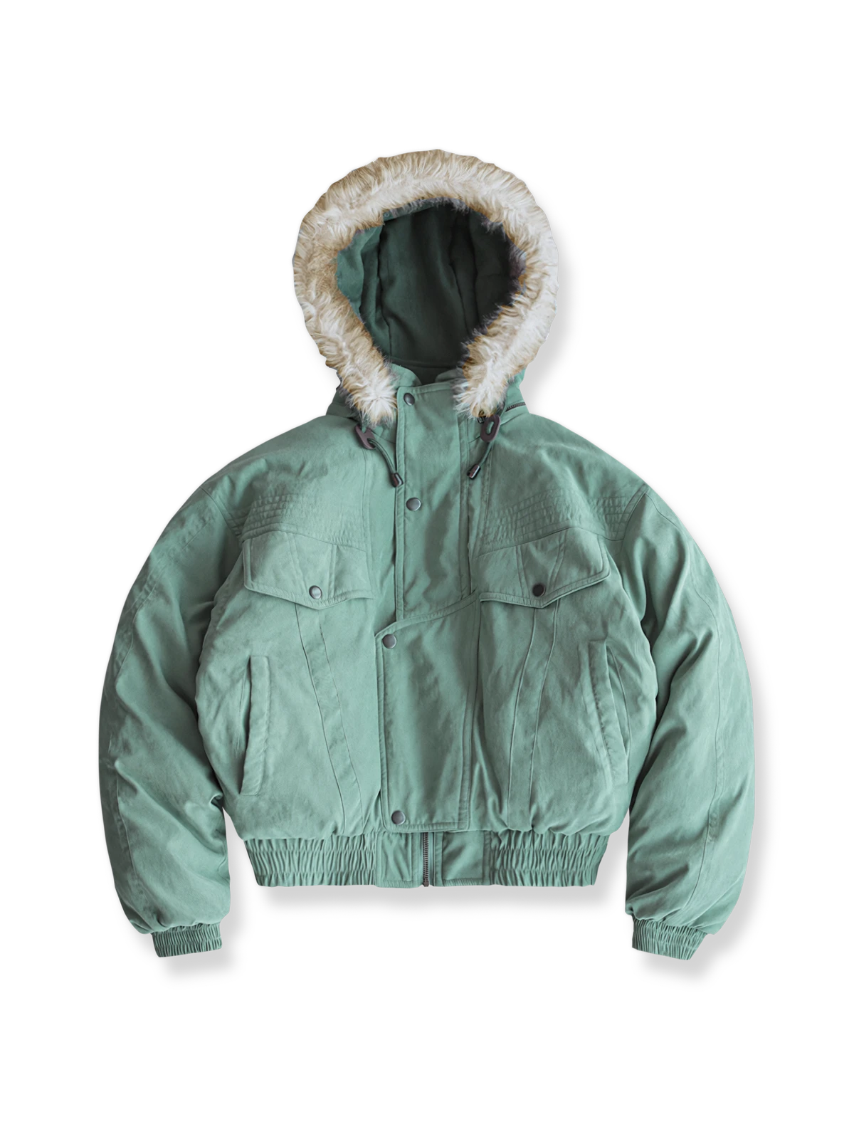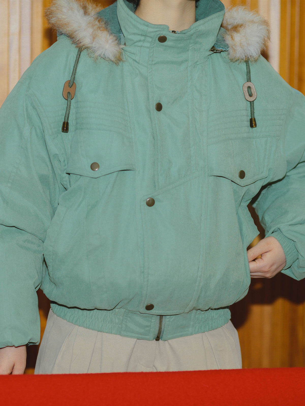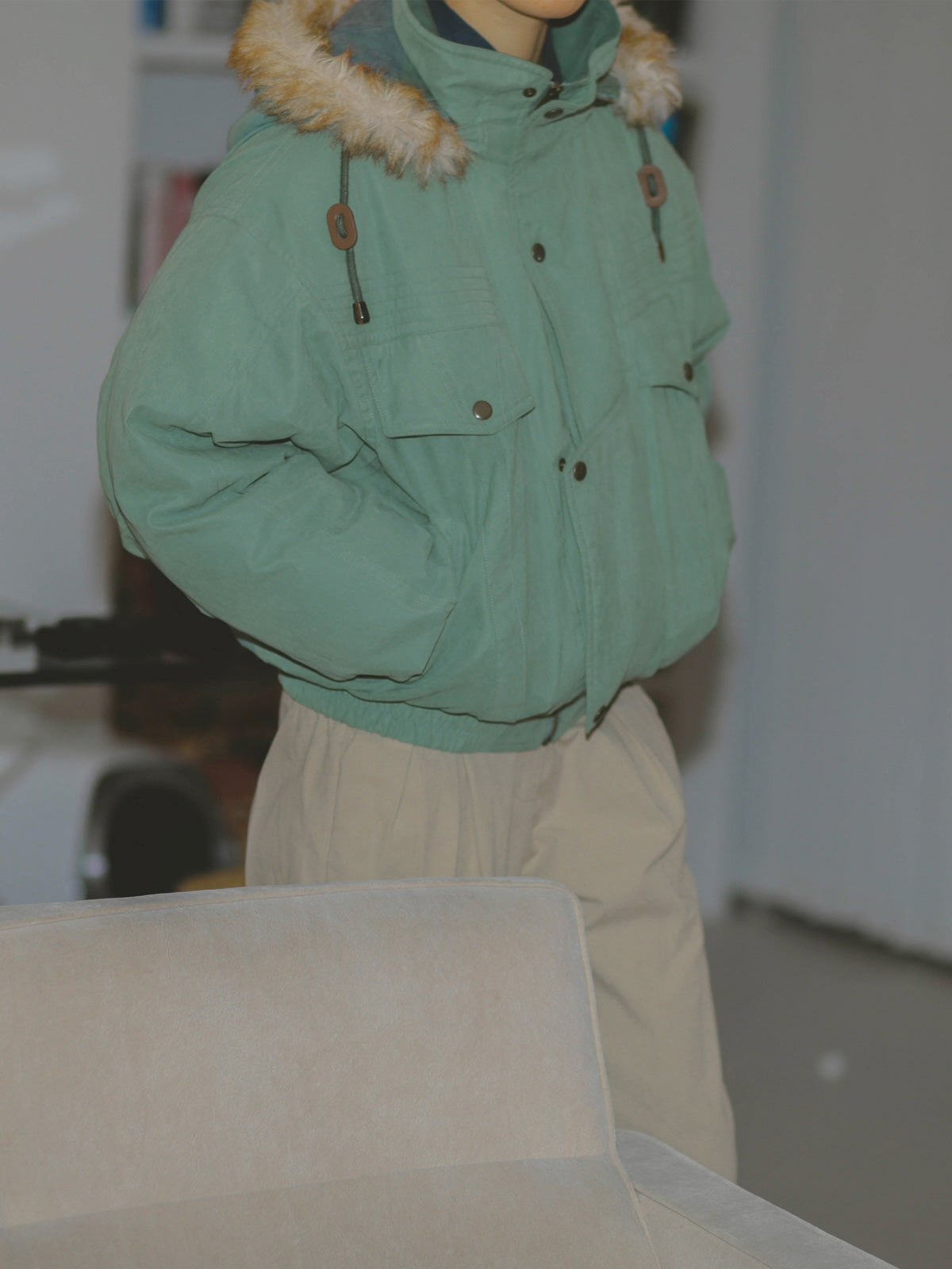 このジャケットは、モーターサイクルジャケットのクラシックなデザインと現代のダウンウェアの暖かさを組み合わせています。パリグリーンという独特の色の選択は、伝統的なモーターサイクルジャケットに新しいファッションの息吹をもたらし、同時にレトロファッションの現代的な解釈を体現しています。