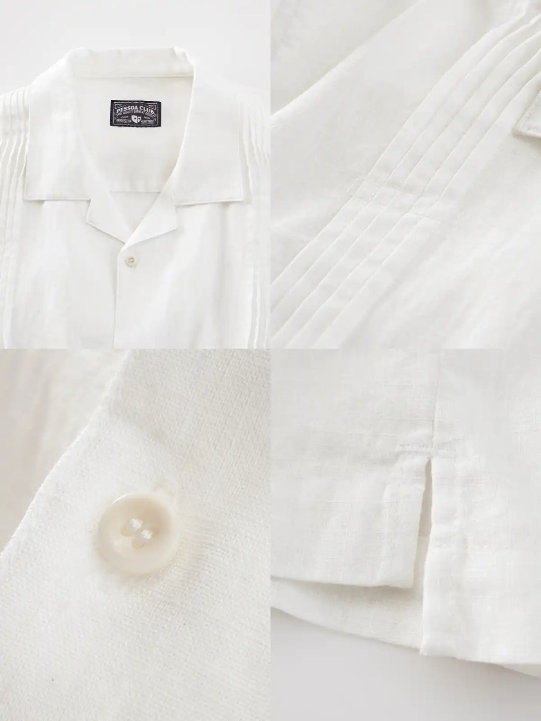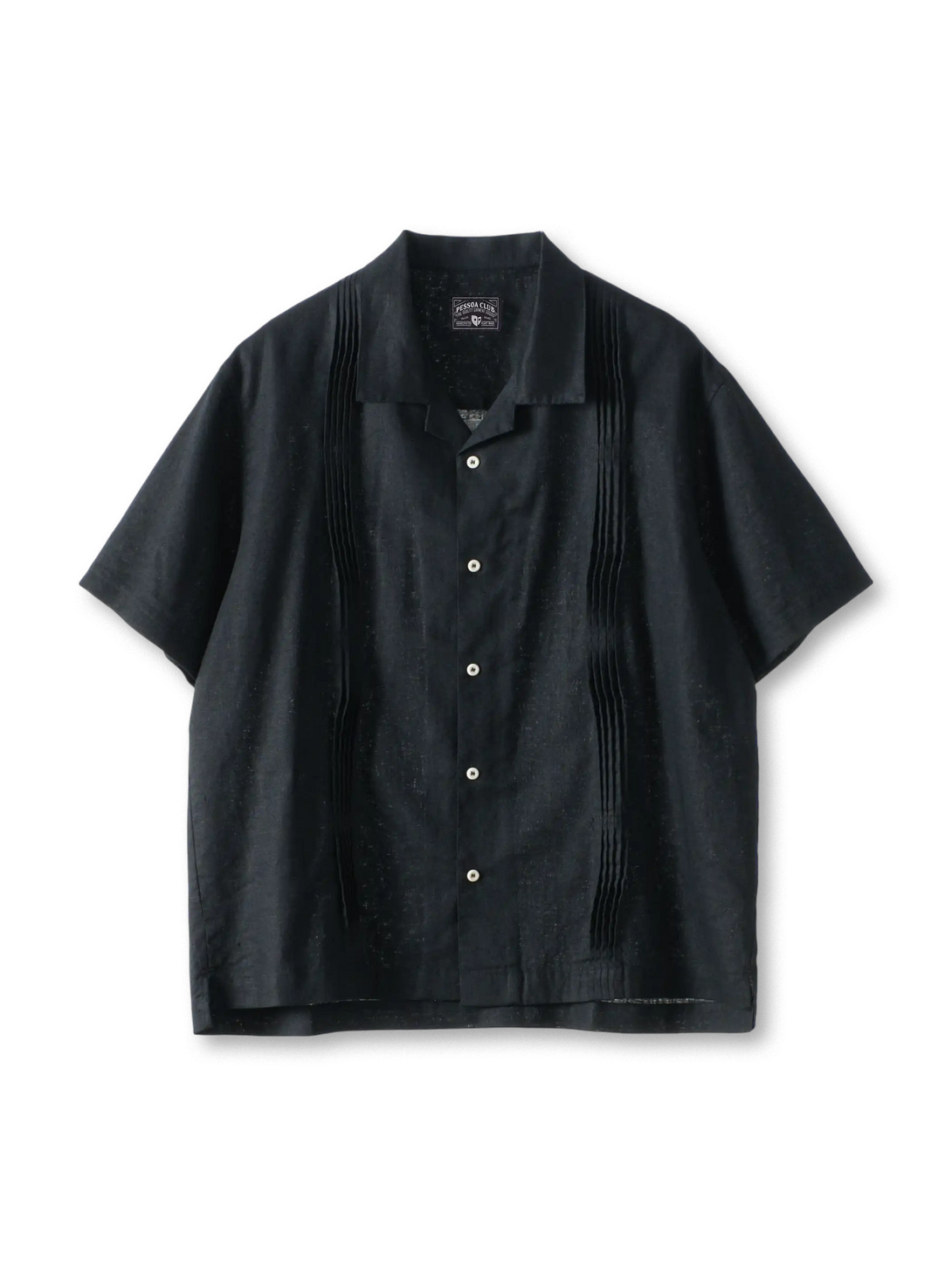 古来のグアヤベラに由来するキューバカラーは自然に外開き、首筋を美しく見せる。前身頃のオルガンプリーツは光と陰影で繊細な立体感を生み、背面のギャザーがゆとりを確保しつつ動きやすさを向上。80%ラミー・20%コットンの混紡生地は管状繊維構造により高い通気性とドライ感を実現し、テーラードパンツやデニムと合わせることで上品な夏のスタイルが完成します。