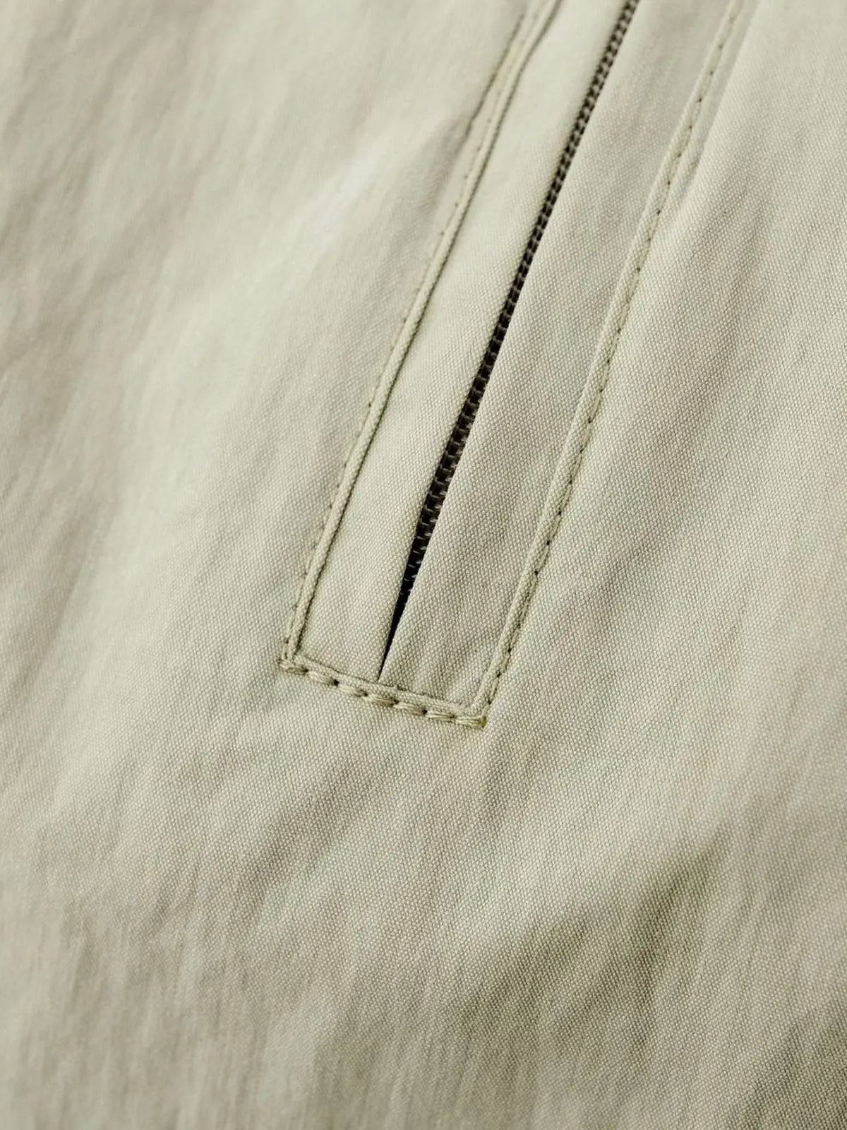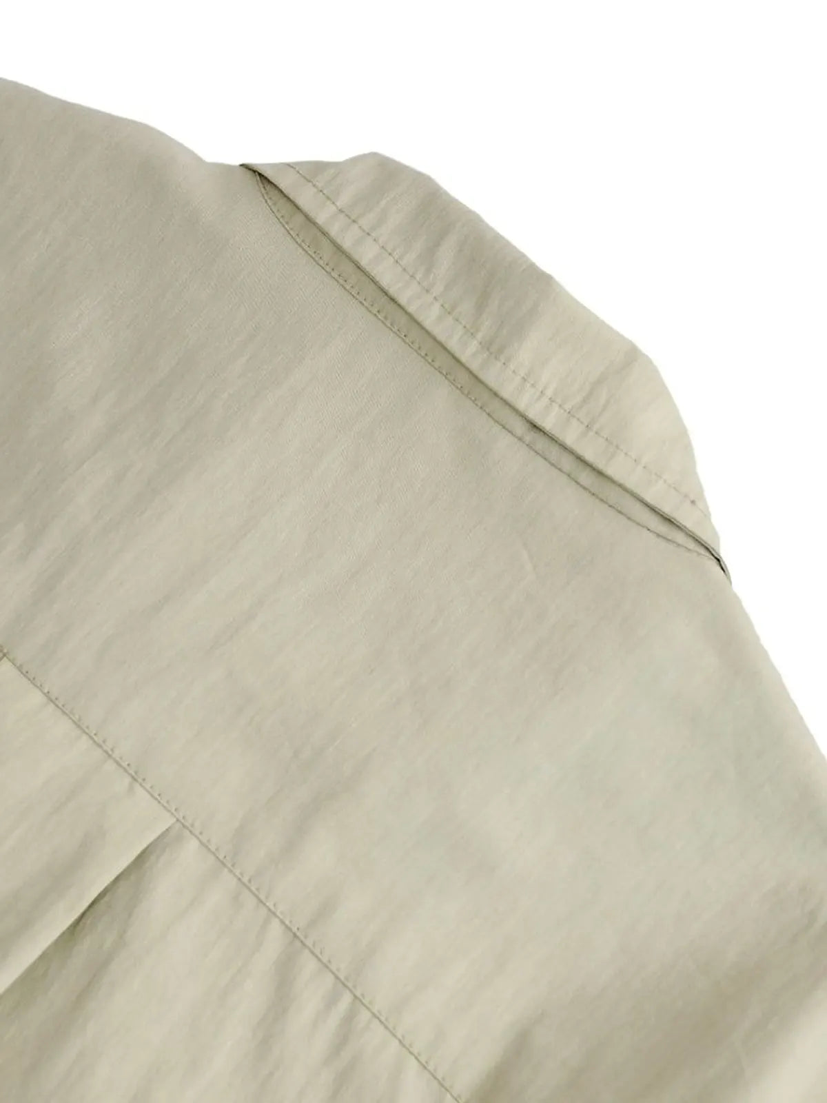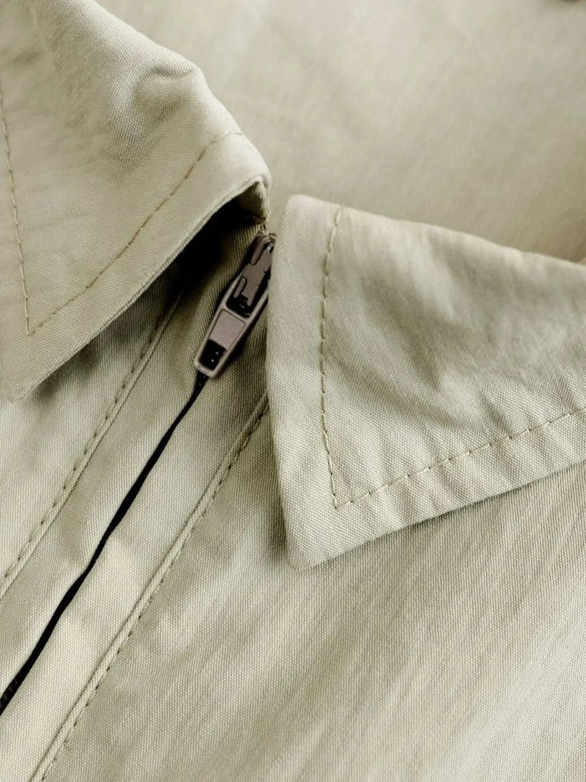 1940年代の米軍ユーティリティシャツに着想を得たシャツは、コンパクトなジッププルオーバー仕様で着脱が簡単。胸ポケットと左袖のツールポケットで機能性を確保し、腰回りはボックスシルエットでリラックス感を演出。薄手のコットンが涼しく爽快で、チノパンやデニムと合わせたミリタリーテイストのカジュアルコーデに最適です。