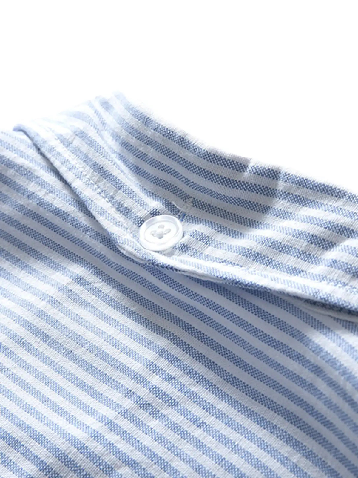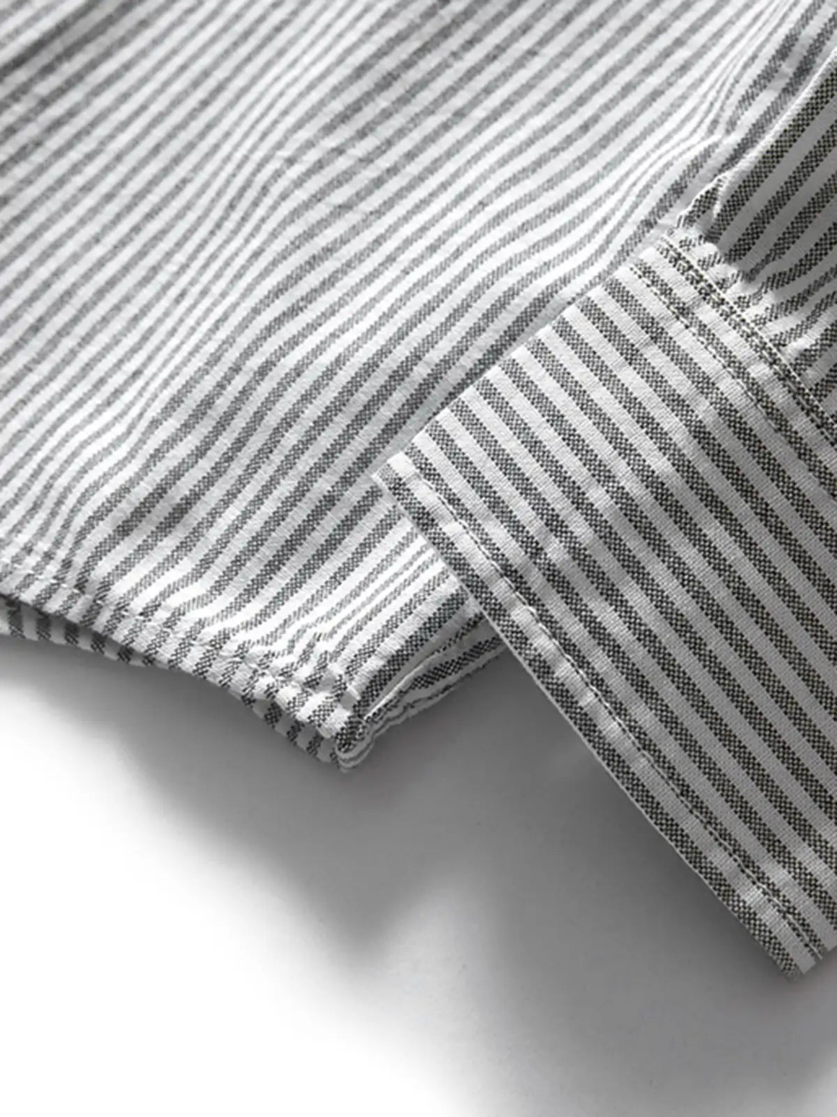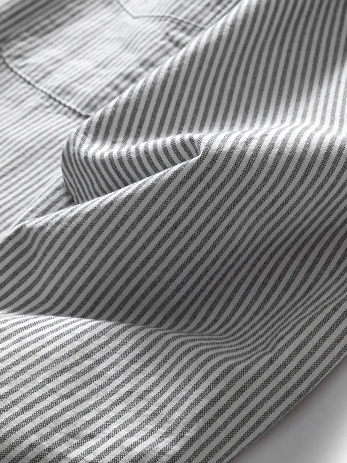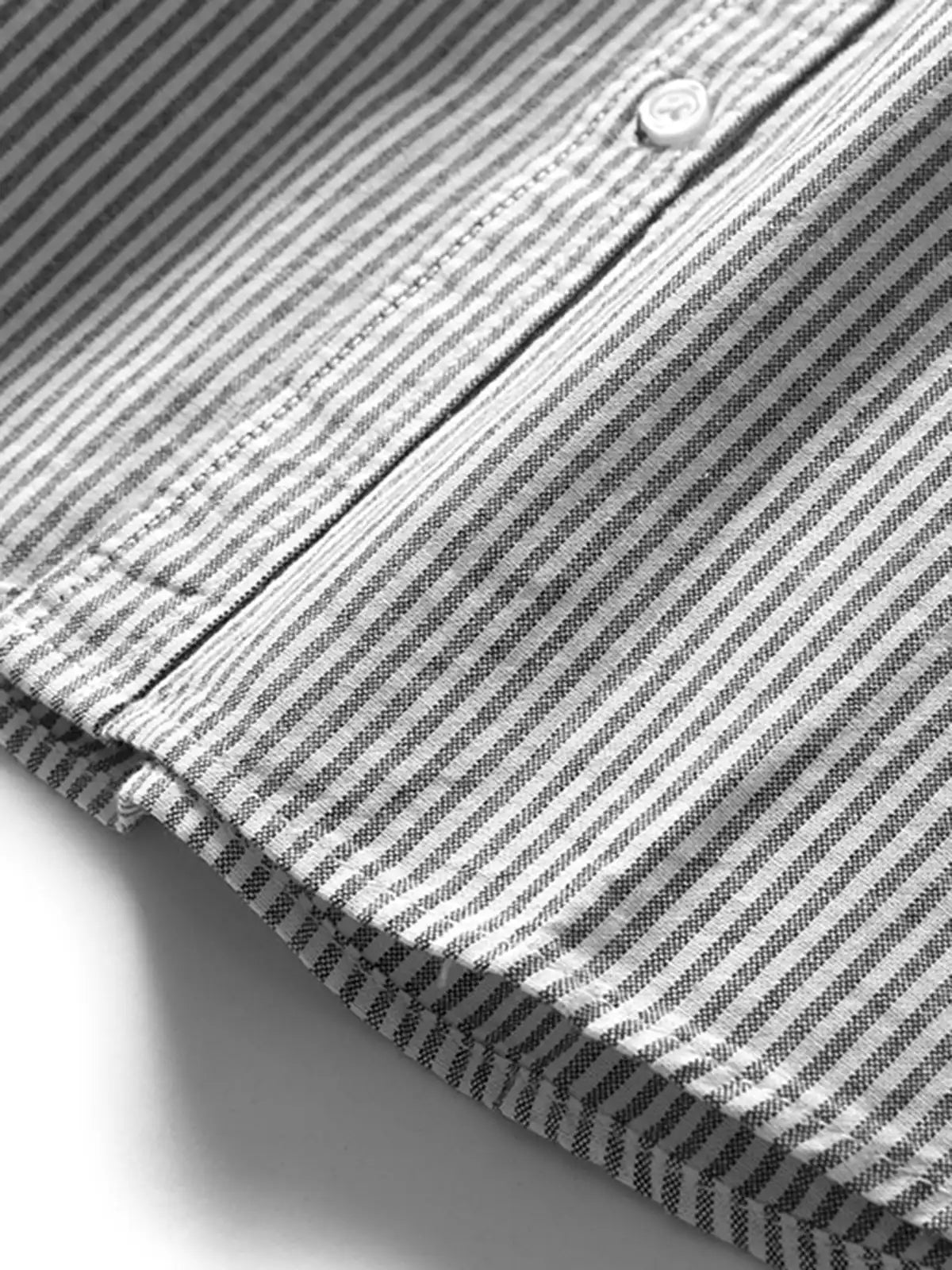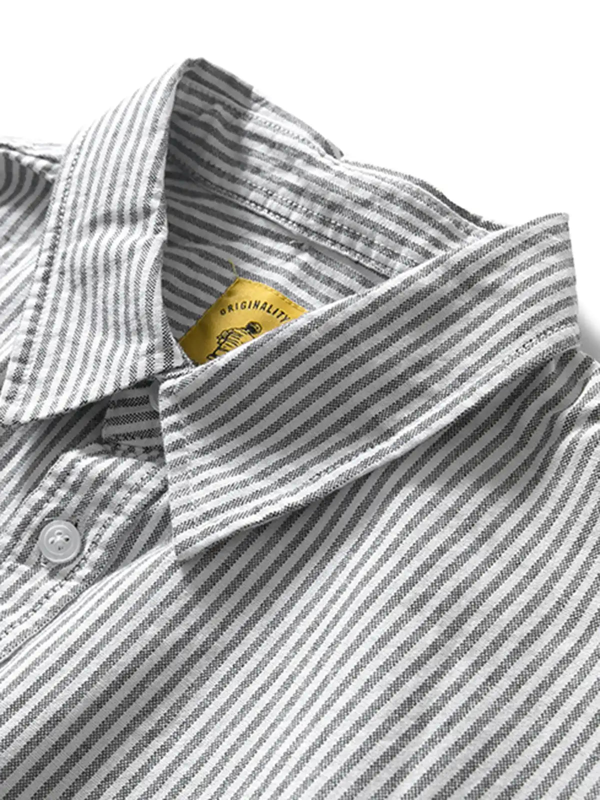 シンプルかつ上品なストライプ柄のオックスフォード生地を使用し、胸元の小さな刺繍がポイントに。コットン100%素材で通気性と肌触りが良く、季節を問わず快適に着用できます。ルーズフィットでリラックス感があり、デニムやチノパンとの相性も抜群。カジュアルからきれいめまで、幅広いスタイリングを楽しめる万能アイテムです。
