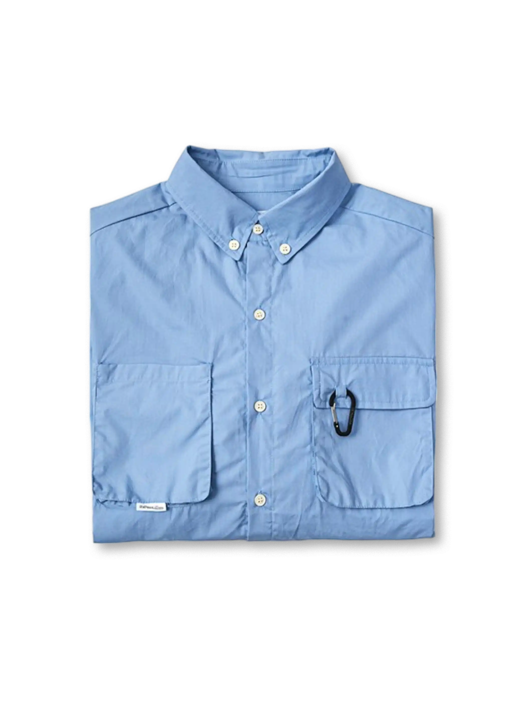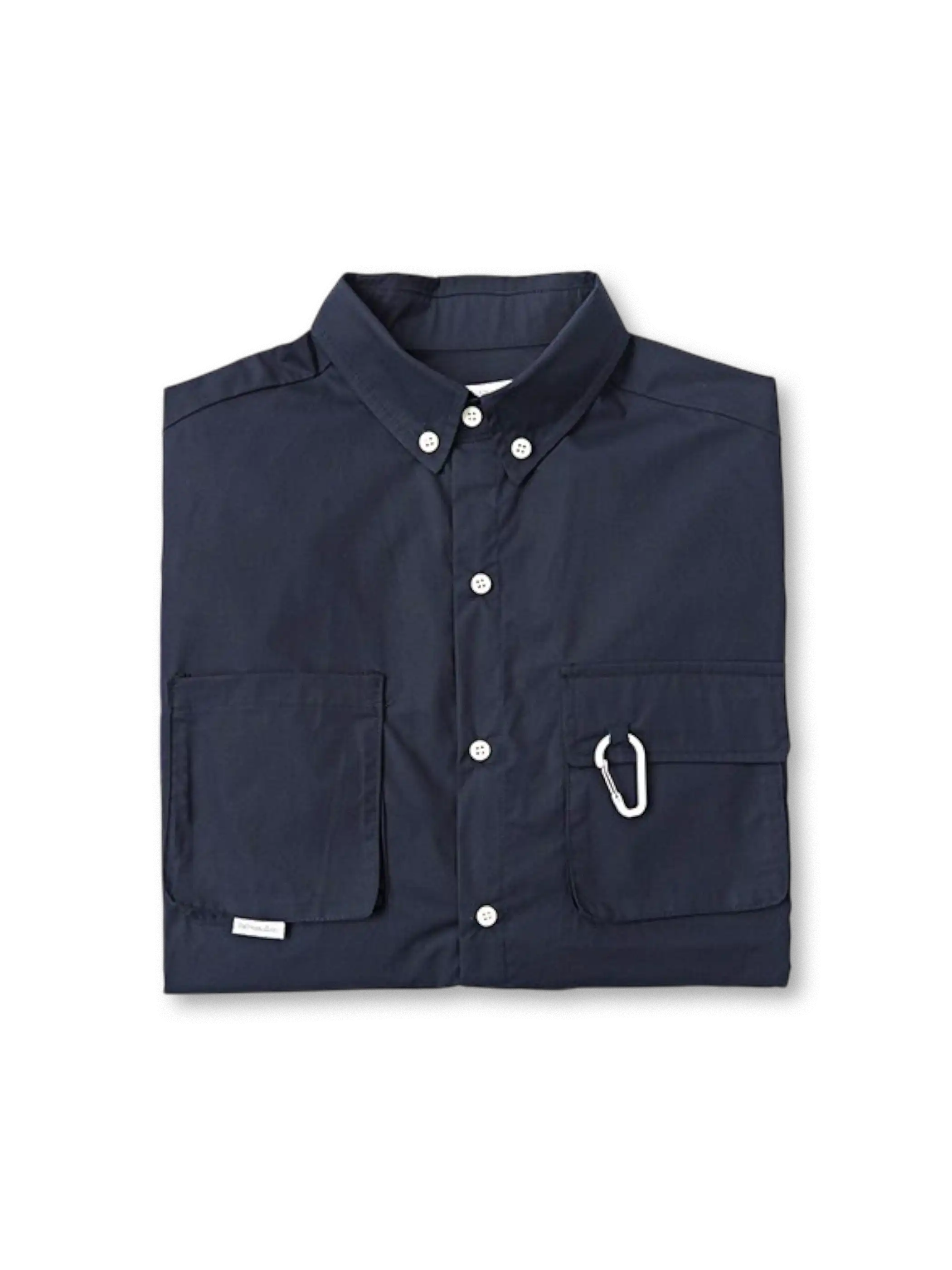 このシャツは、オーバーサイズのボックスシルエットに仕上げられ、胸元や袖部に複数のポケットを配して実用性を高めています。100%コットン生地を使用し、コシのある風合いがヴィンテージ感と耐久性を両立。襟はボタンダウン仕様で、カジュアルななかにもきちんと感を残し、アウトドアからシティユースまでさまざまなスタイルに対応。袖口には調節可能なカフスを備え、動きやすさと快適性を考慮したデザインです。サイドに深めのラウンドカットを入れることで、レイヤード時も美しいラインを保ち、春夏のライトアウター感覚としても重宝します。心地良いコットンの通気性と堅牢な縫製が合わさり、長く愛用できるワードローブの定番アイテムとしておすすめです。
