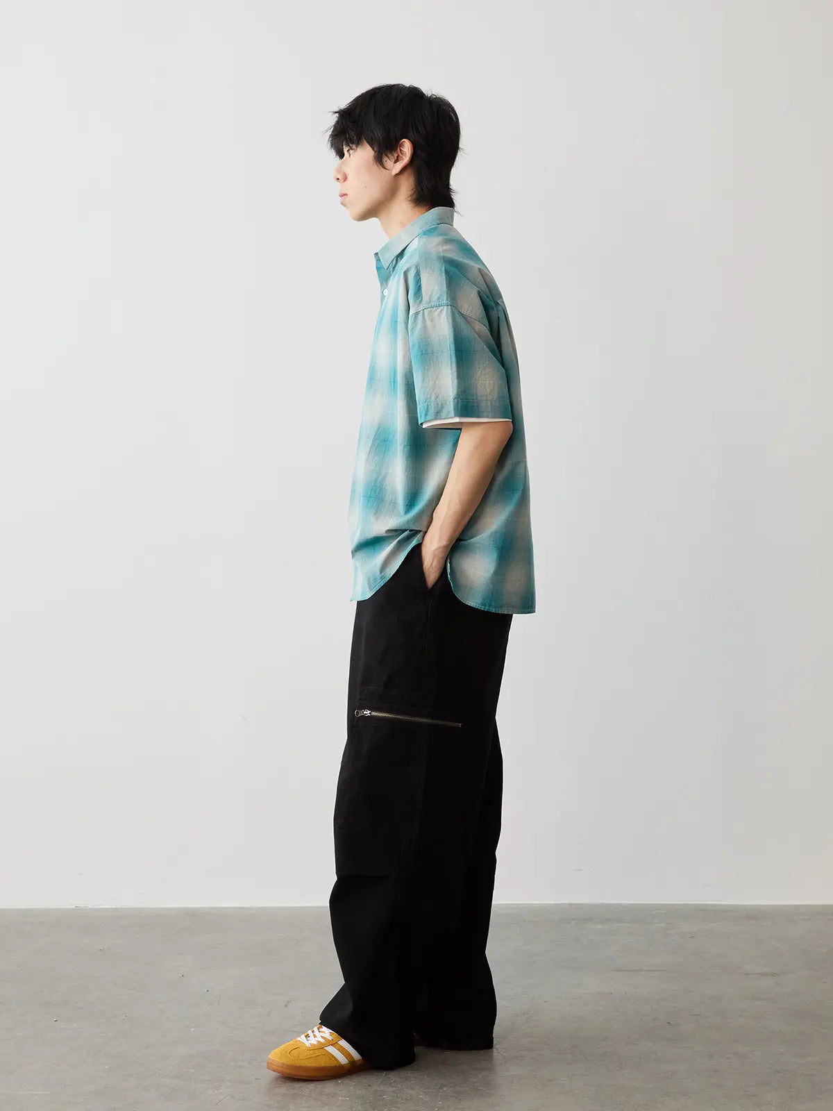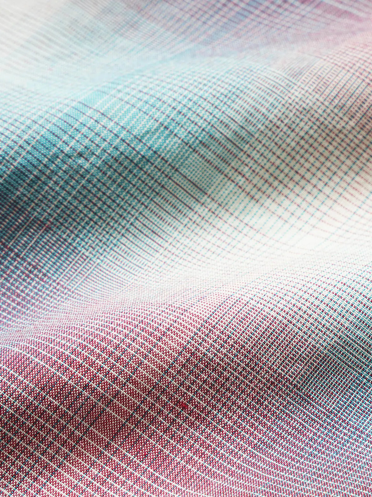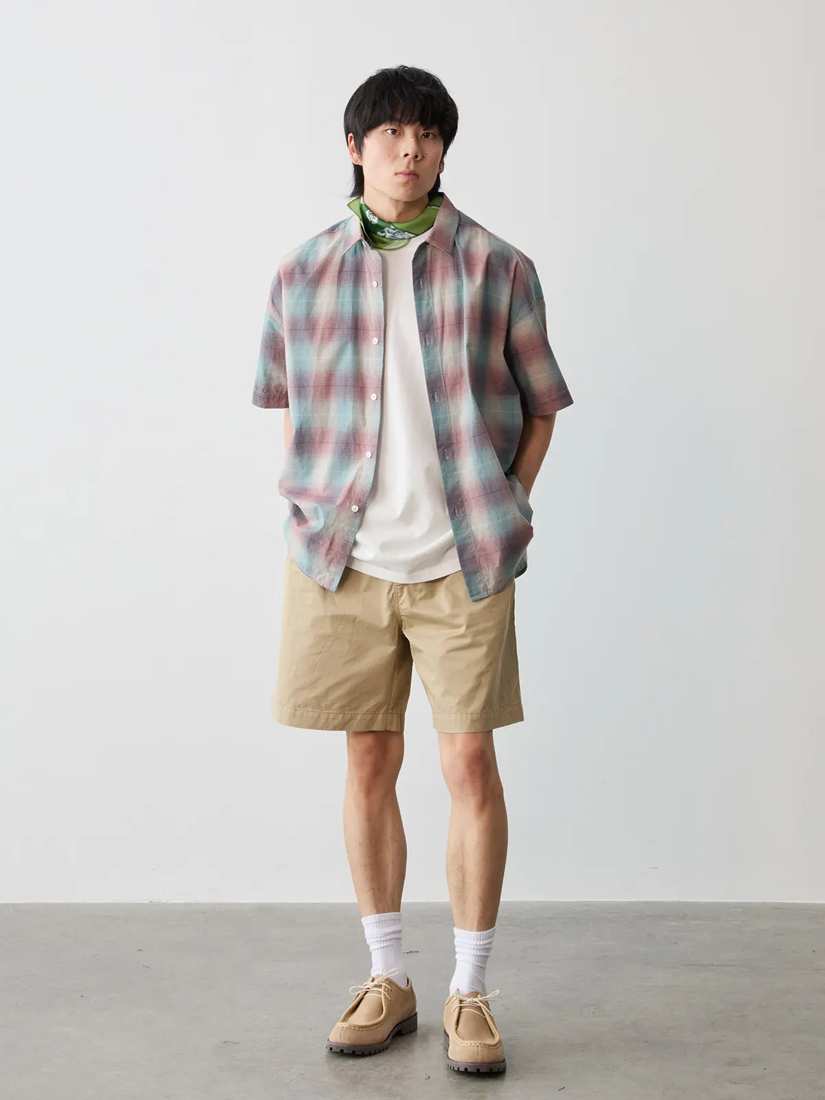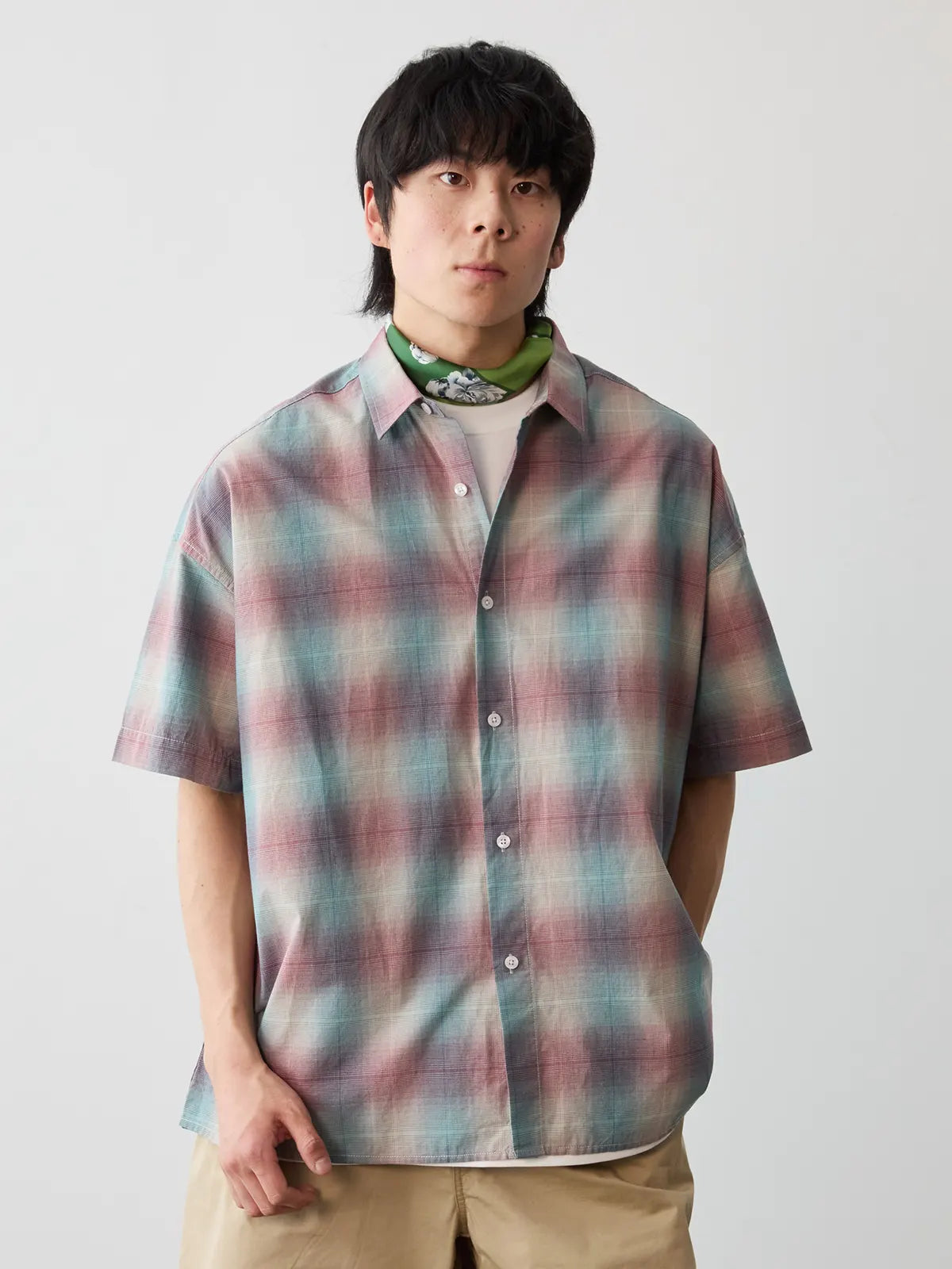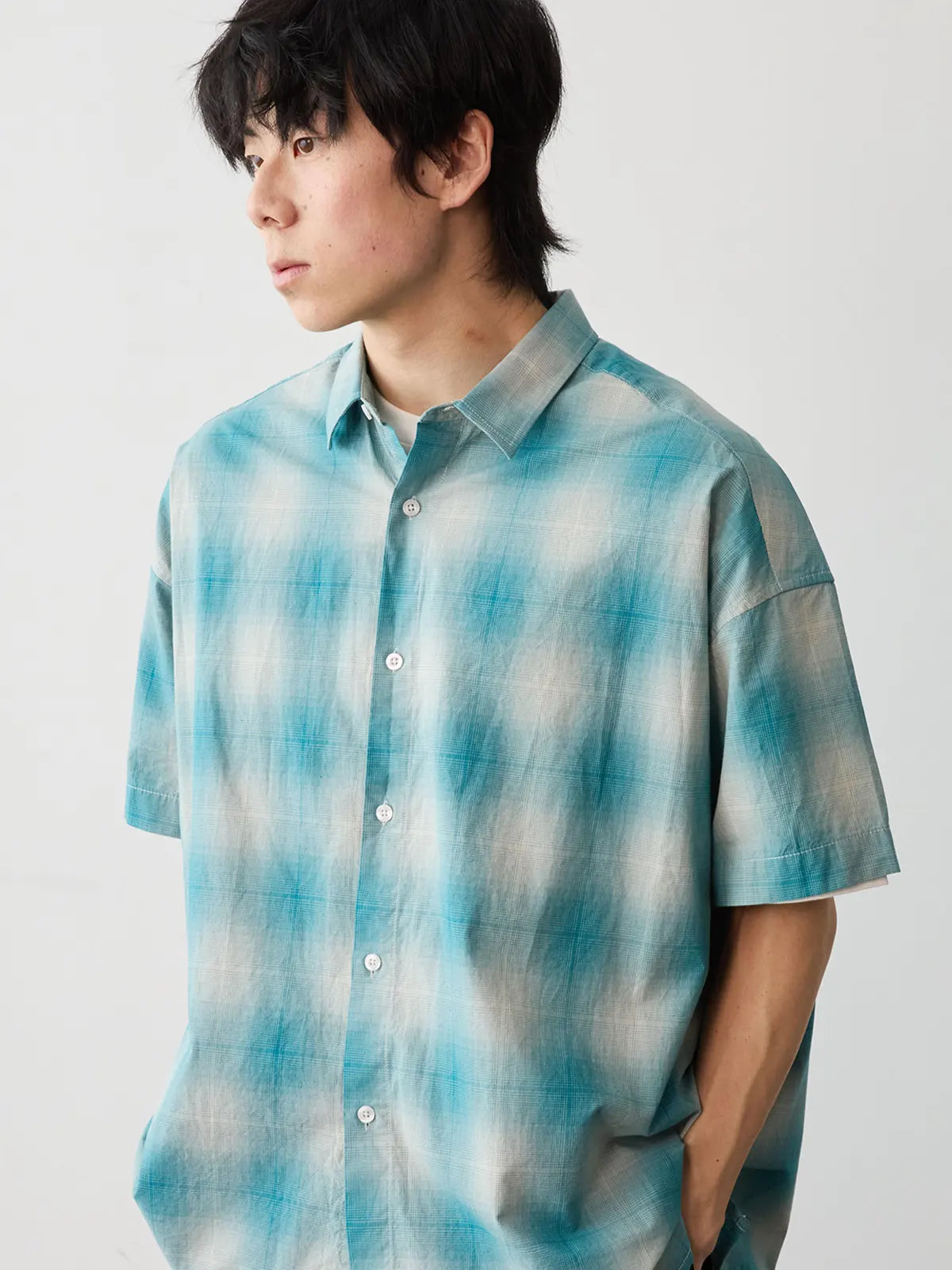 淡く溶け合うグラデーションチェック柄をボックスシルエットで仕立てた、着回し力抜群の半袖シャツです。