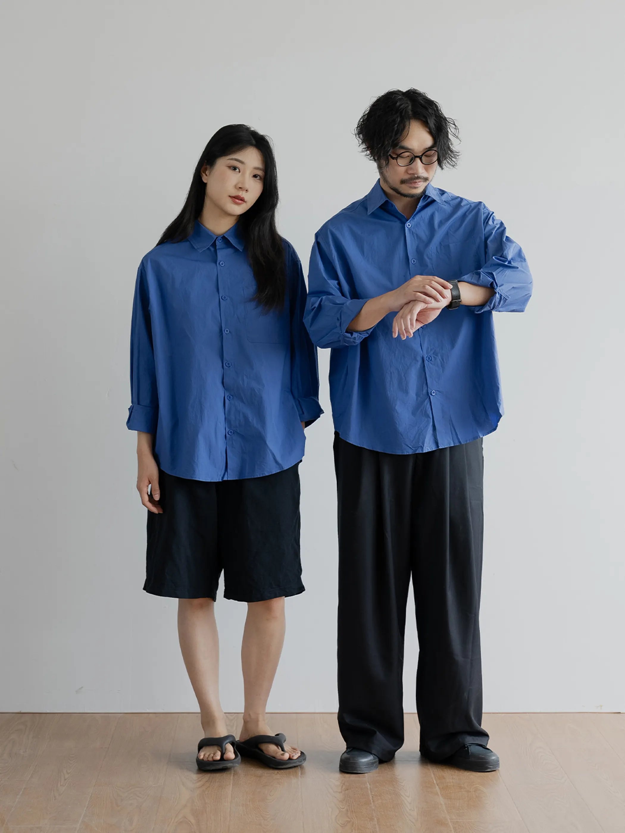 フランスの画家イヴ・クラインが愛した超鮮やかな「クラインブルー」に着想を得て生まれたこのシャツは、時代を超えて愛される色彩の力をまといながらも、純綿100%のさらりとした生地が肌を優しく包み、ルーズフィットのボディはあらゆる体型に心地よくフィットします。無駄を削ぎ落としたミニマルなデザインは、ヴィンテージのクラシカルな趣を漂わせつつ、ワイドパンツやタック入りチノを合わせるだけで洗練されたリラックスカジュアルが完成し、デイリーユースからライトなドレスアップまで自在に活躍します。