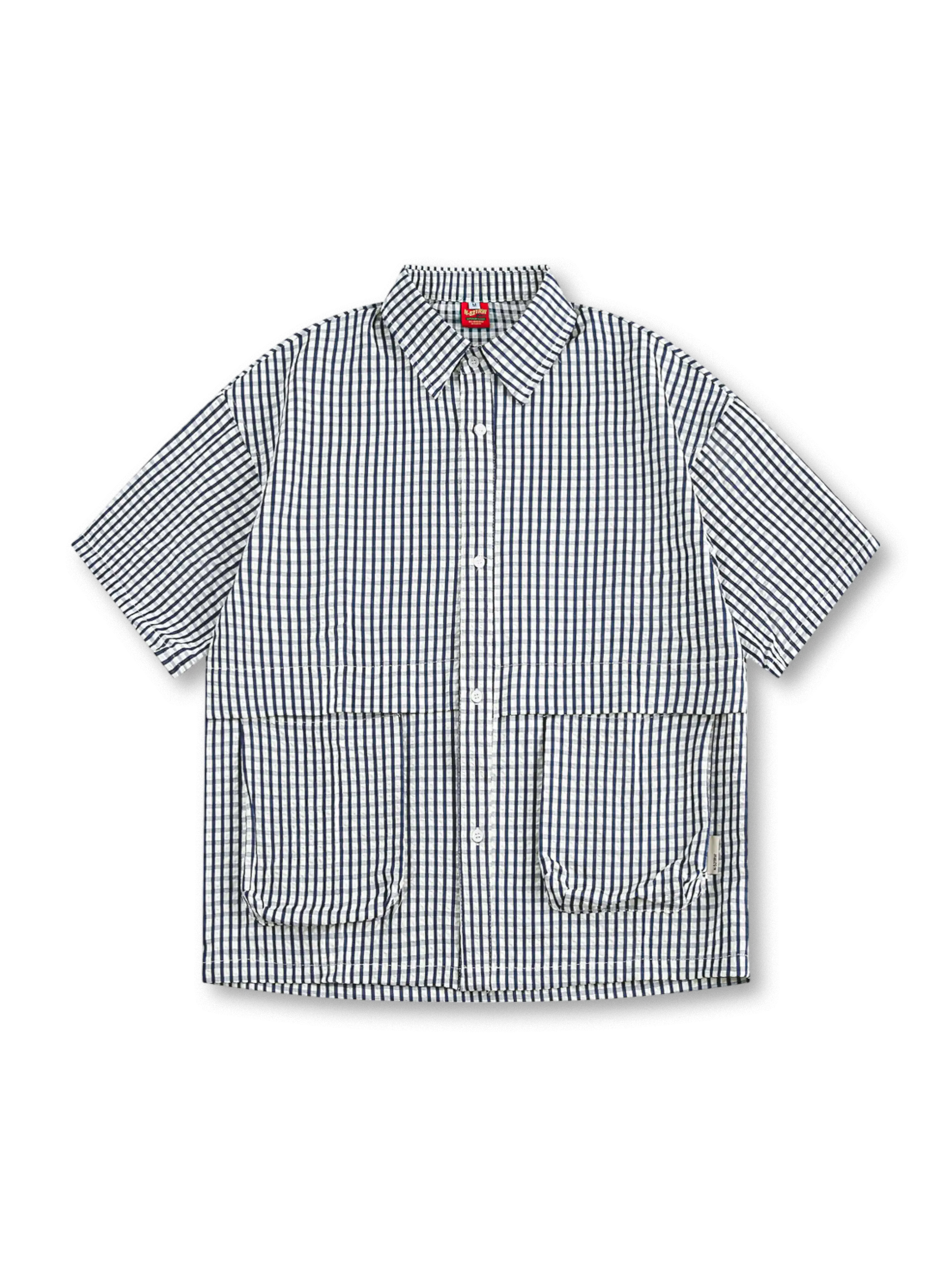 本製品は、ポリエステル50%とコットン50%を混紡した生地を採用し、通気性と耐久性のバランスを両立したワークライクな半袖シャツです。大きめのフロントポケットが印象的で、実用性とデザイン性を兼ね備えています。全体的にゆとりのあるシルエットは、ストリート感やリラックス感を演出しながら、チェック柄による軽快さをプラス。シャツ単体での着用はもちろん、インナーにTシャツを合わせたレイヤードスタイルでも様になります。カラーは落ち着いたトーンのチェック柄で、さまざまなボトムスとの相性がよく、シーズンを問わず重宝するアイテムです。