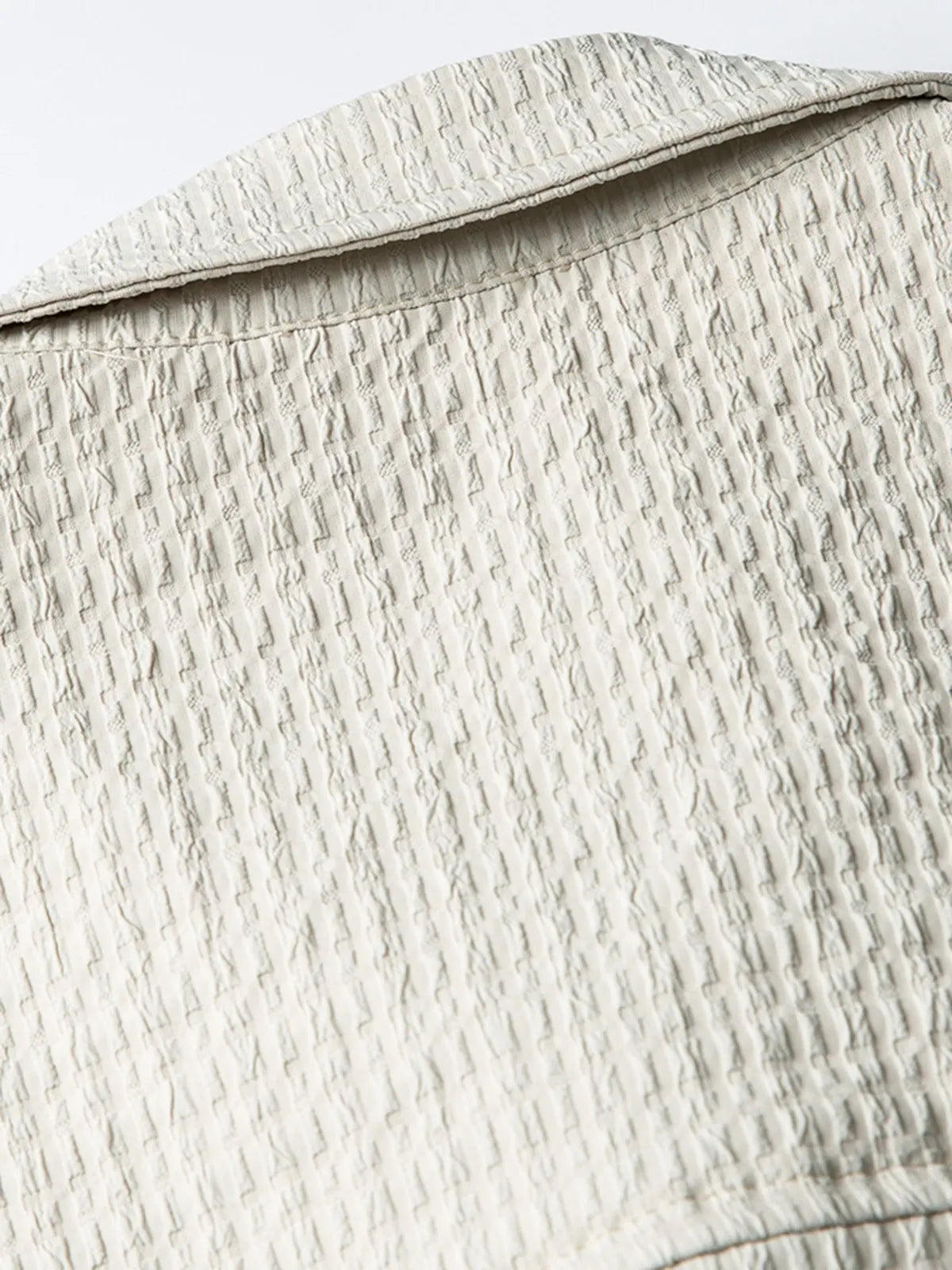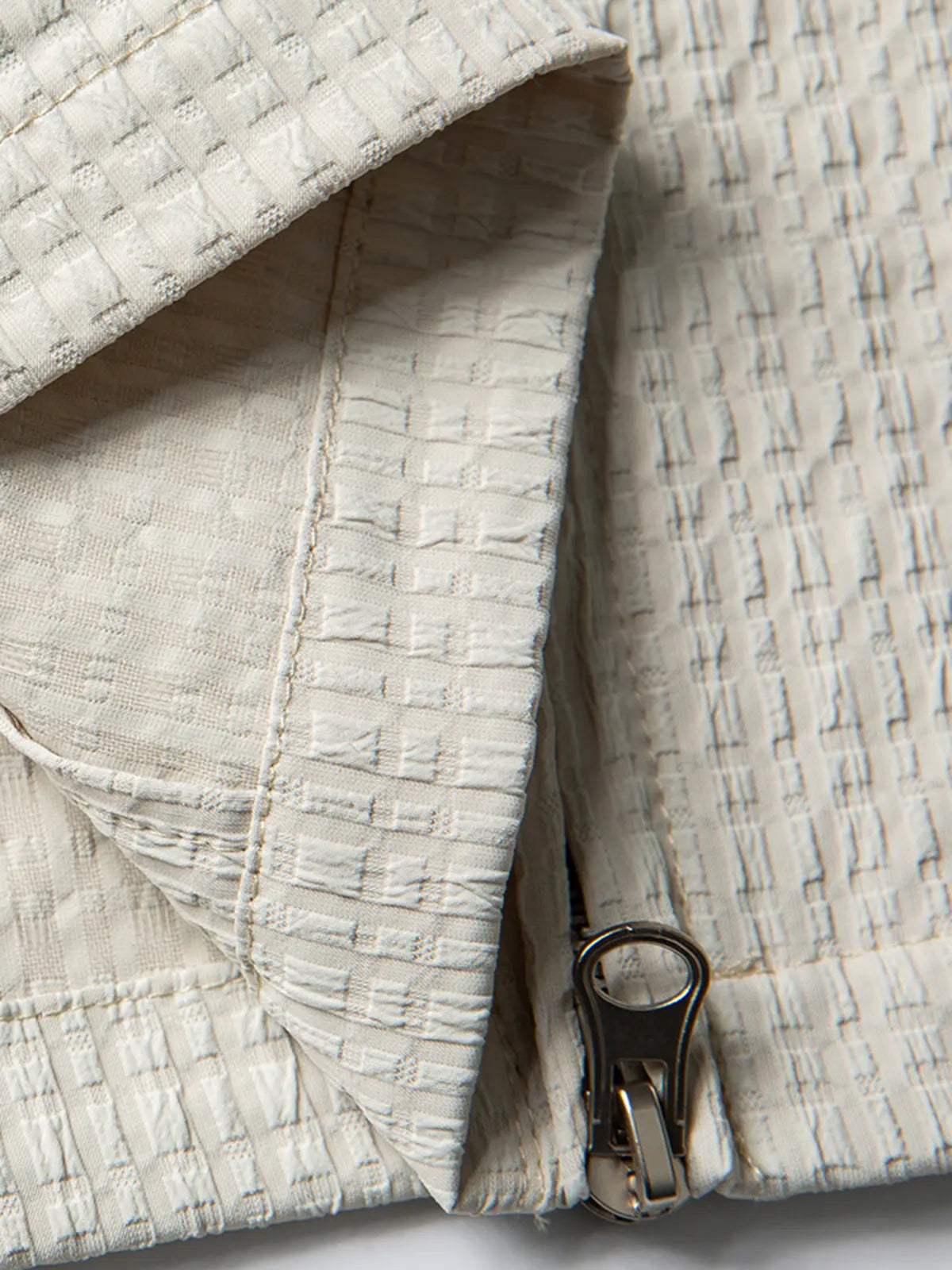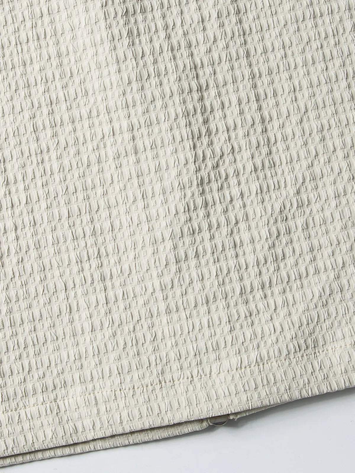 このアメリカンスタイルのダブルジッパーシャツは、クリーンフィットデザインとユニークな格子柄が特徴です。100%ポリエステル素材を使用しており、肌触りが滑らかで、耐久性に優れています。ジッパーを上下に開閉することができ、スタイリングに自由度を加えています。格子柄と肌理感のある生地が、シンプルな中にも深みを与え、カジュアルでありながら洗練された印象を演出します。五分袖のデザインは、暖かい季節に最適で、男女兼用のデザインで、どんなコーディネートにも合わせやすいアイテムです。