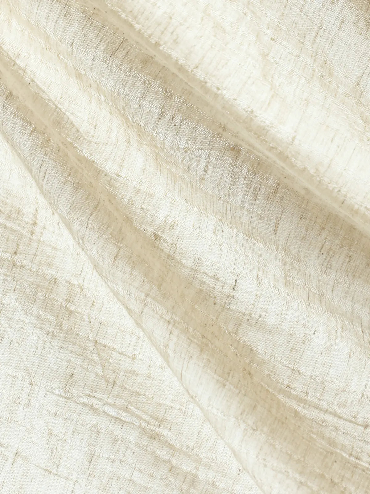伝統的なキューバカラーシャツの美しいシルエットを継承しつつ、75.6%コットン×24.4%リネンのジャガード織りストライプが軽やかな立体感を演出。150g/m²の薄手生地は抗シワ性・吸湿排汗性に優れ、真夏でも快適に過ごせます。胸元の両ポケットは小物の収納に便利で、チノやショーツと合わせたタックイン・タックアウトスタイルが自在に楽しめます。
