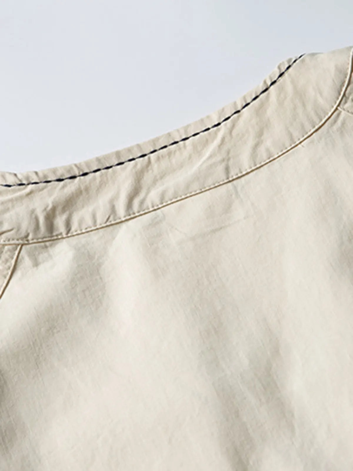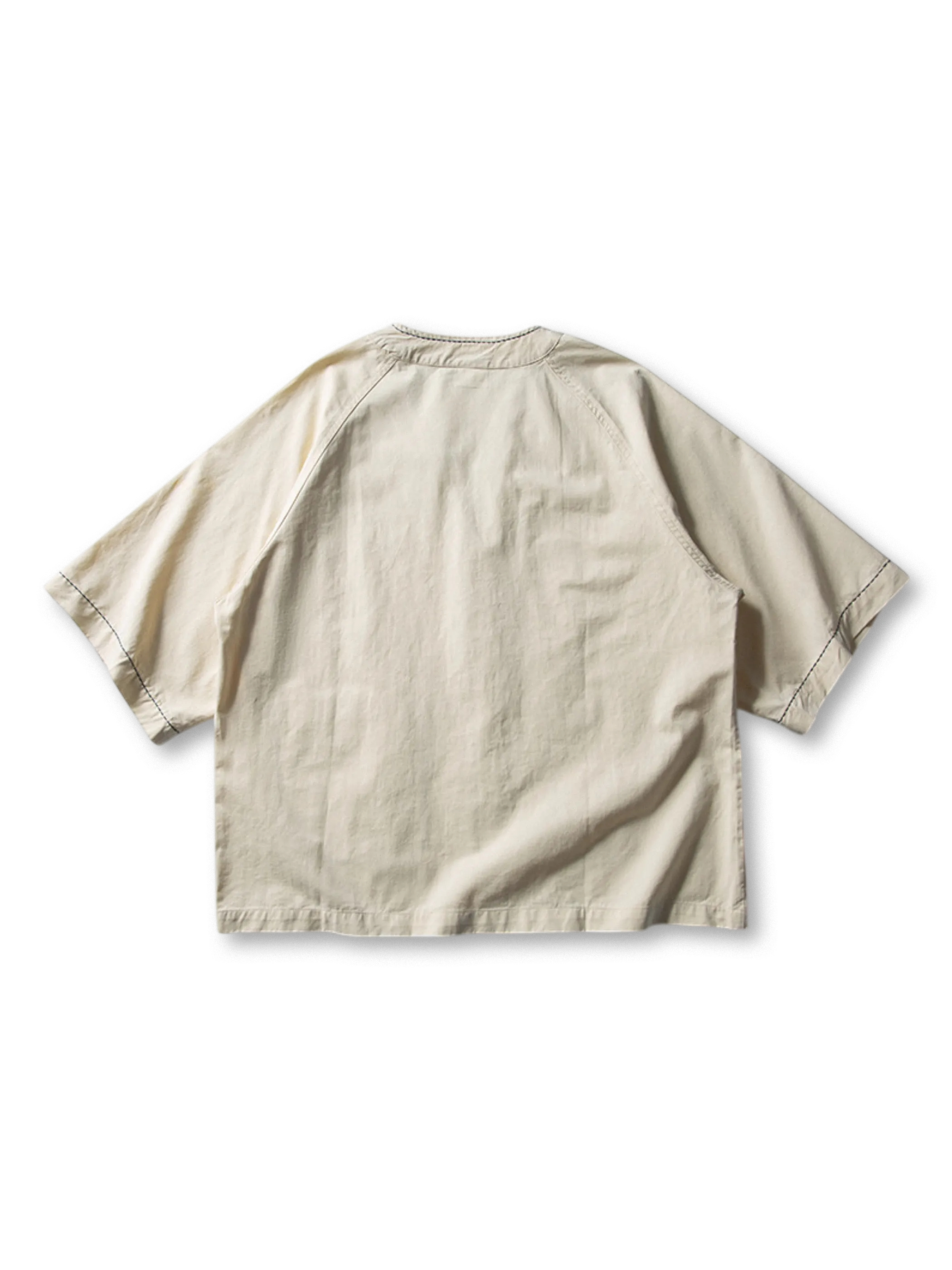 このヴィンテージ風ショートスリーブシャツは、シンプルなデザインでありながら、クラシックな魅力を持つ一枚です。100%コットンの素材を使用し、柔らかく快適な着心地を提供します。胸元には大きなポケットが配置され、実用性とデザイン性を兼ね備えています。ゆったりとしたシルエットは、リラックスした着こなしを可能にし、日常のカジュアルコーディネートにもぴったりです。夏のカジュアルスタイルには欠かせないアイテムです。