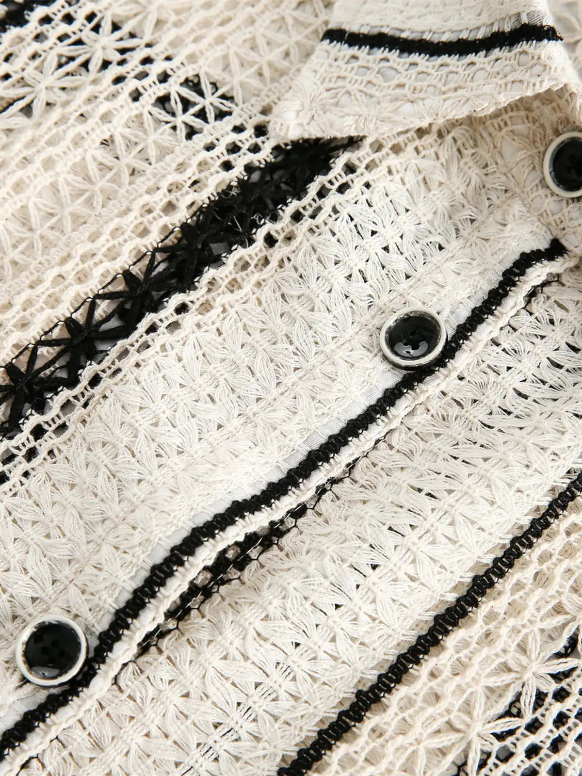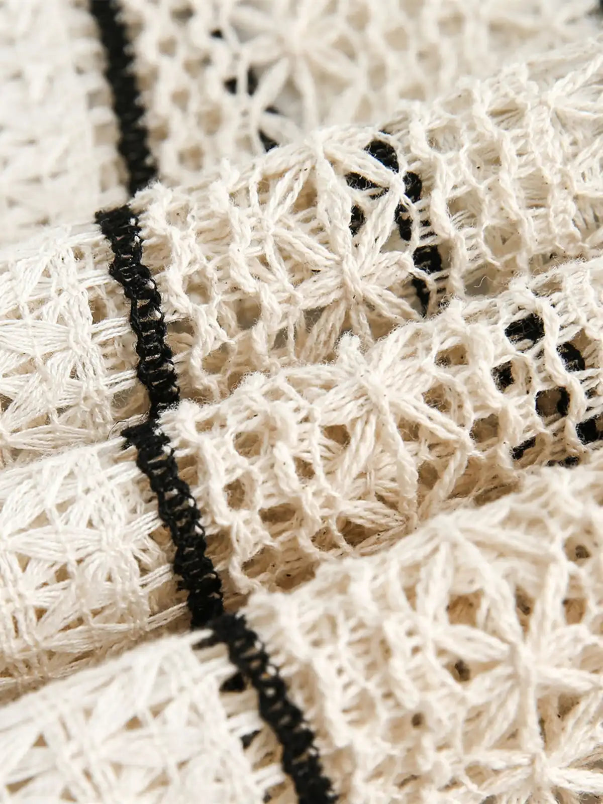 伝統的なニット技術で織り上げた多様な幅のストライプとオープンワークパネルが、軽やかな透け感と陰影を生み出し、真夏でも涼しく着用可能。ボックスシルエットのゆとりある身幅と開襟デザインがデニムやリネンパンツと好相性で、シンプルに羽織るだけでこなれたリゾート&タウンスタイルを実現。ドライタッチの100%コットン素材は肌離れが良く、快適な着心地をキープします。