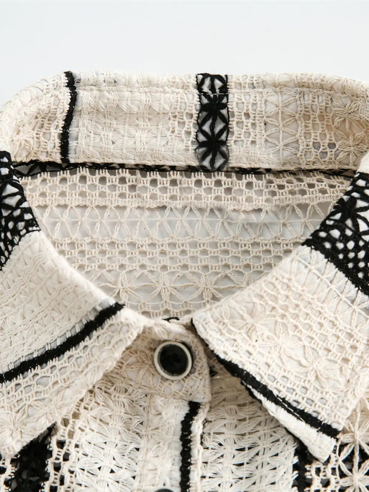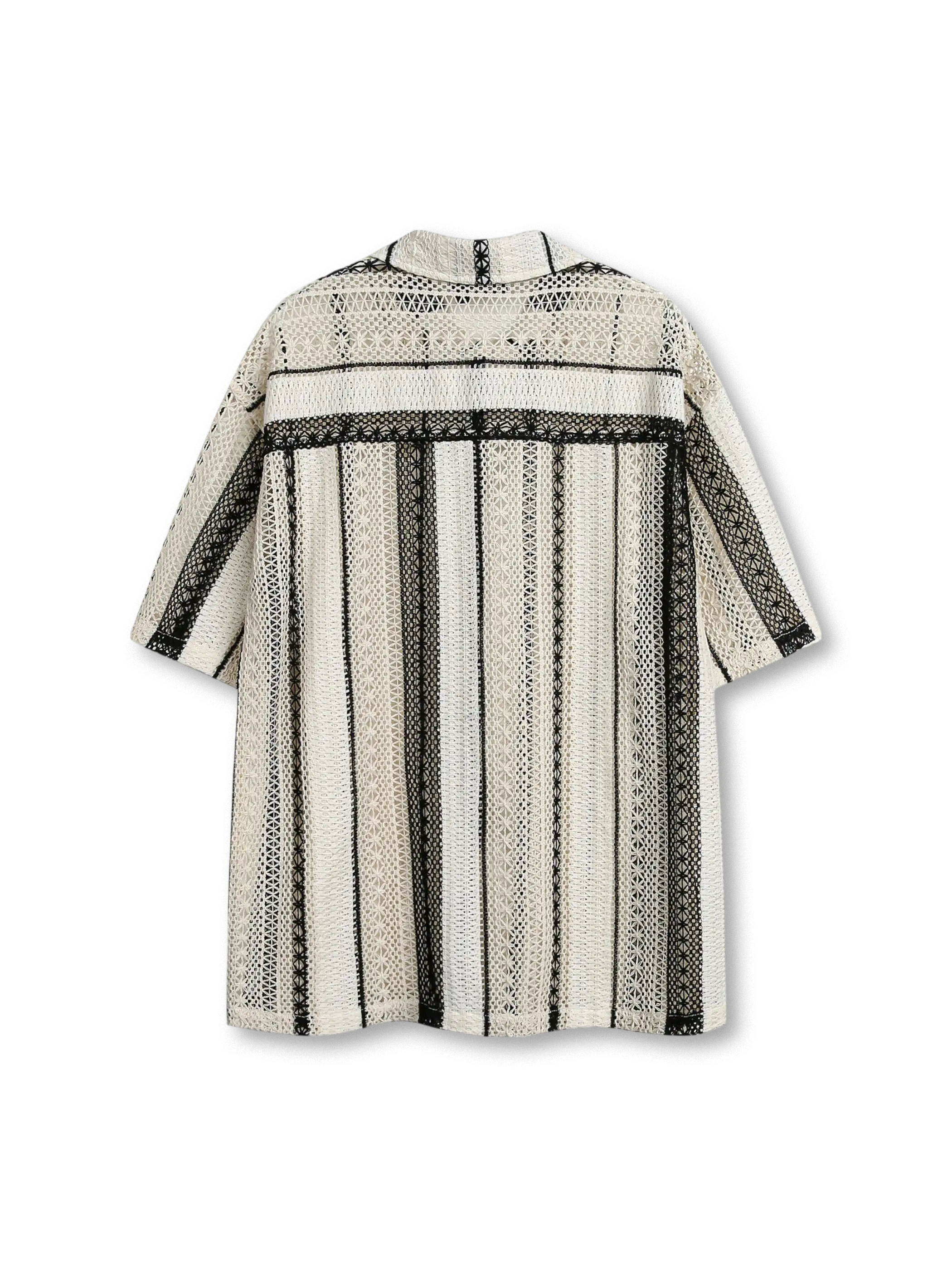 立体的なストライプの透かし編みが清涼感と上質さを演出する、100%コットンのショートスリーブシャツ。