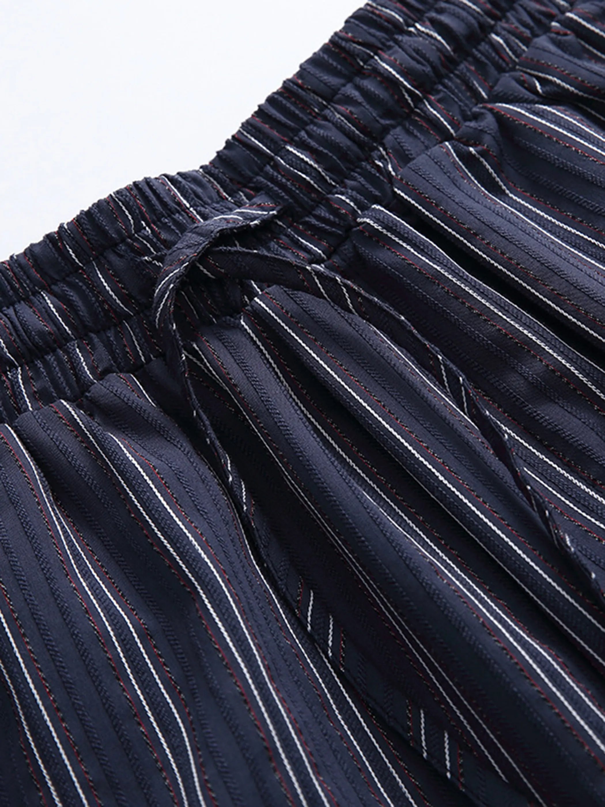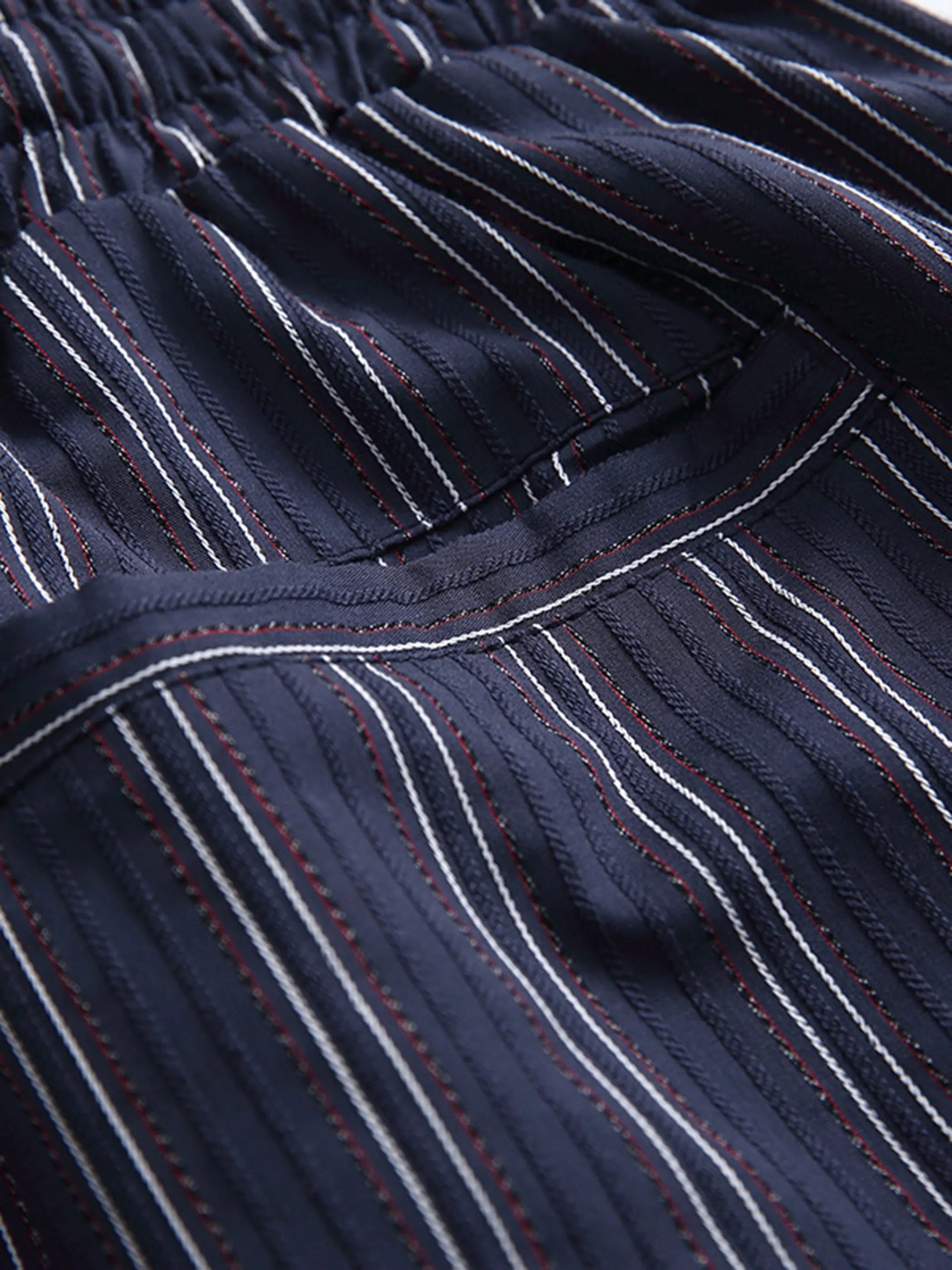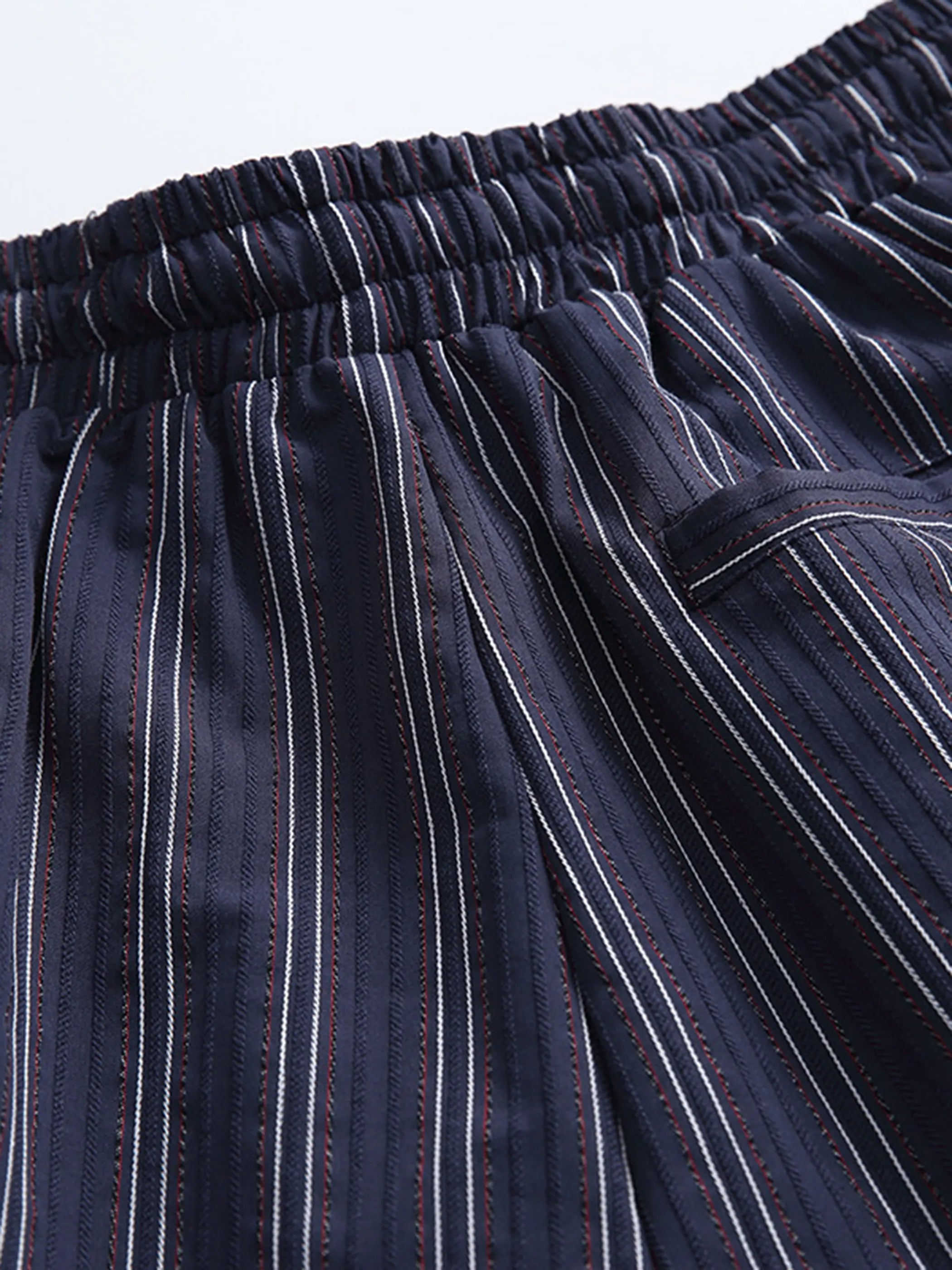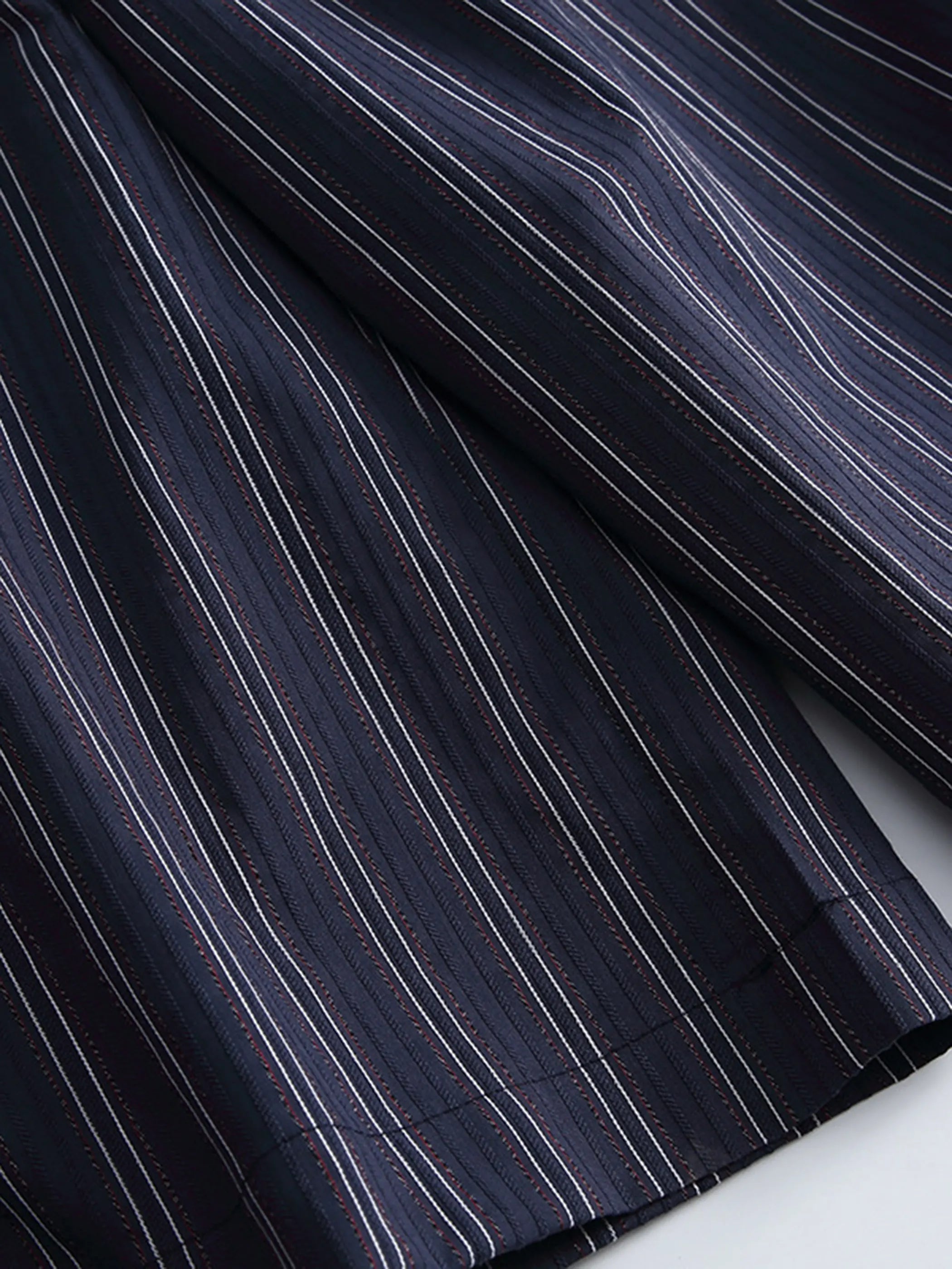 織り柄による立体的な縦ストライプが魅力のリラックスショーツ。