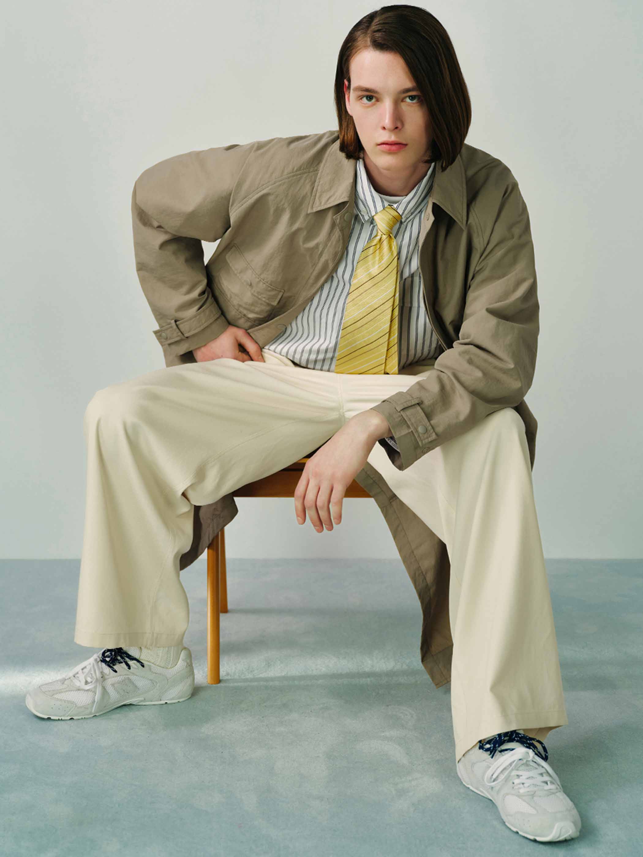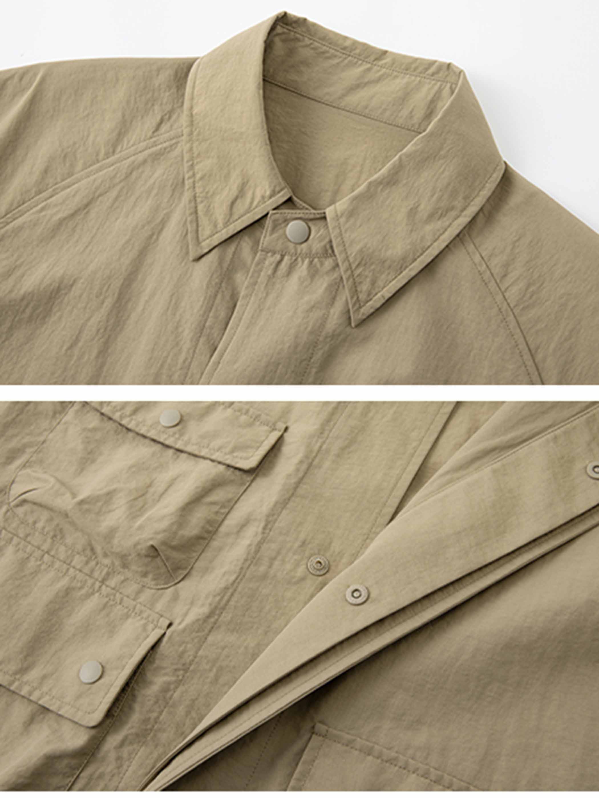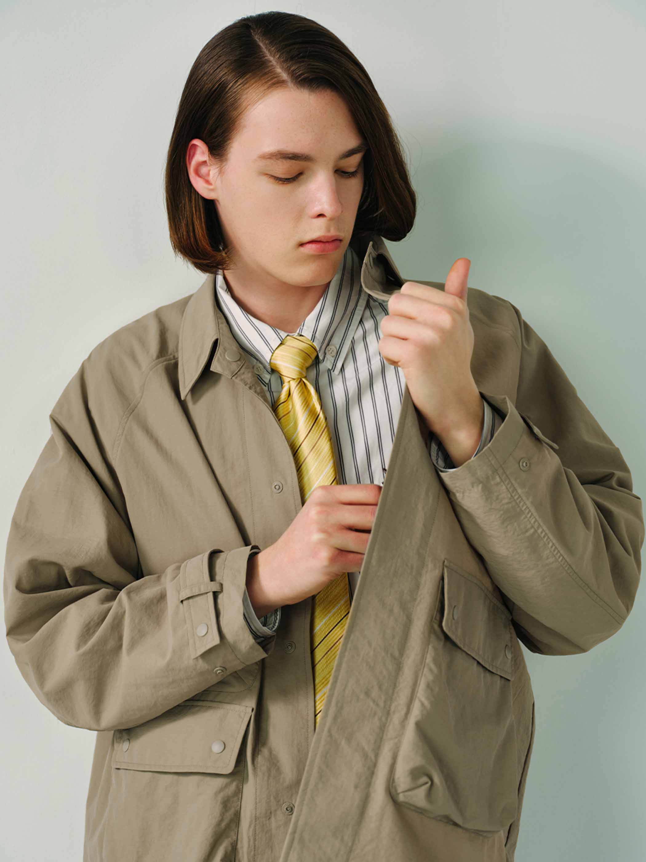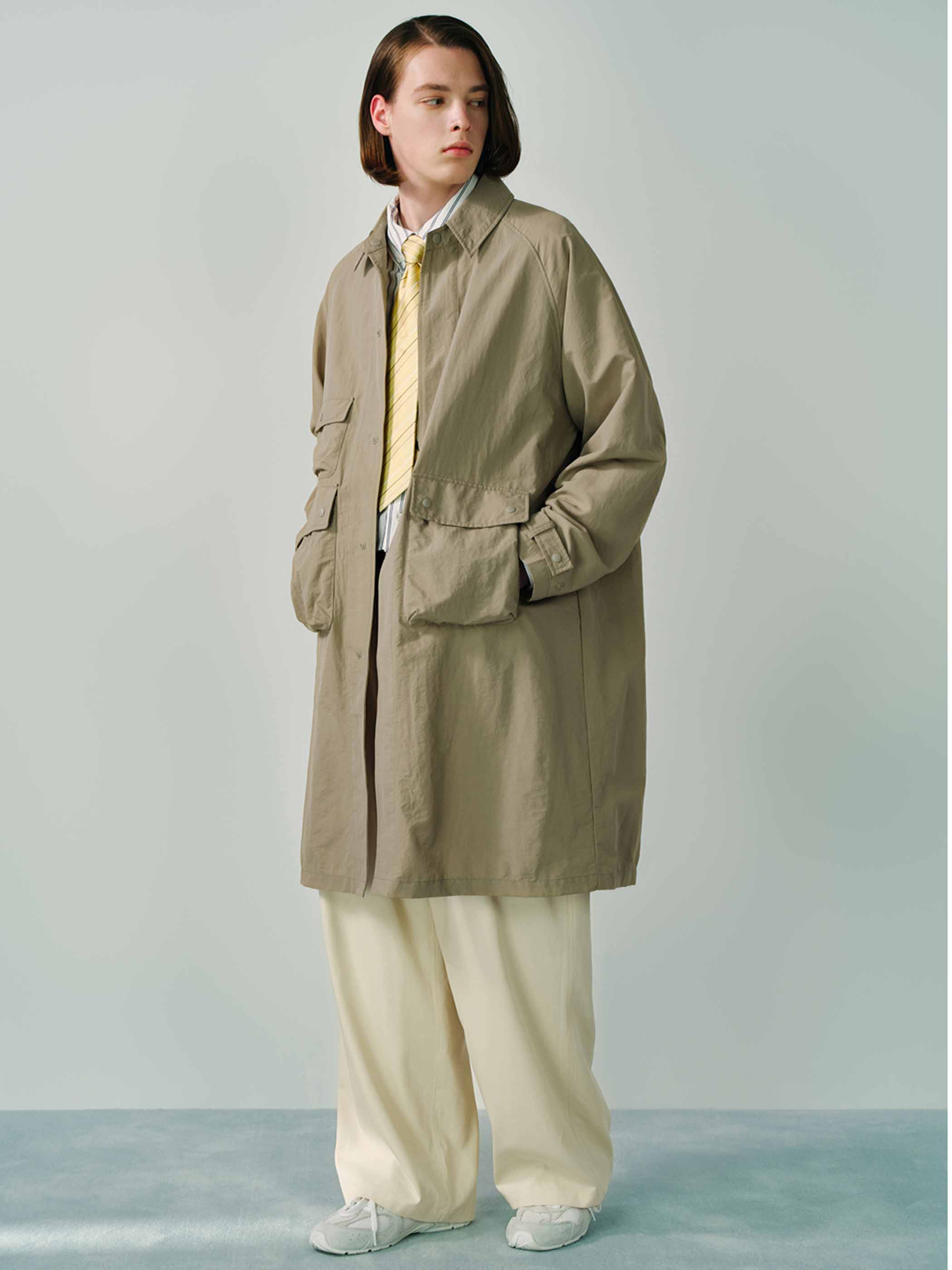 輸入紙感ナイロンが軽やかでさっぱりとした触感を実現し、クラシックなバルマカーンシルエットと多ポケット工装ディテールを融合、都会的なヴィンテージと実用性を兼ね備えた春用アウターを完成させます。