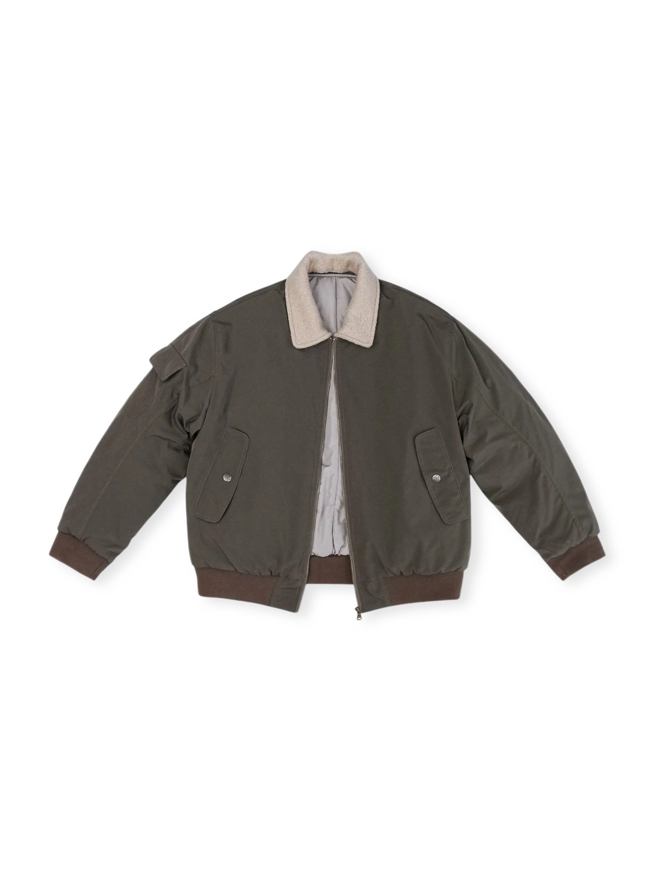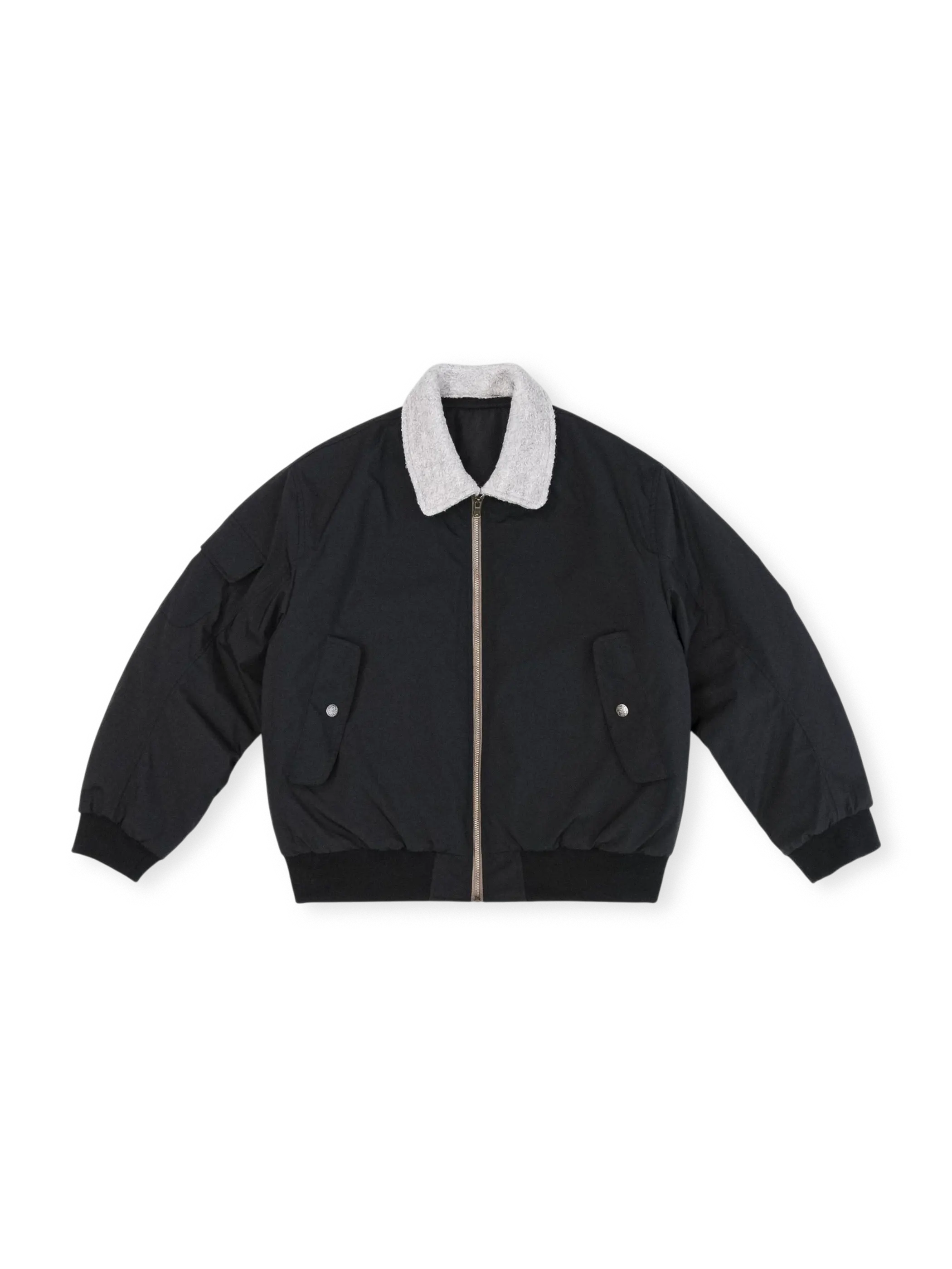 パイロットジャケットの伝統シルエットに、バーン風ディテールと取り外し可能な羊羔フリース襟を組み合わせ、実用性とスタイリッシュさを両立した一着です。