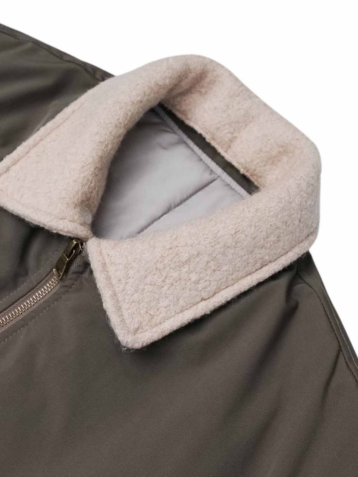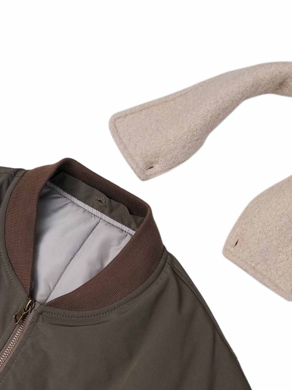 このジャケットは、パイロットジャケットのクラシックなデザインに、バーン風のコントラストカラーを取り入れたディテールが特徴です。取り外し可能な羊羔フリース襟は、寒冷時に首元をしっかり保温し、必要に応じてシンプルなルックに変えることができます。袖口と裾には高弾性リブが採用され、風の侵入を防ぎながらシルエットを美しくキープ。さらに、対比カラーのジッパーや暗めのポケットディテールが、頑丈さとヴィンテージな魅力を演出。これにより、都市通勤からアウトドアまで、幅広いシーンで実用性とファッション性を兼ね備えたアイテムとなっています。