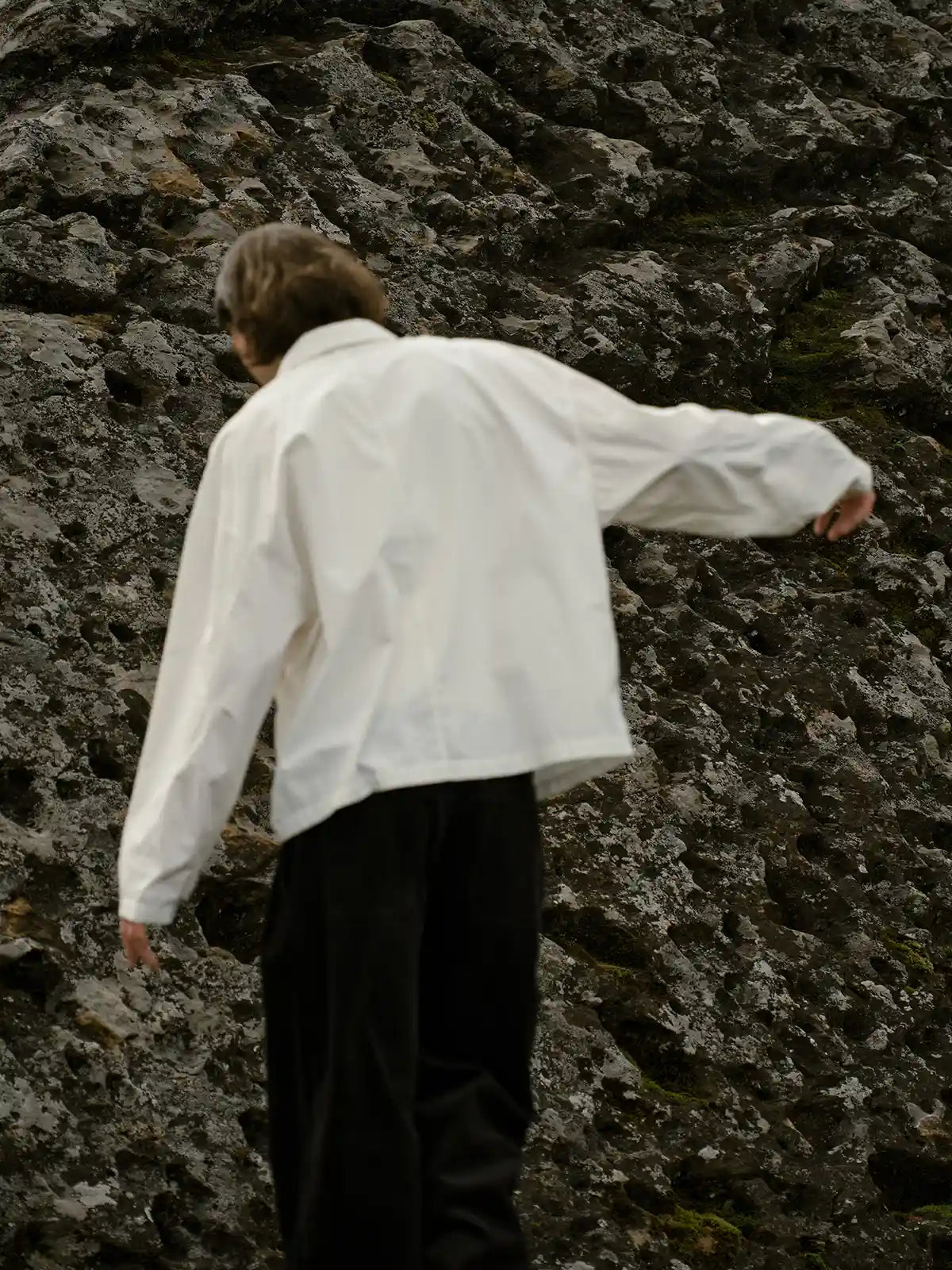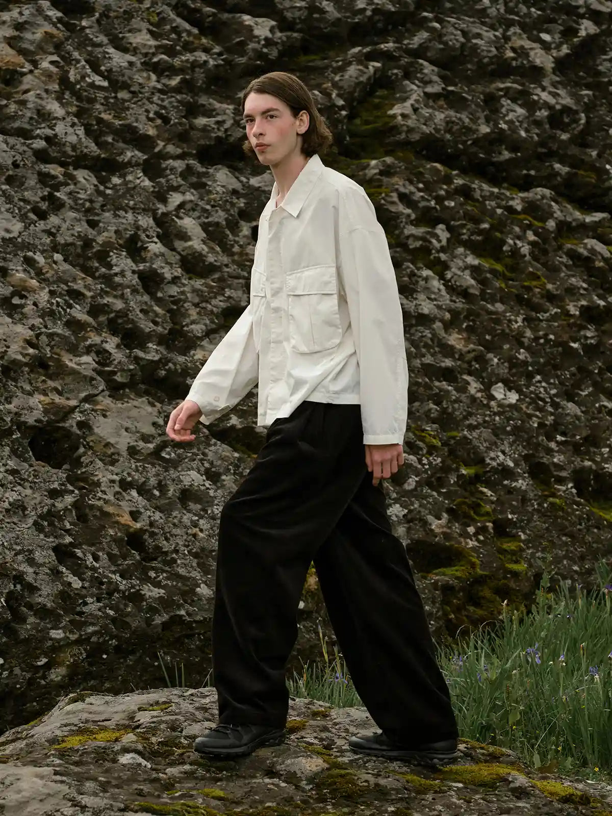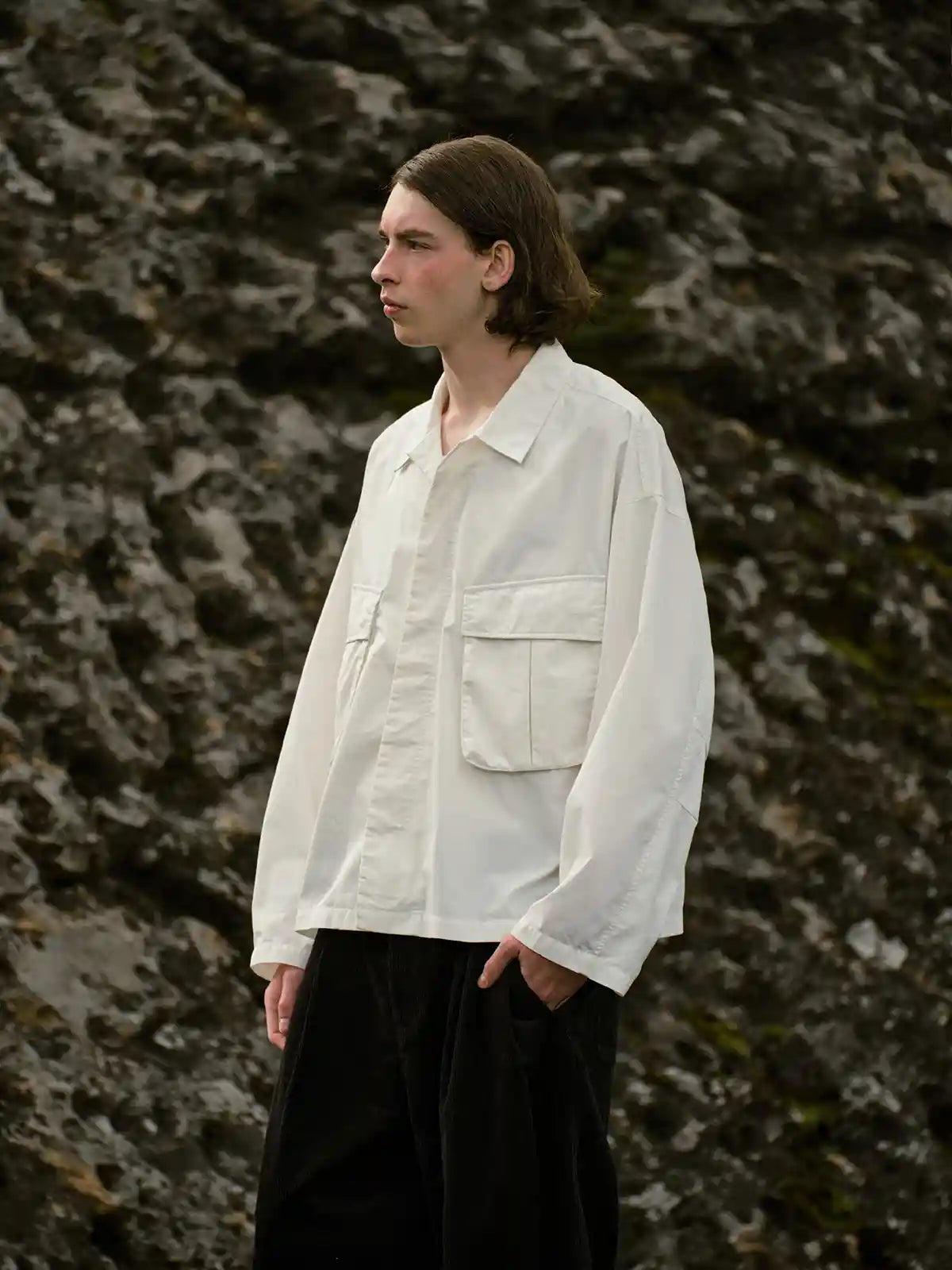 アウトドアとミリタリー要素を融合させた、ナイロン混紡素材のシャツジャケット。