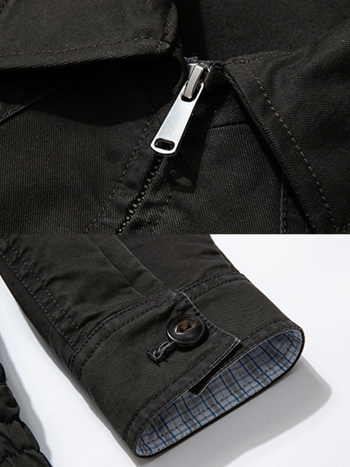 クラシックな襟付きデザインとガーメントウォッシュ加工が融合した、ヴィンテージ感あふれるハリントンジャケット。