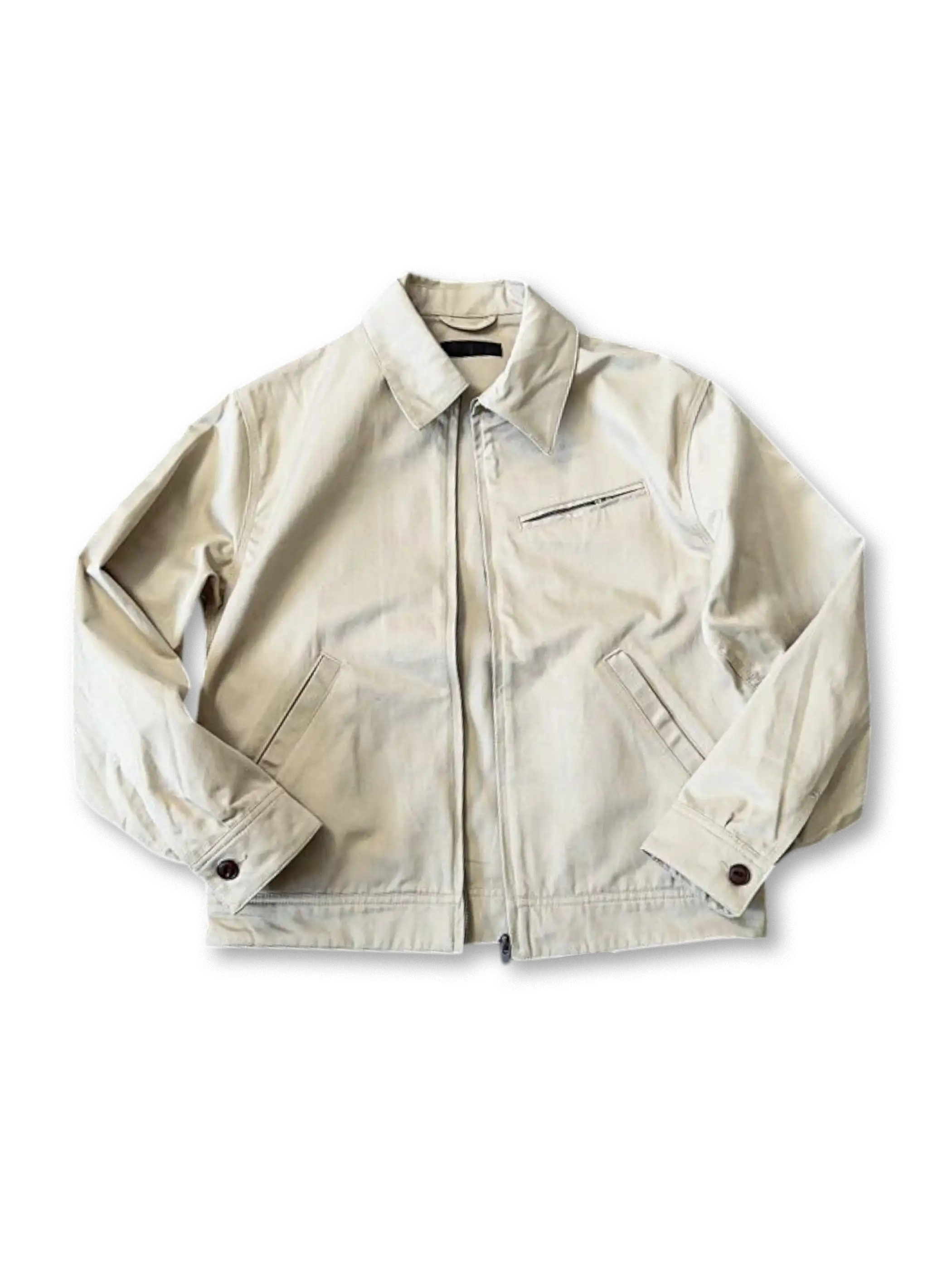 58%コットン・42%ポリエステルの定織生地を使用し、水洗いによるヴィンテージ加工を施したデトロイトジャケットです。腰丈のショートシルエットで、裾の2枚仕立てやポケット配置など細部にもこだわり、肩・袖・側身などの主要縫い合わせ部分には3本針ステッチを採用。無骨さと機能性を両立しながら、軽快な着こなしを演出します。春秋にはインナーとして、肌寒い日にはアウターとしても活躍し、デニムやチノパン、ワークパンツなど幅広いスタイルに合わせやすい一着です。