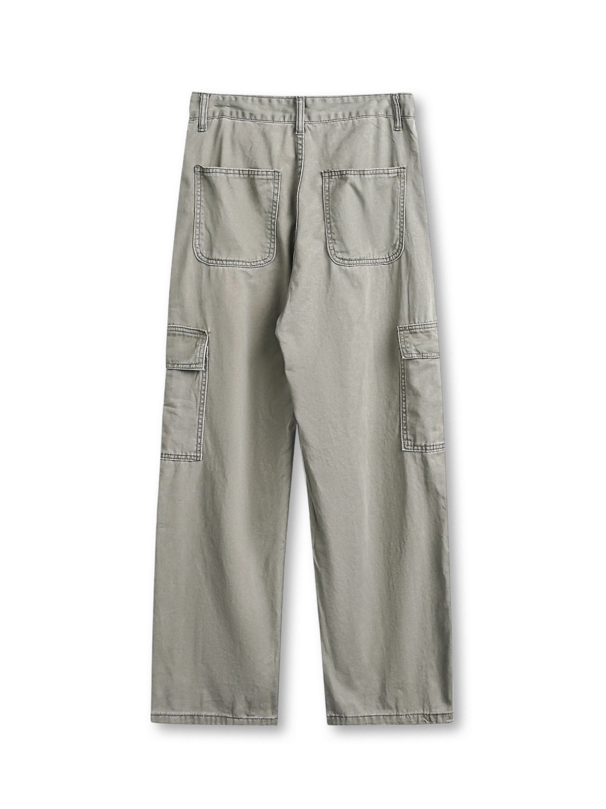 実用的でスタイリッシュな多ポケットデザインのヴィンテージ風カジュアルパンツ。