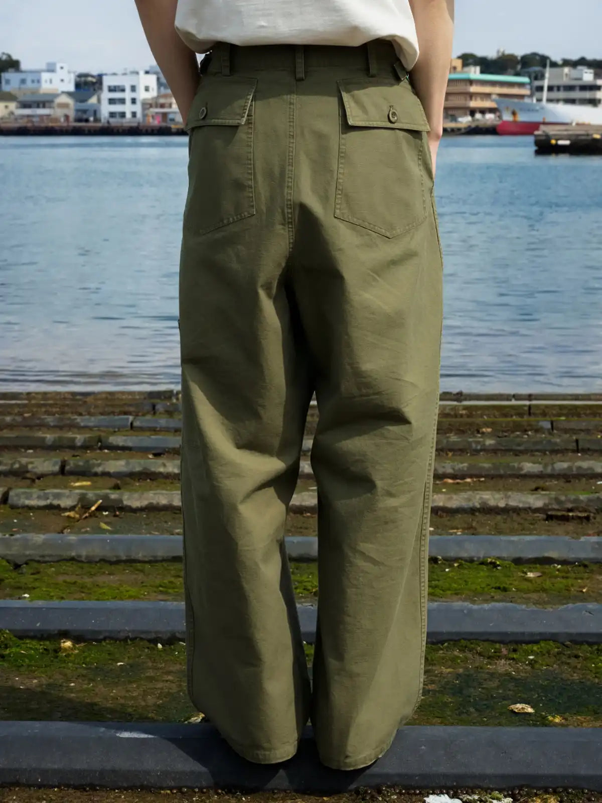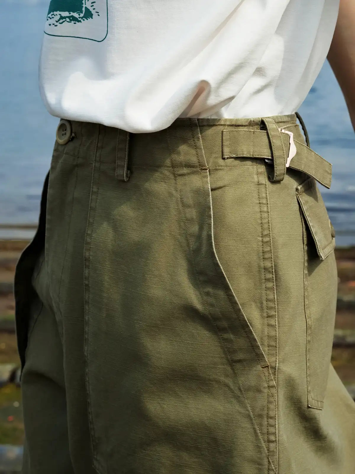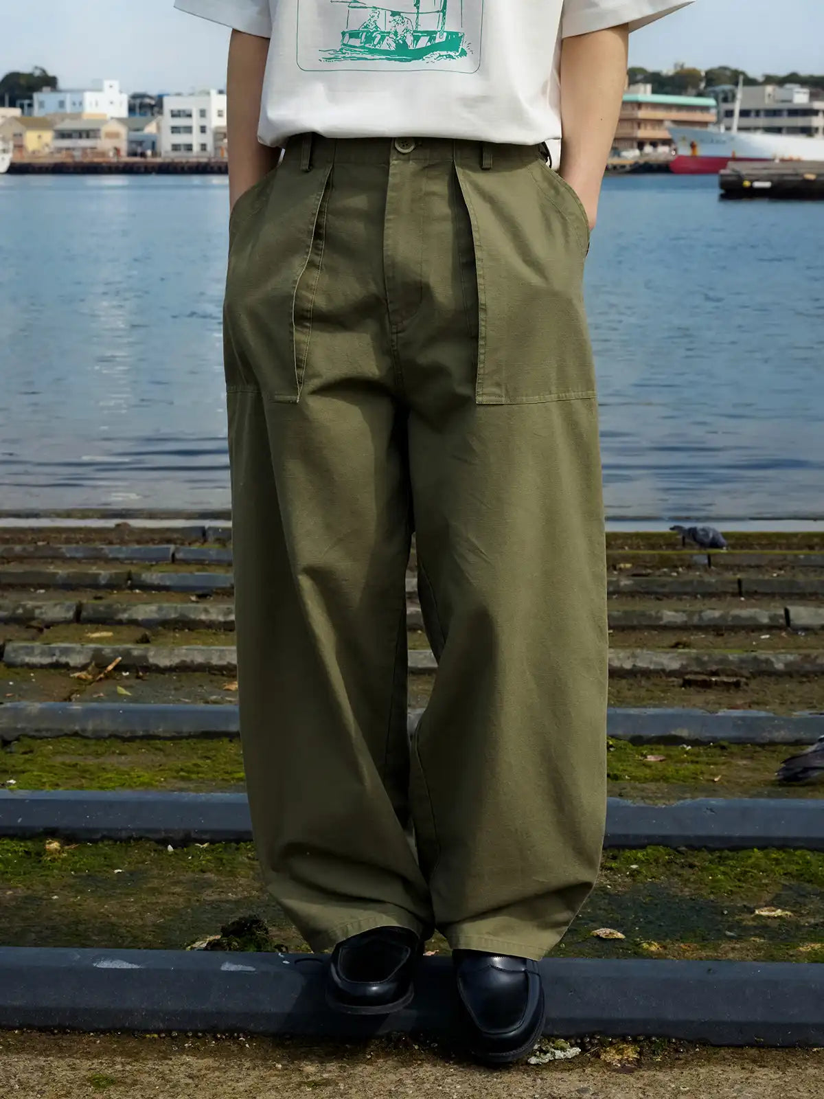 ピマコットン100%の竹節織り生地を用い、クラシックなOG-107シルエットを現代的にアップデートしたワイドストレートのワークパンツ。