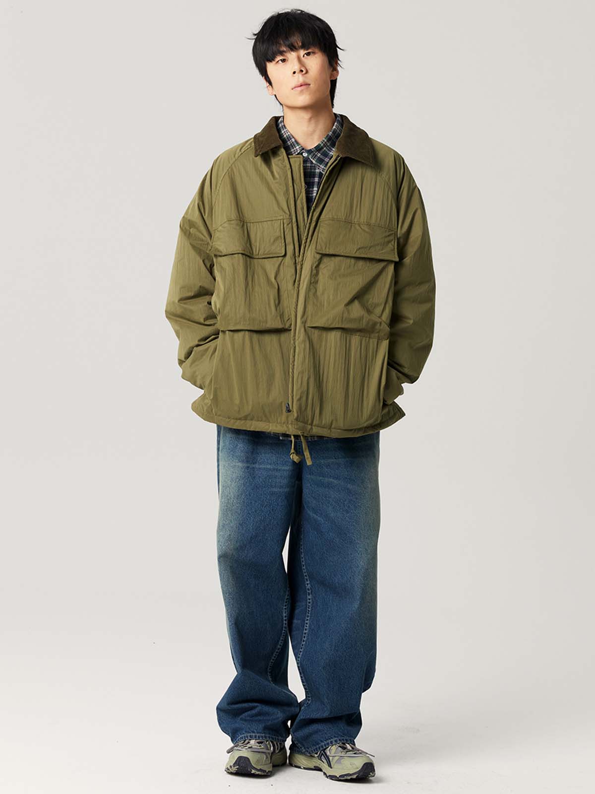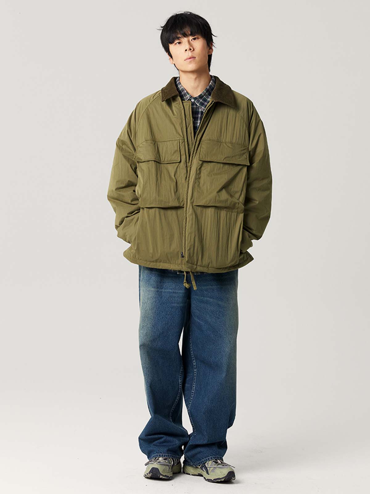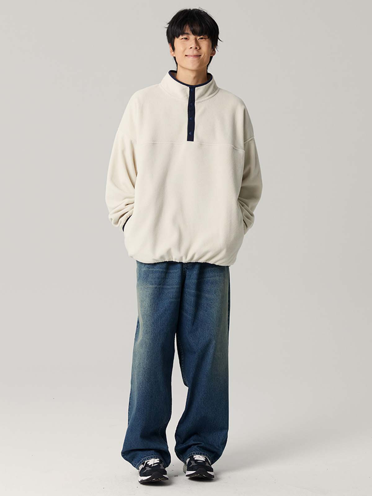 このレトロダブルプリーツデニムパンツは、クラシックなダブルプリーツデザインを採用し、立体的なシルエットを作り出すとともに、動きやすさを高め、快適な着心地を提供します。ウォッシュ加工により、デニム特有の自然な色落ちがヴィンテージ感を引き立て、長く着用できる耐久性も兼ね備えています。ウエストはボタンとジッパーフライで調整可能で、ベルトにも対応しています。後ろにはフラップポケットが付き、収納性とデザイン性を兼ね備えた優れた実用性を誇ります。ワイドフィットのストレートレッグデザインはさまざまな体型にフィットし、足元はスッキリとしたカットで、着脱も簡単です。日常のカジュアルスタイルや、レトロなストリートファッションにも最適なアイテムです。