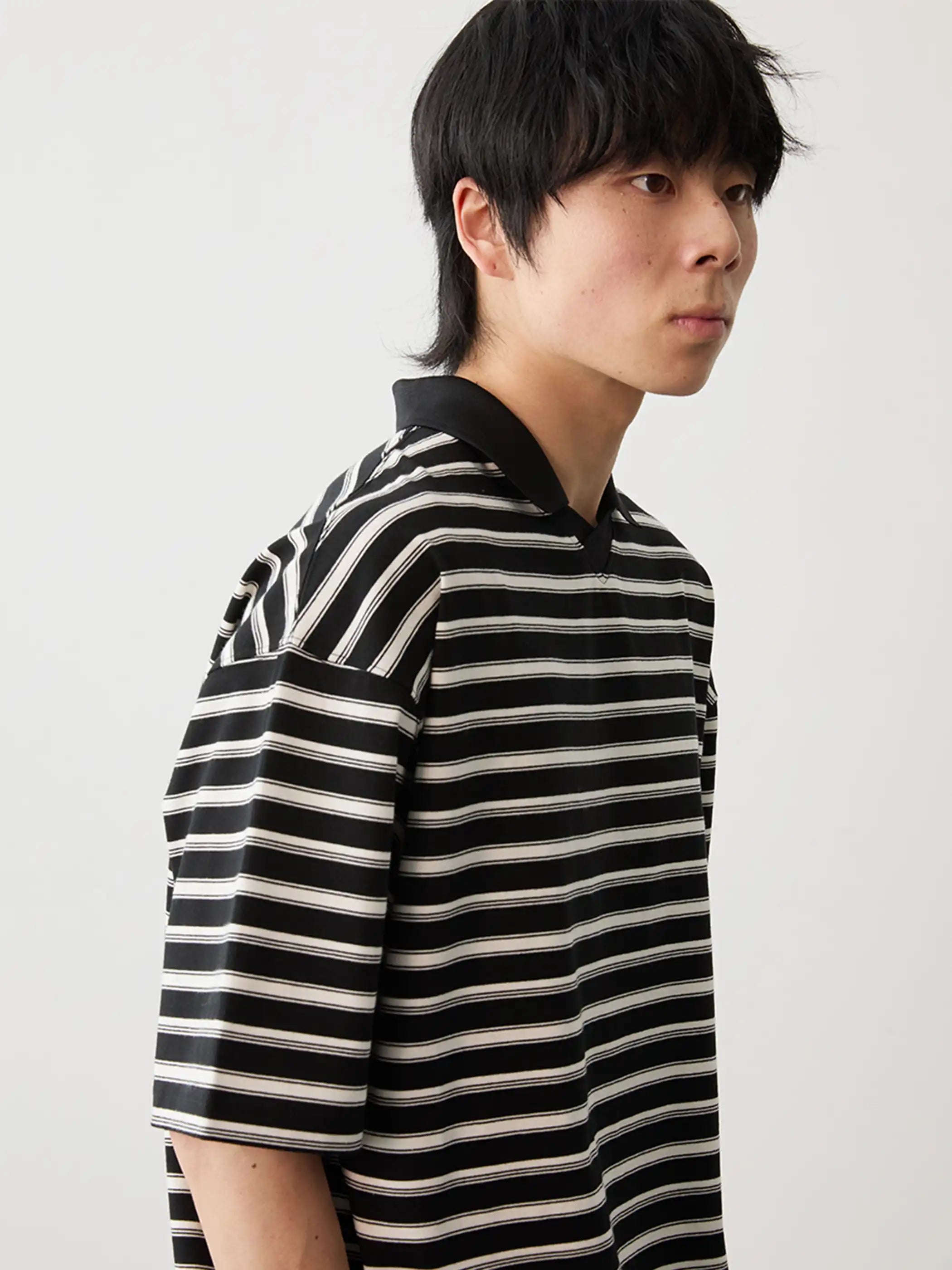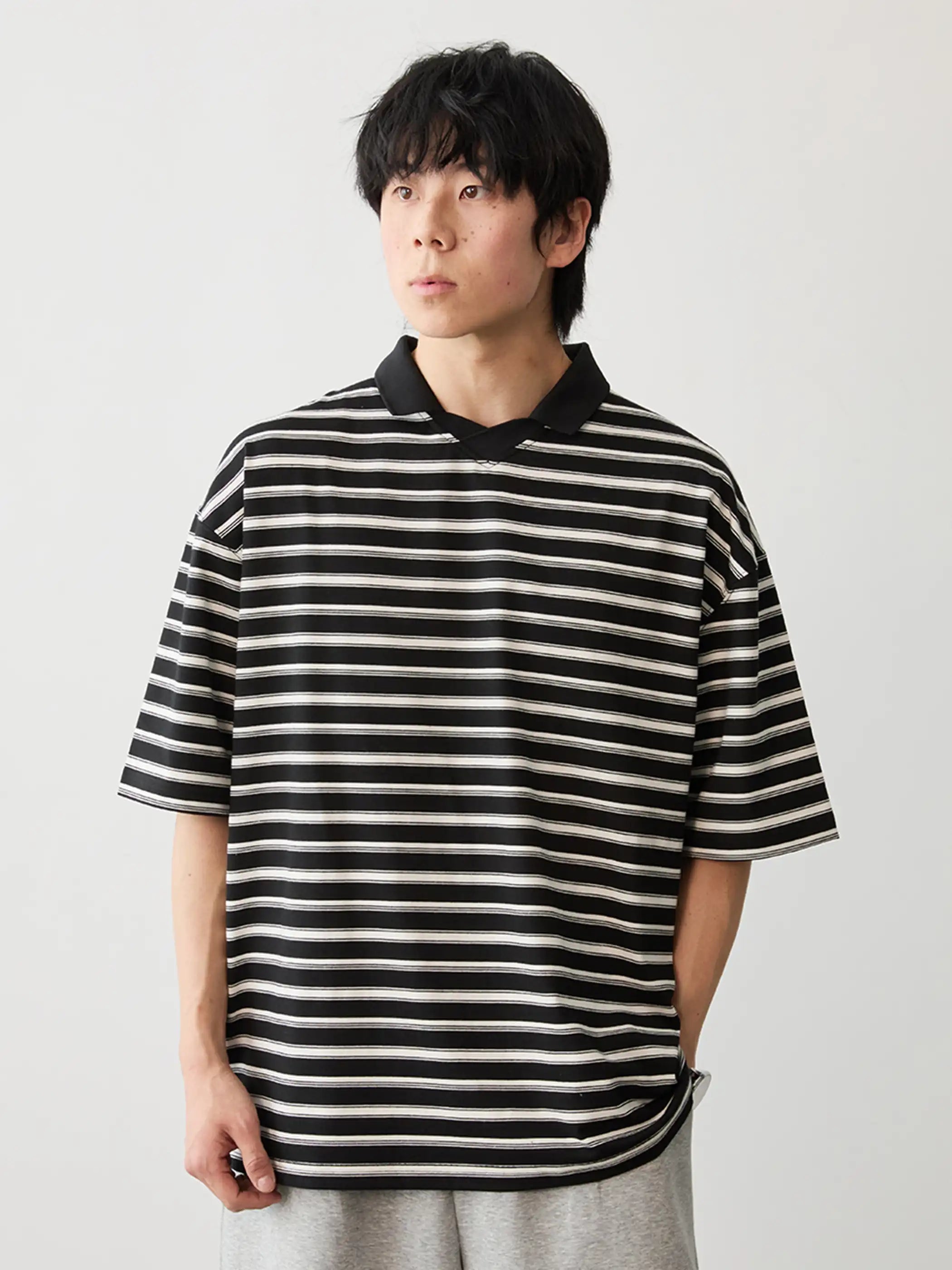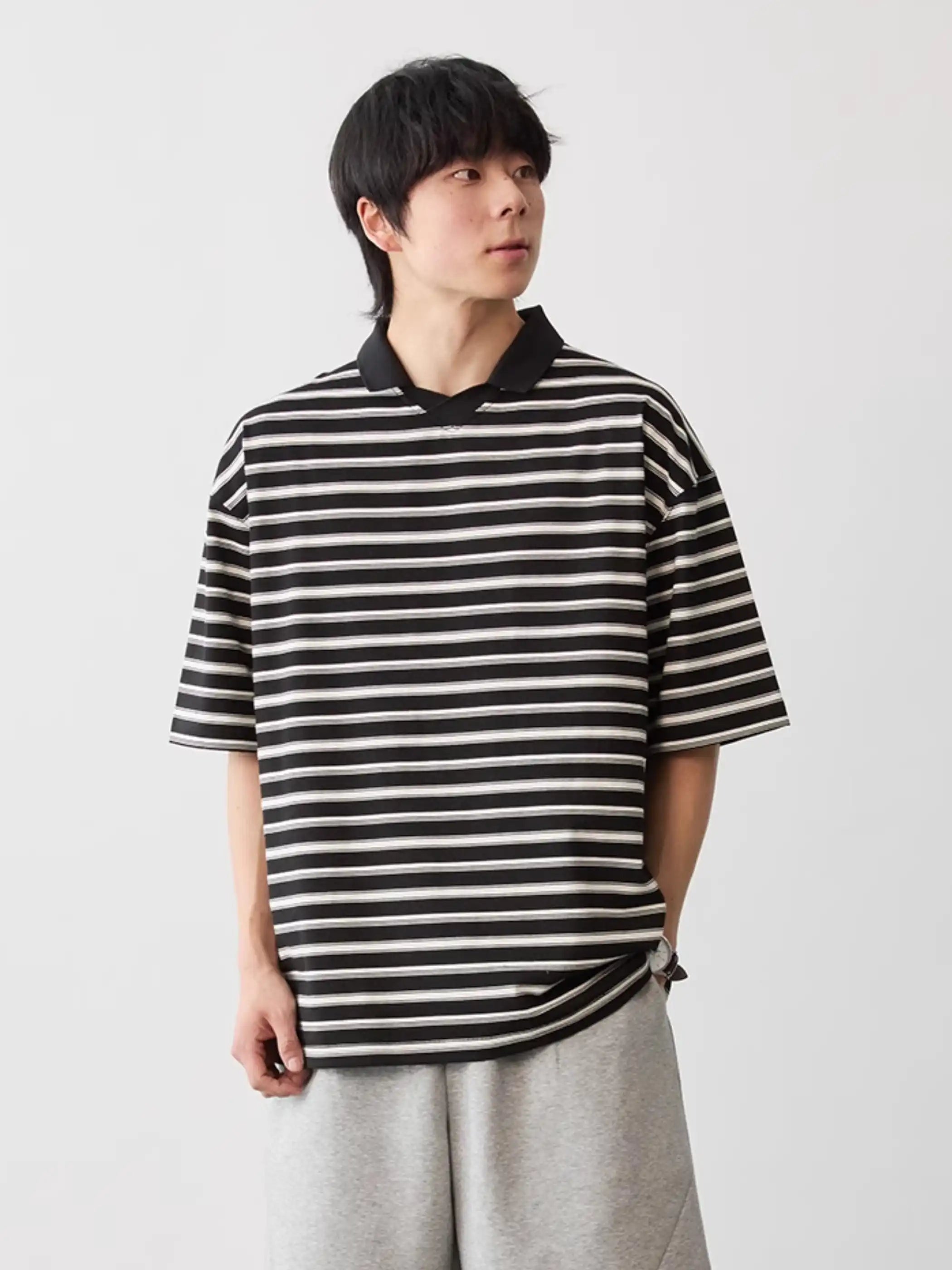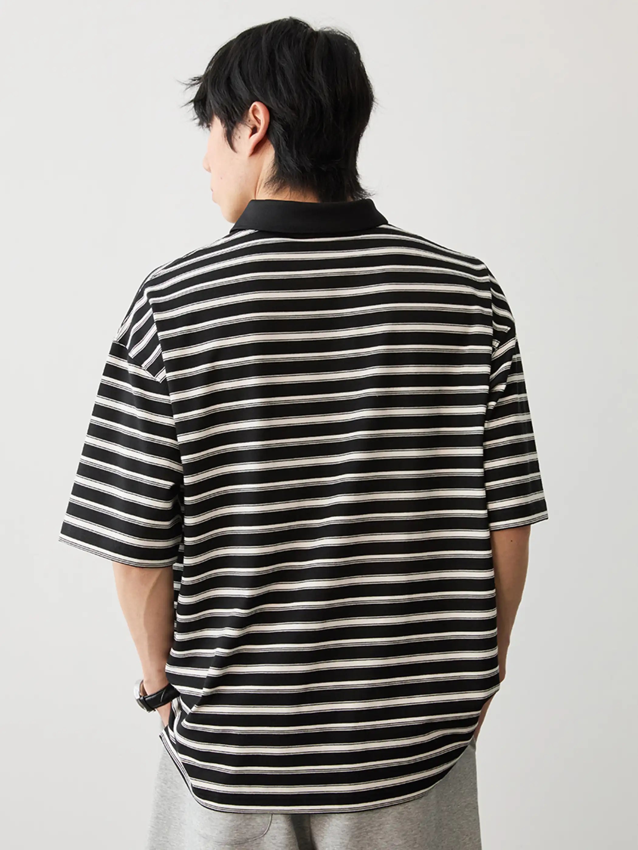 このストライプポロシャツは、クラシックなボーダー柄とゆったりシルエットが夏のカジュアルスタイルを涼しく快適に彩る一着です。