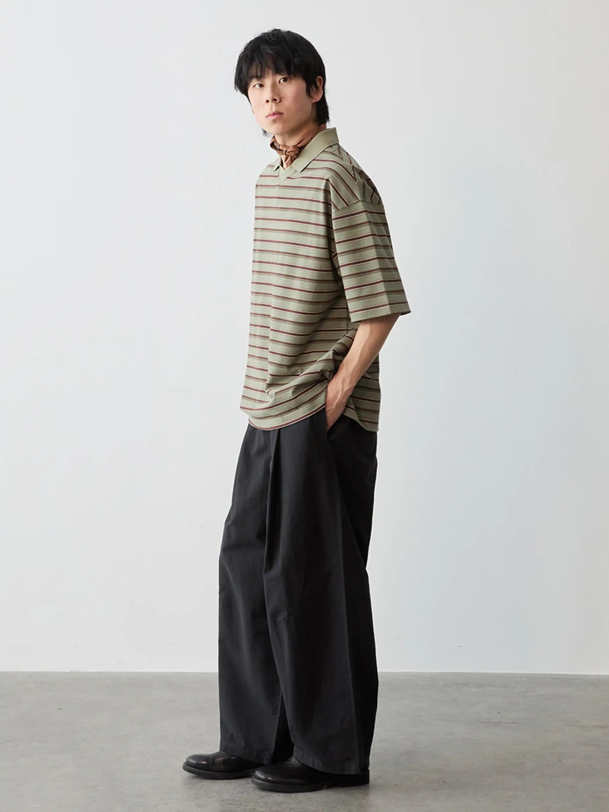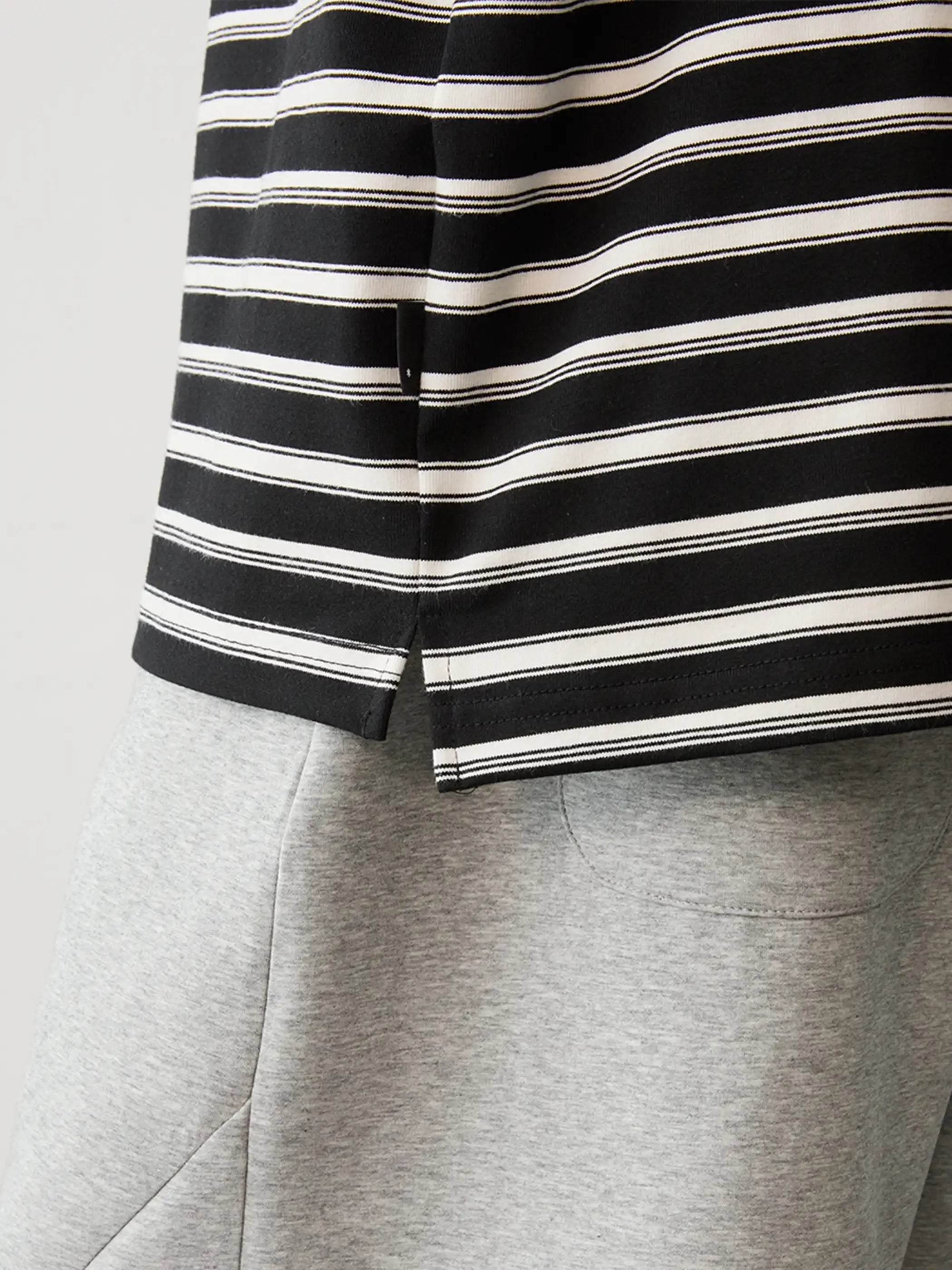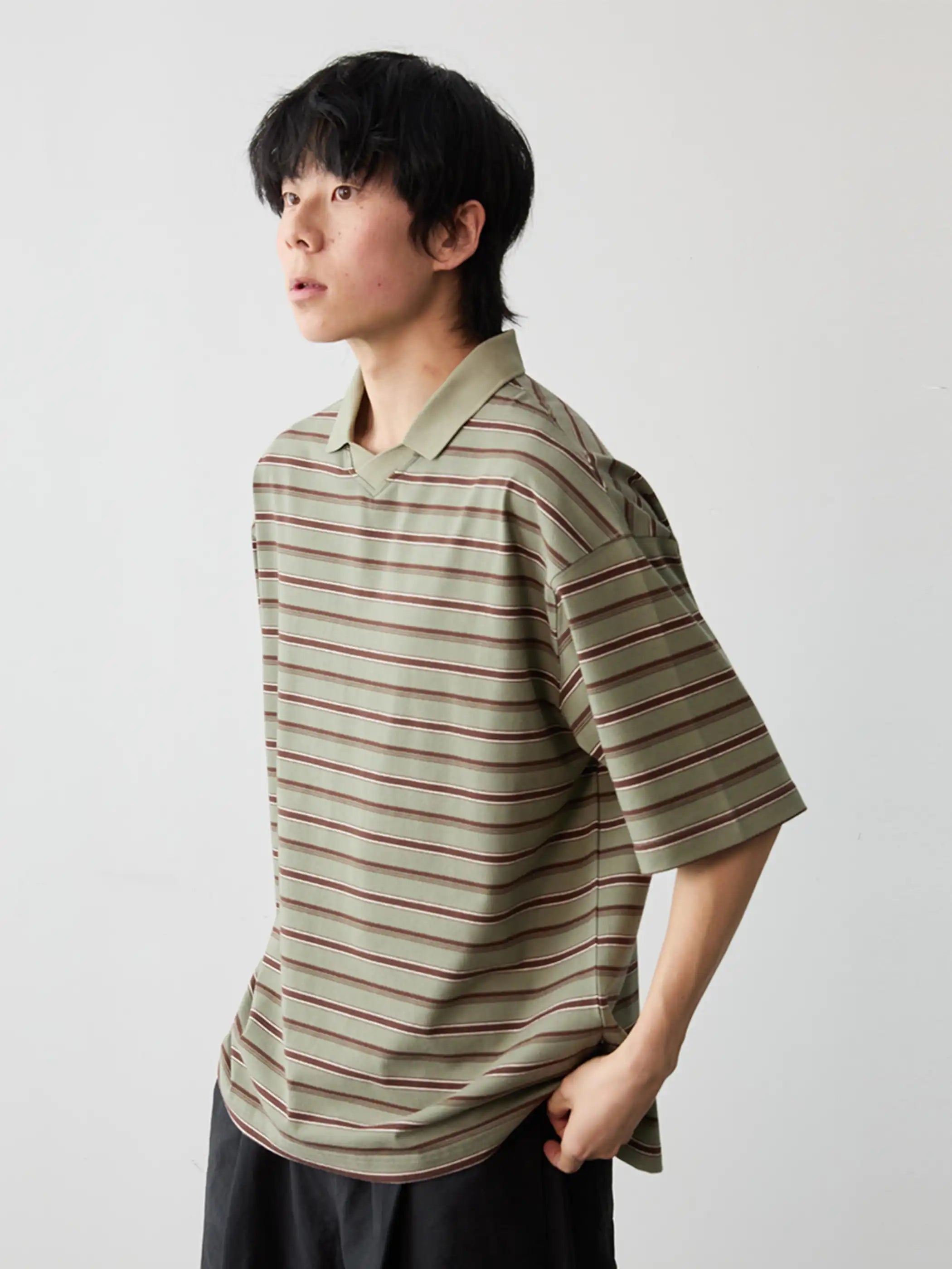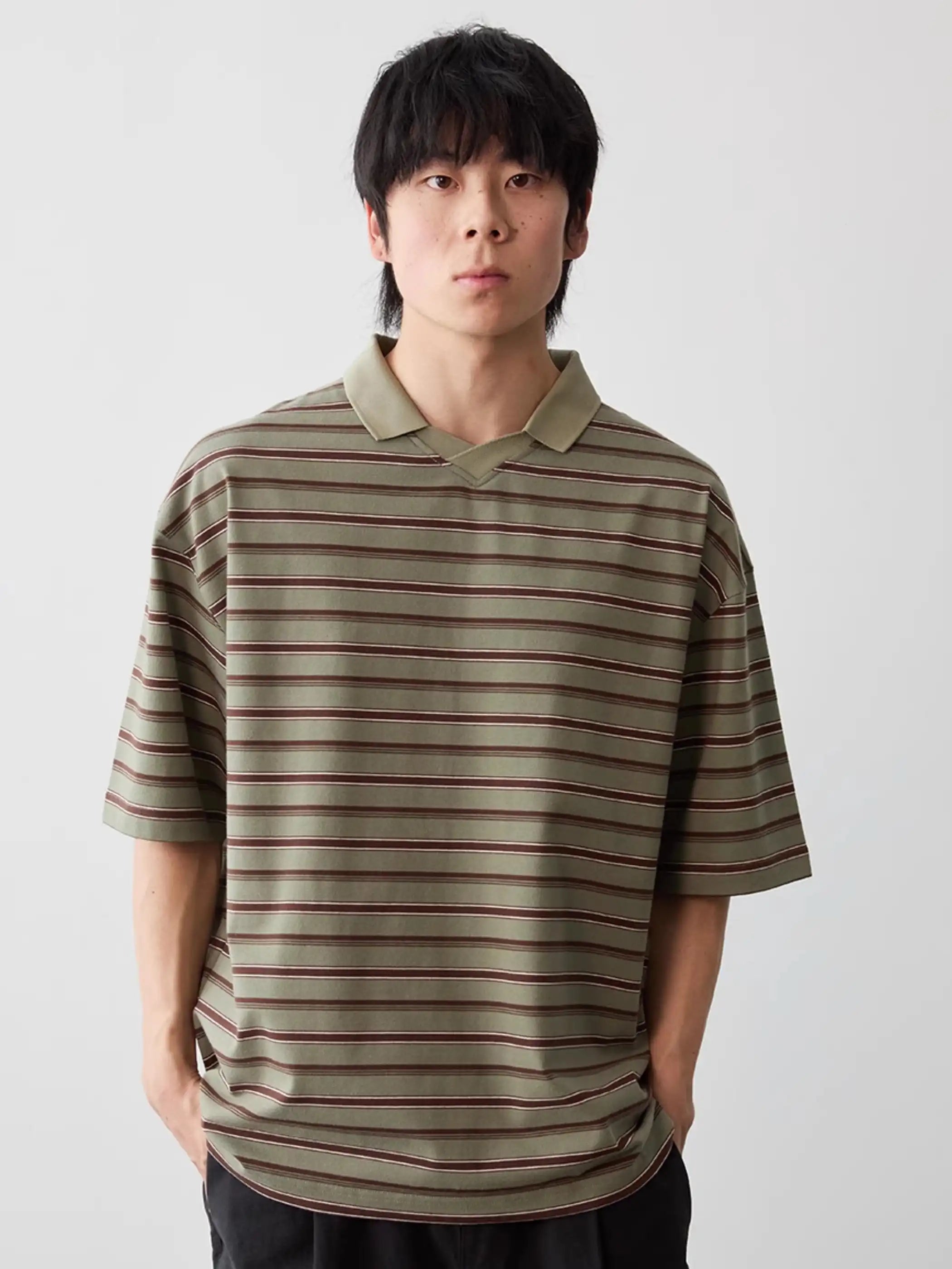 このストライプポロシャツは、クラシックなボーダー柄とゆったりシルエットが夏のカジュアルスタイルを涼しく快適に彩る一着です。