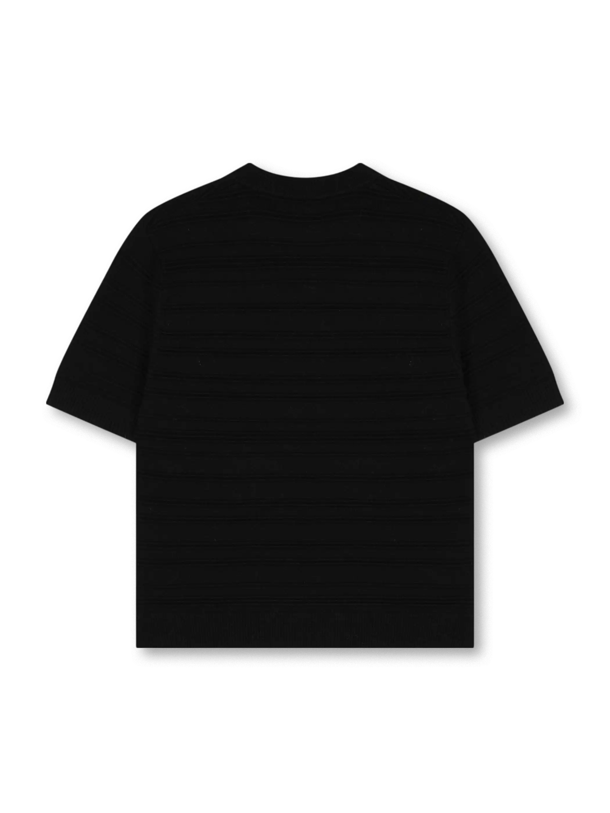 75%ポリエステル×25%コットンの混紡糸を用いた薄手ニットは、柔らかな肌あたりと優れた速乾性を両立。クルーネックとリブ仕上げの袖口・裾がシャープな印象を与えつつ、表面にあしらったさりげない横ストライプのテクスチャーが立体感をプラス。シンプルなデザインなので、デニムやチノパンとのレイヤードはもちろん、軽い羽織り感覚でシャツやジャケットのインにも最適です。
