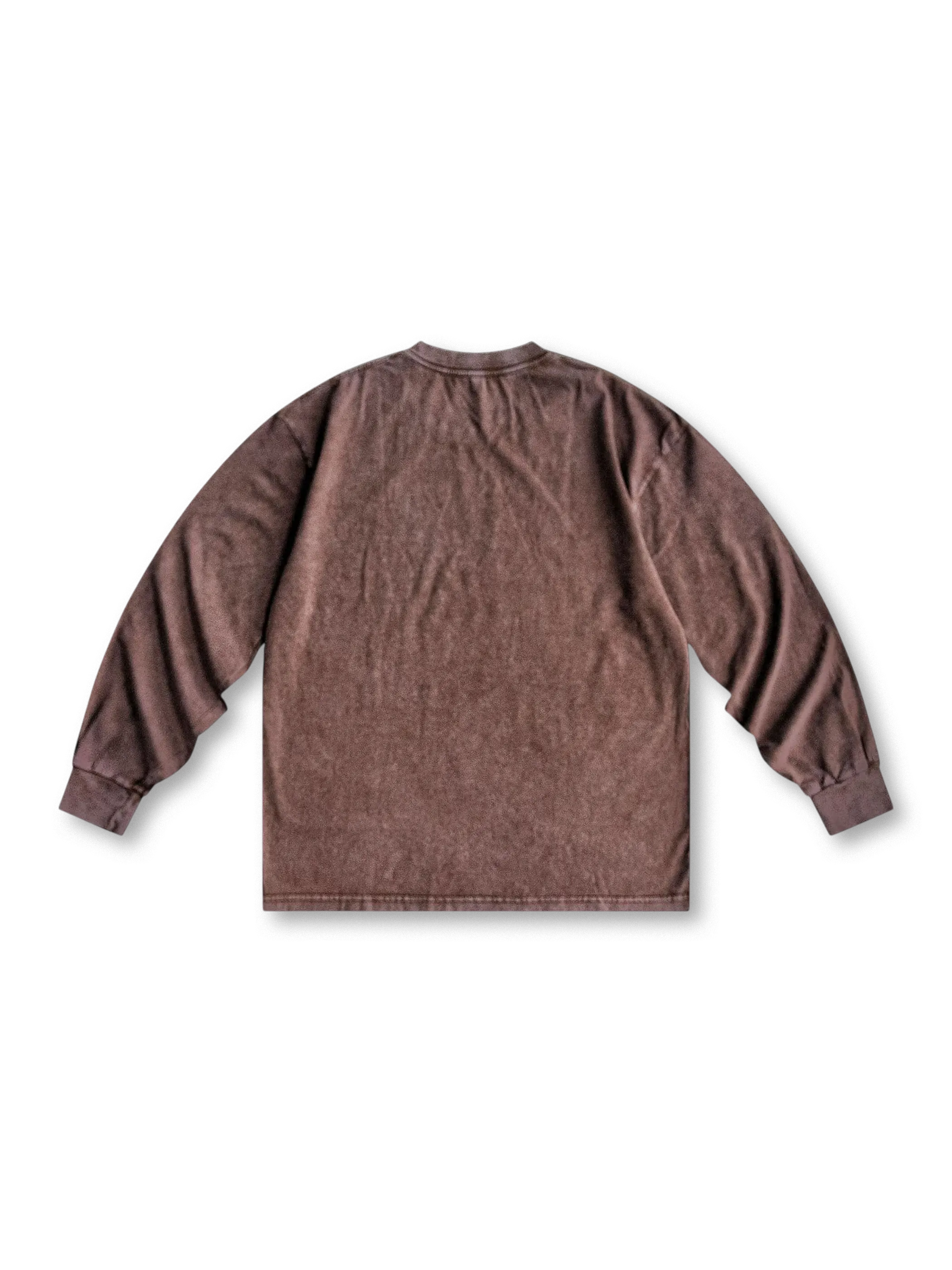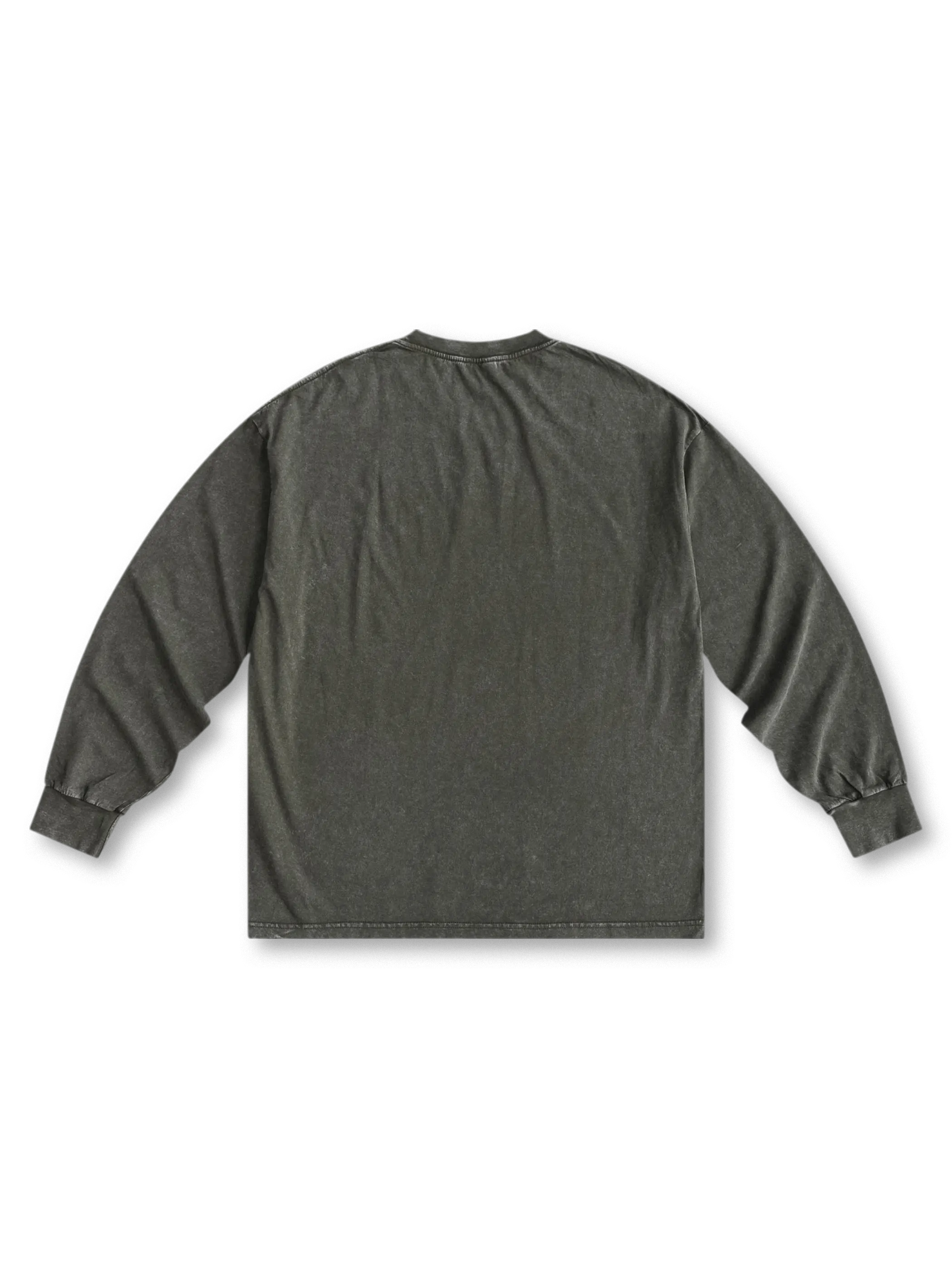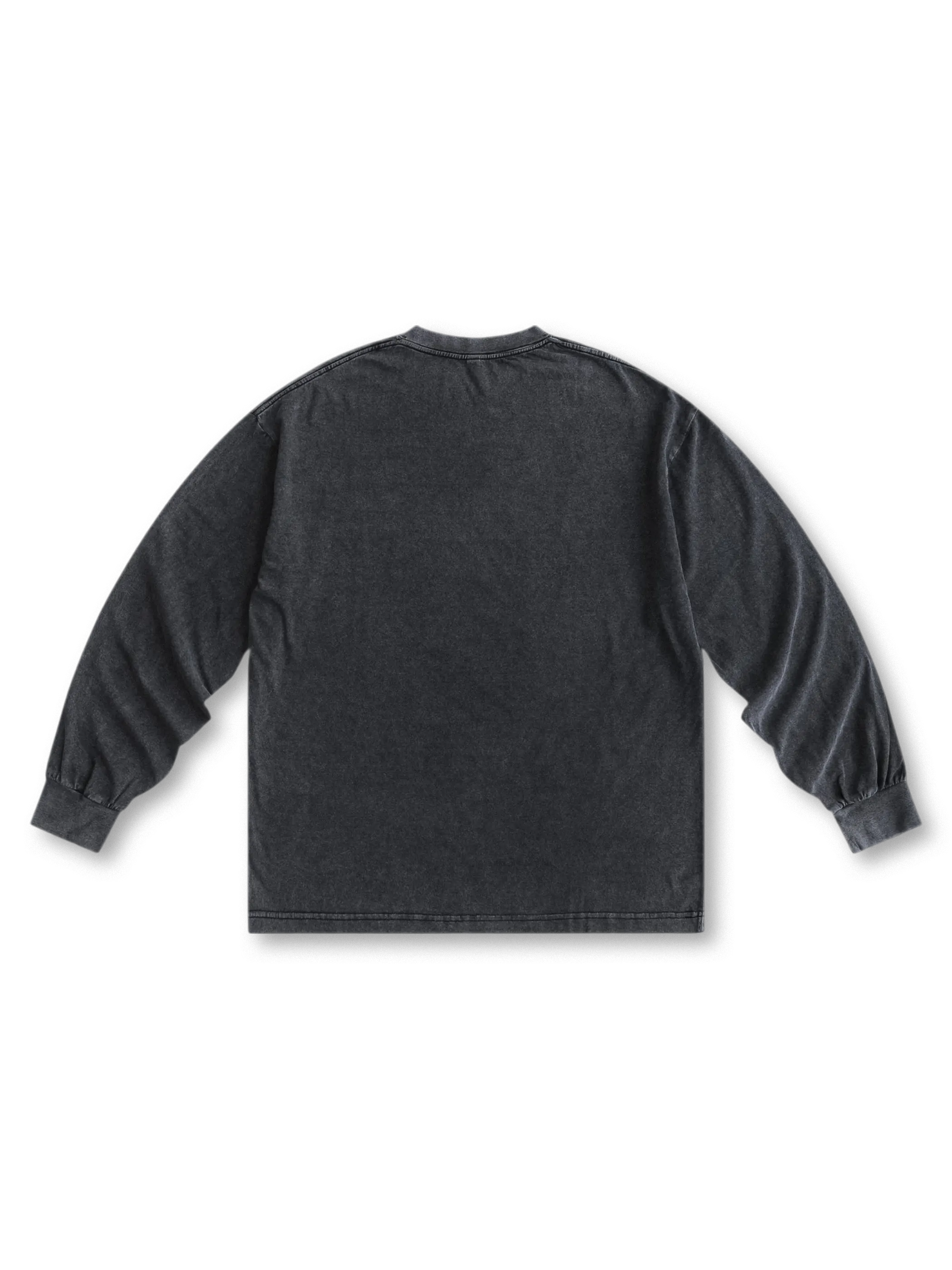 ウォッシュ加工で仕上げた古着風のアルファベットプリントが特徴のロングTシャツは、美式レトロスタイルを手軽に実現します。