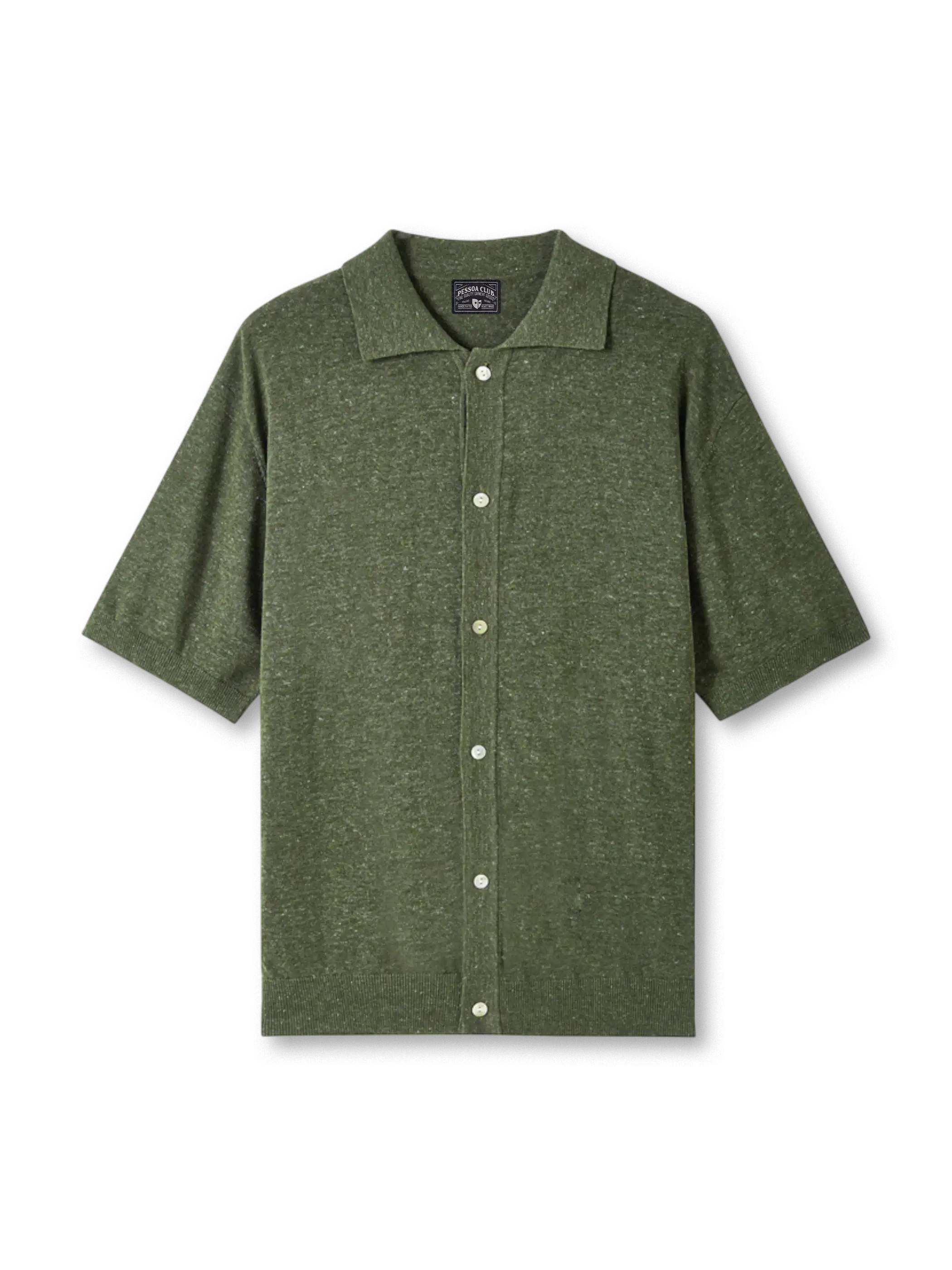 植物由来の涼感レーヨン×リネン素材を使用した、上品なカーディガンスタイルの半袖ポロ。