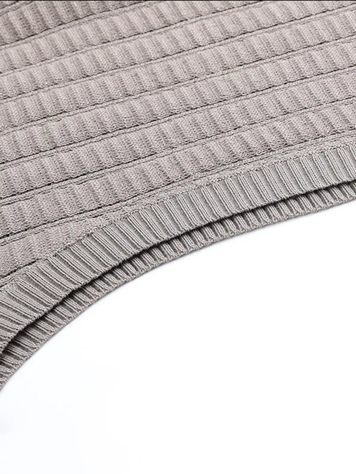 66.7%レーヨン(アイスシルク)×33.3%ポリエステルの混紡糸を用い、ドライタッチかつ通気性に優れた立体リブ編みで仕立てました。肌に触れるたびにひんやり感を与え、立体的な編み目が軽やかな陰影を生み出します。シンプルなデザインながら、シャツやカットソーとのレイヤードで大人の夏コーデに洗練されたアクセントをプラスします。