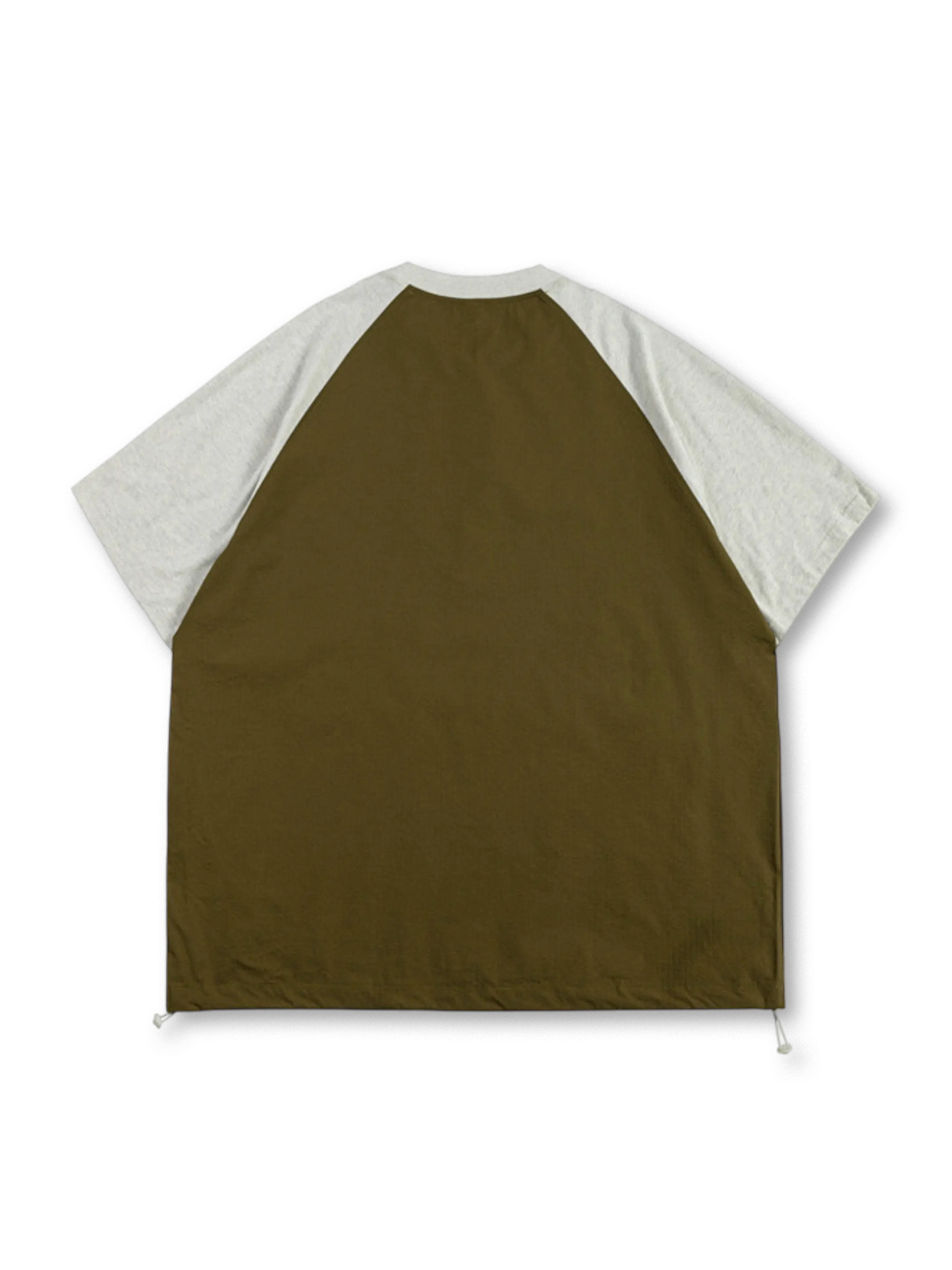 胸ポケットと裾ドローコード付きの立体切り替えで、アウトドアにも映えるワイドシルエットT。