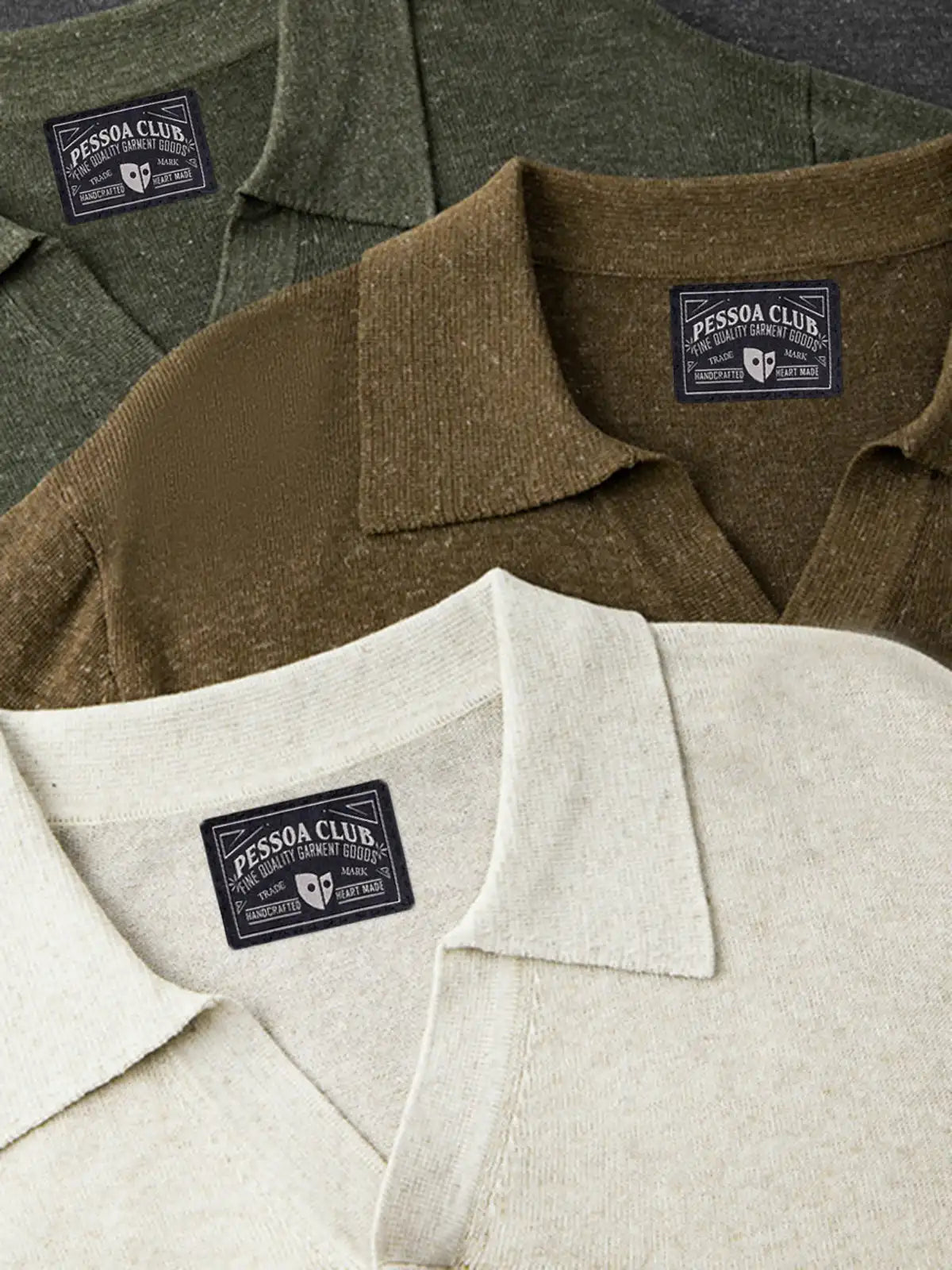 レーヨン×リネンの涼感素材が織りなす上品なVネックポロで、大人の夏のリラックススタイルを演出。