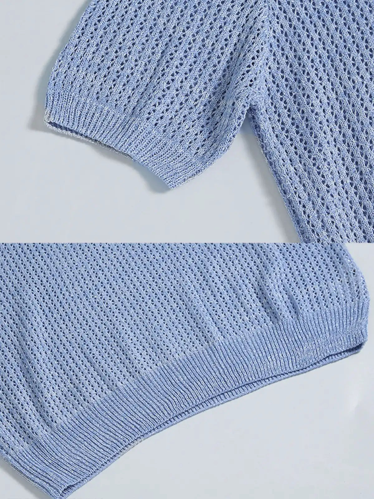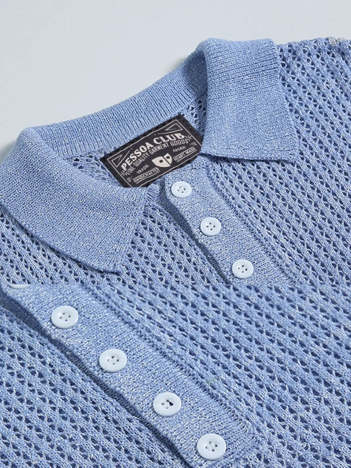 透かし編みの軽やかな肌触りとゆったりシルエットが爽快感をもたらす夏のニットポロ。