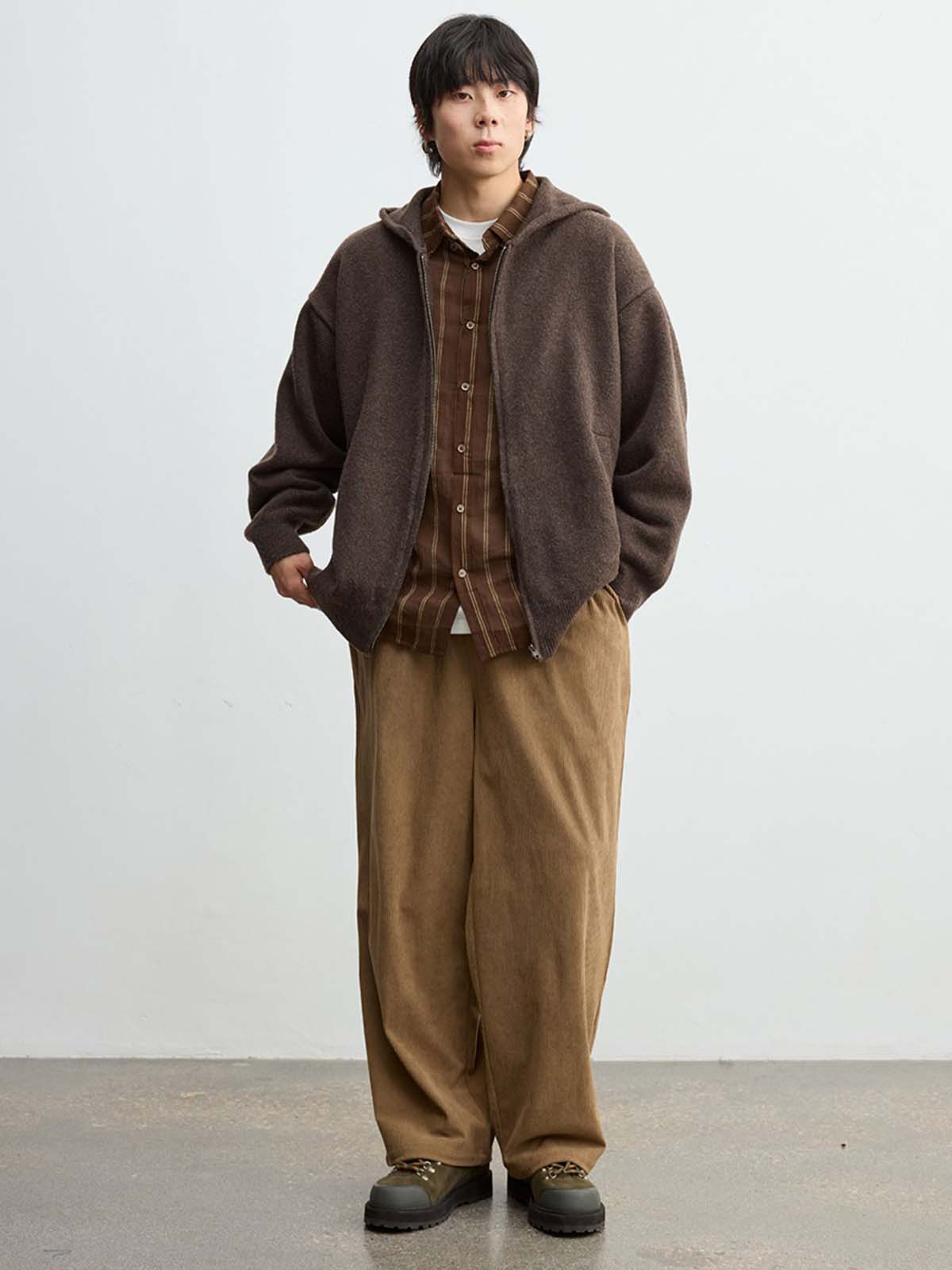 このヴィンテージコーデュロイパンツは、ゴムとドローコード仕様のウエストデザインで、簡単に着脱でき、日常のアクティビティに最適です。ストレートシルエットは自然なドレープ感を持ち、リラックスした快適なカジュアルスタイルを提供します。両サイドには実用的なポケットがデザインされており、日常的な小物の収納にも便利です。後ろポケットも収納力を強化し、スタイルのアクセントになります。街中でもアウトドアでも活躍する、シンプルでありながらスタイリッシュなアイテムです。