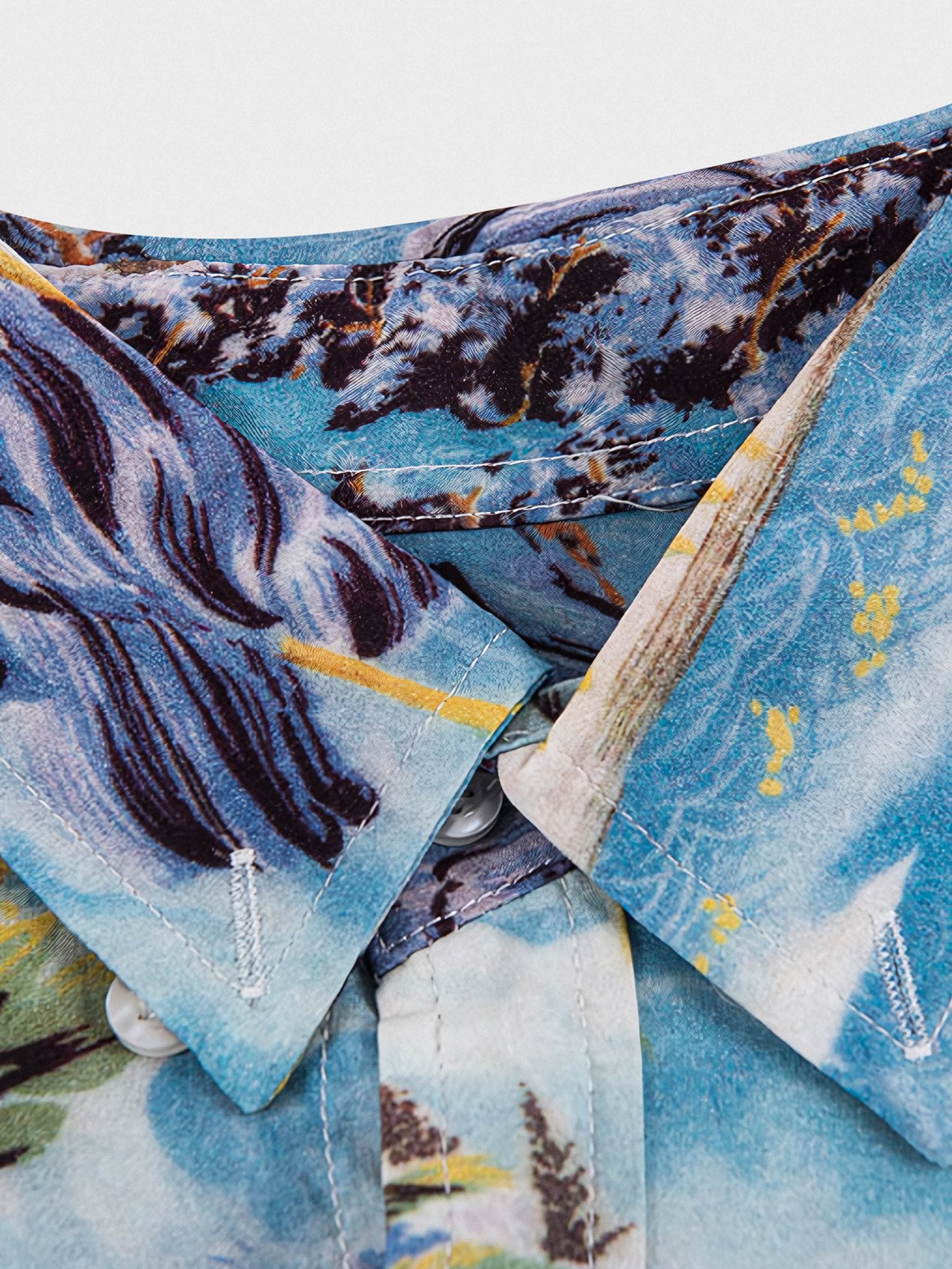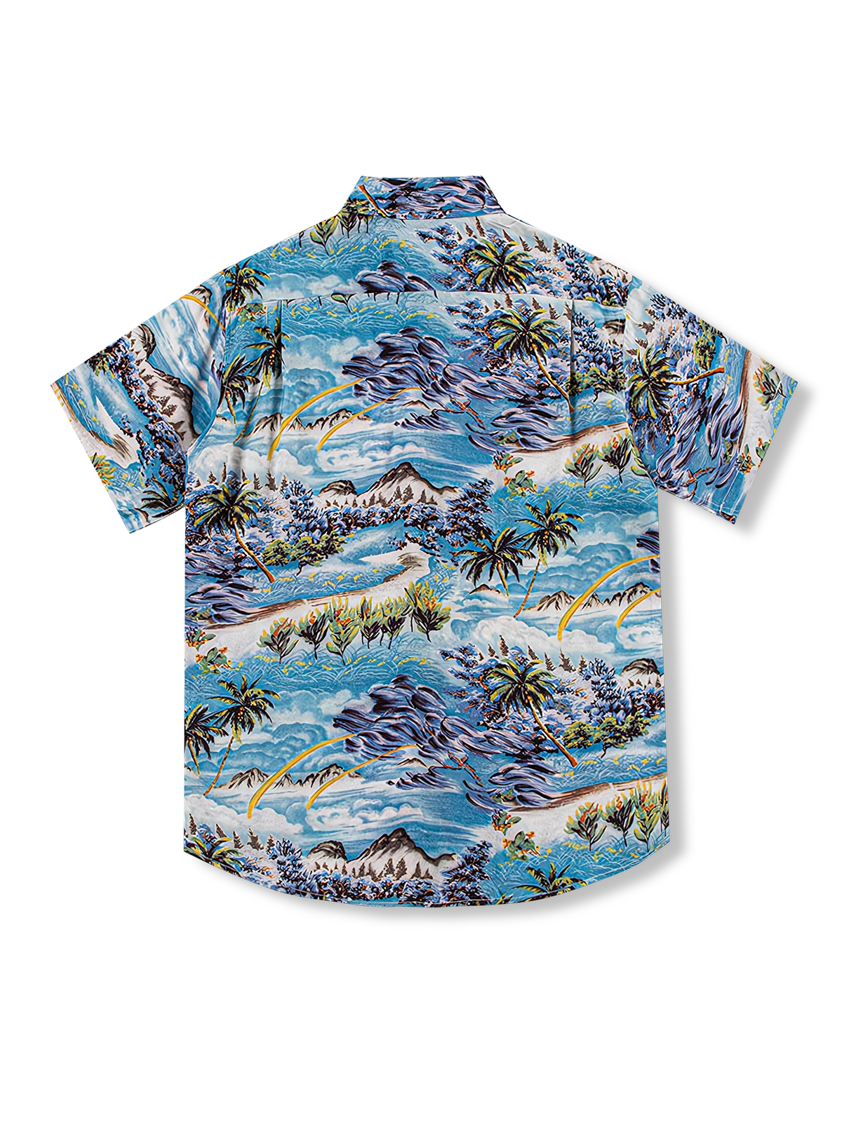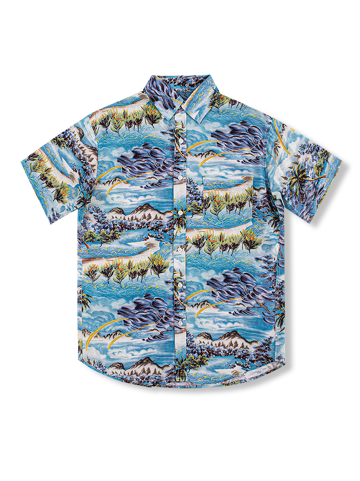 このアイテムは、中国風のプリント柄を巧みにハワイアンシャツのデザインに取り入れ、トレンドとレトロ要素を融合させた、独特のビジュアル効果を表現しています。