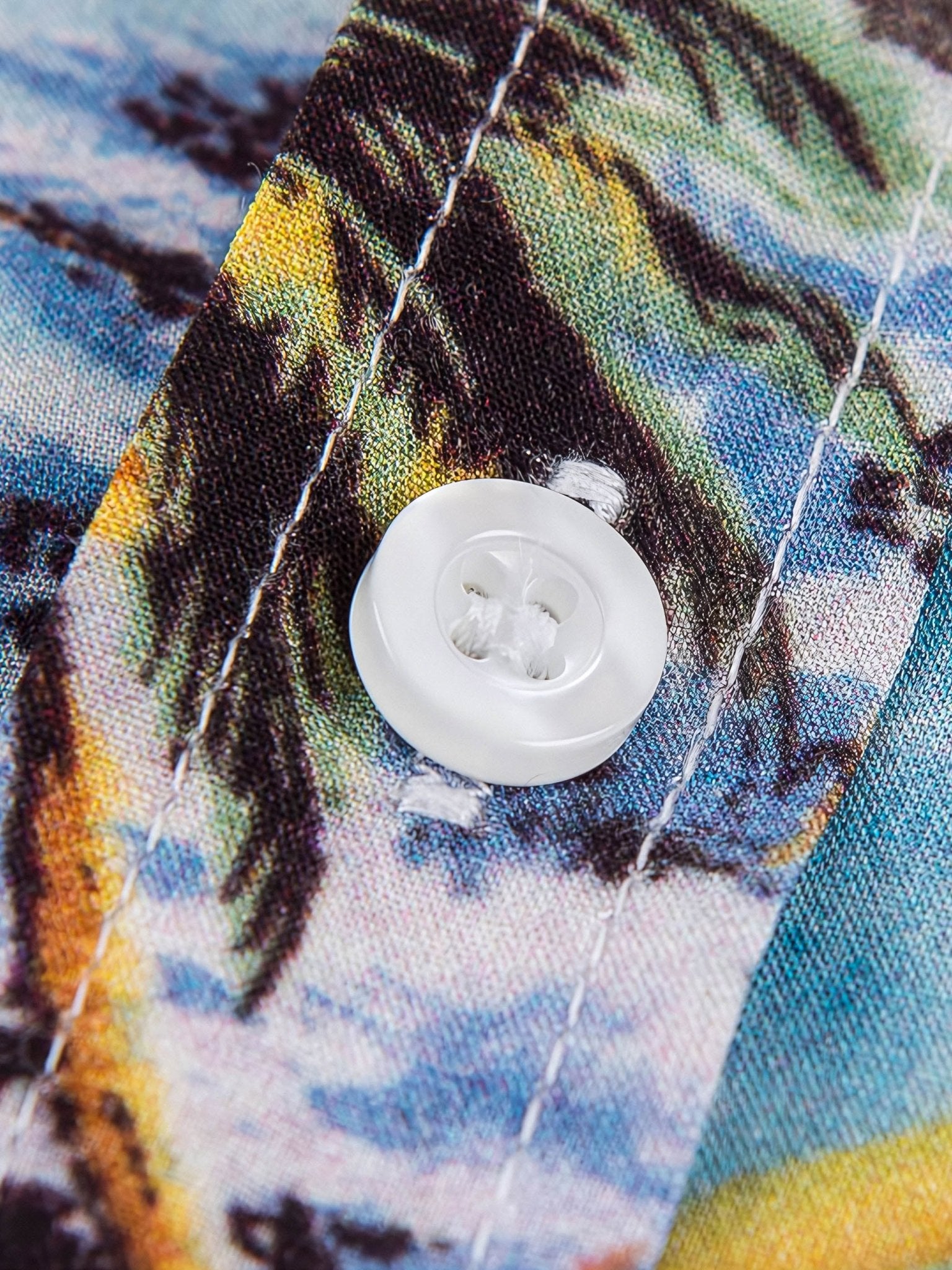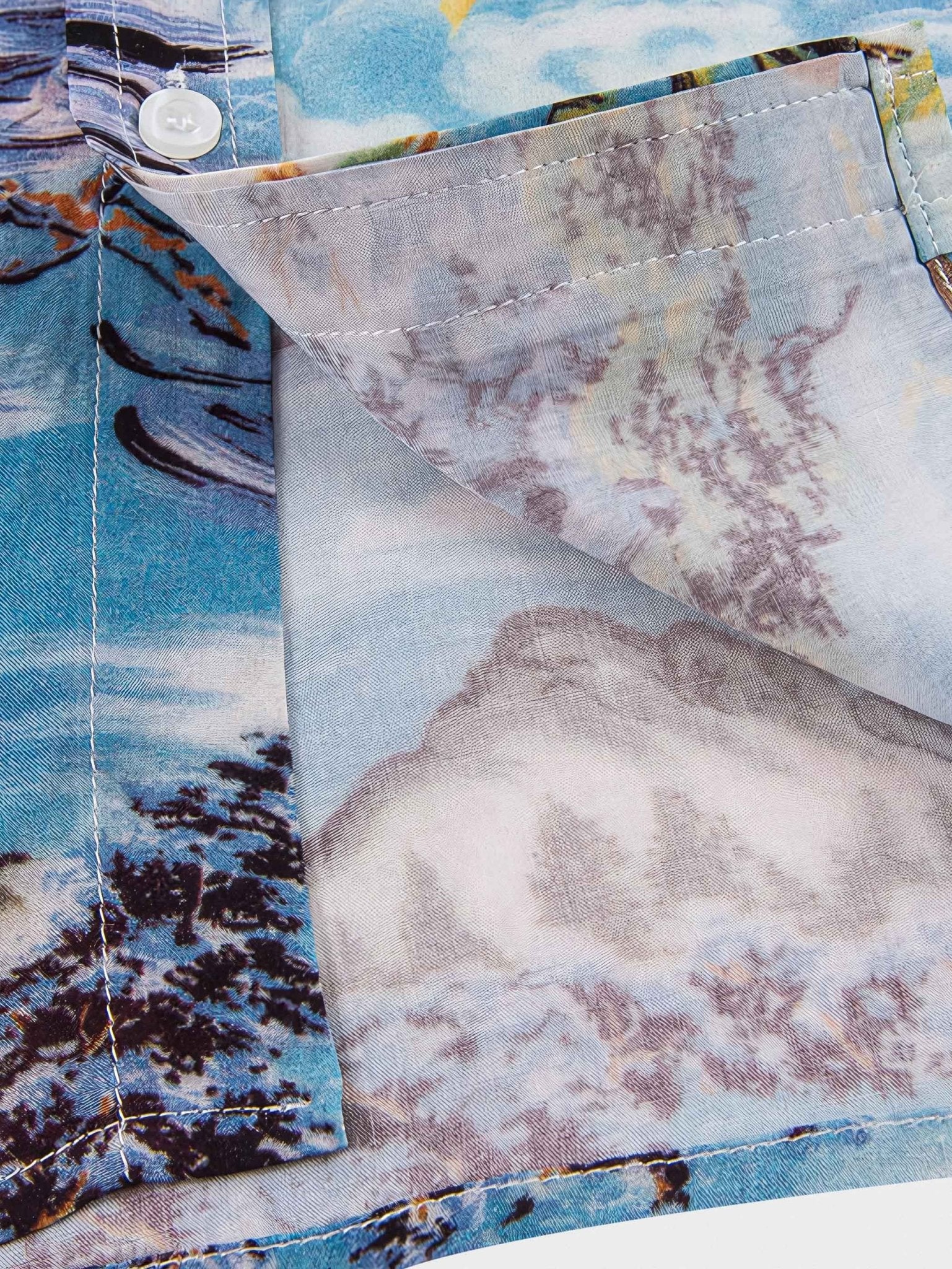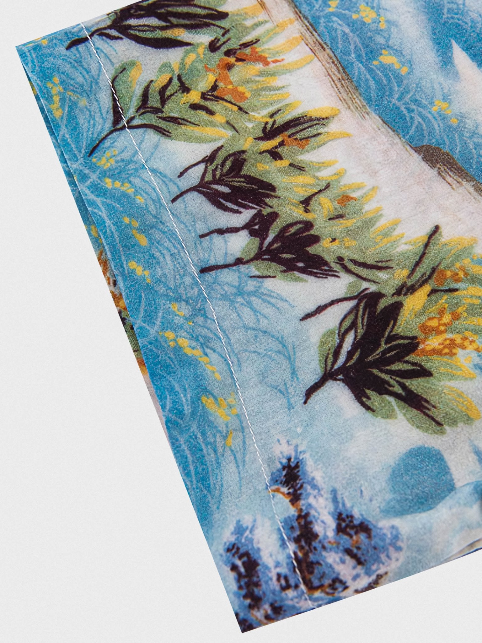 このアイテムは、中国風のプリント柄を巧みにハワイアンシャツのデザインに取り入れ、トレンドとレトロ要素を融合させた、独特のビジュアル効果を表現しています。