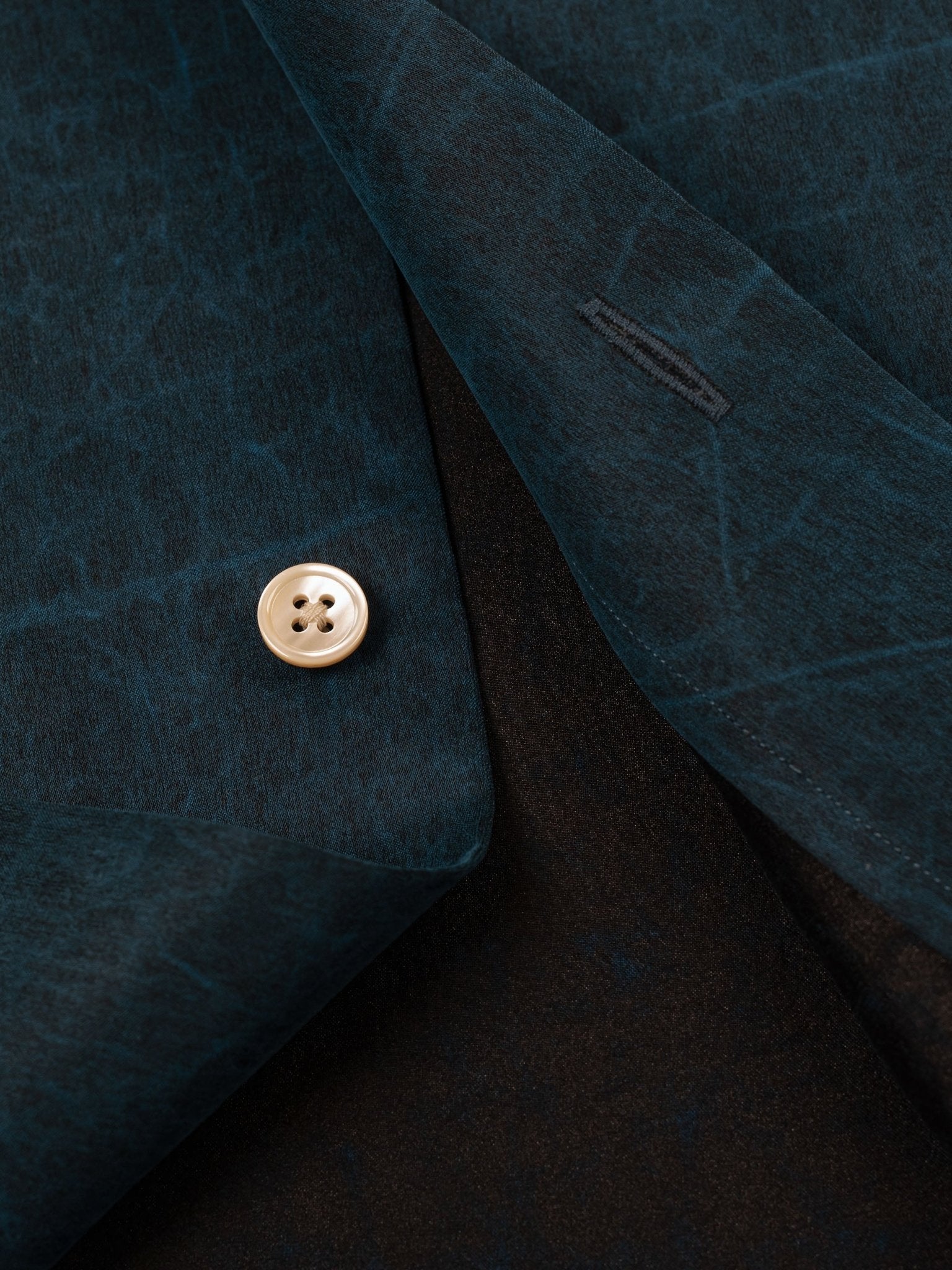 このシャツは、100%の絹で作られています。絹は、柔らかくて軽量で、肌触りが非常に滑らかで、高級感と品質感があります。絹は通気性が高く、吸湿性も優れているため、涼しく快適な着心地を提供します。また、絹は耐久性があり、織り目が密集しているため、日焼けや摩擦にも強く、長期間の使用でも美しい状態を保ちます。このアロハシャツの絹素材は、豊かな色調と光沢があり、太陽の光を反射してより鮮やかな色彩を放ちます。