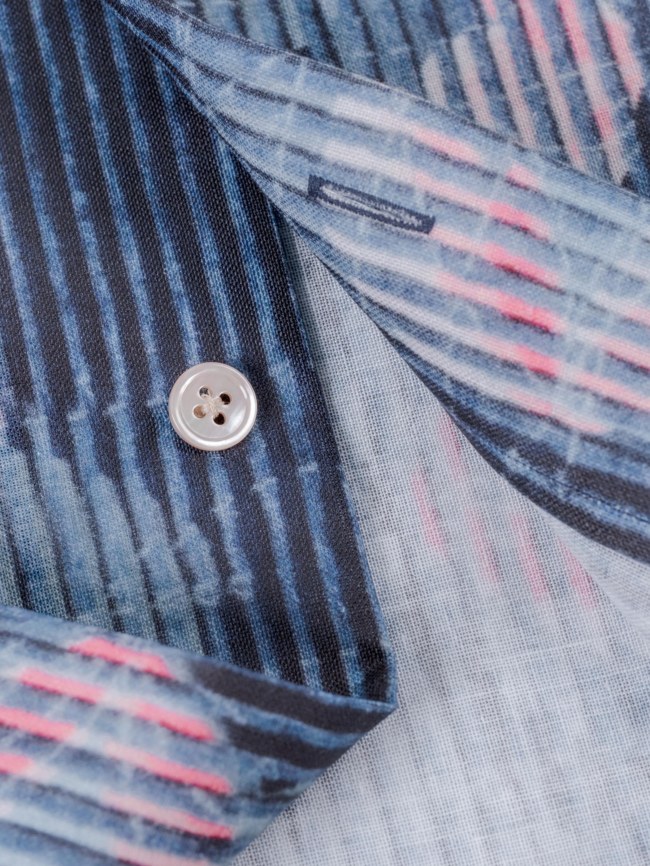 このアロハシャツは、縦縞が花のモチーフとなっているデザインです。古巴领のスタイルがシャツに特別な魅力を与えています。縦縞はシャツに優雅さと洗練された雰囲気をもたらし、花のモチーフがさらなる華やかさを加えます。シャツの生地は軽くて通気性があり、快適な着心地を提供します。縦縞が花の形を作り出し、視覚的な魅力を高めることで、シャツに個性と魅力を与えます。
