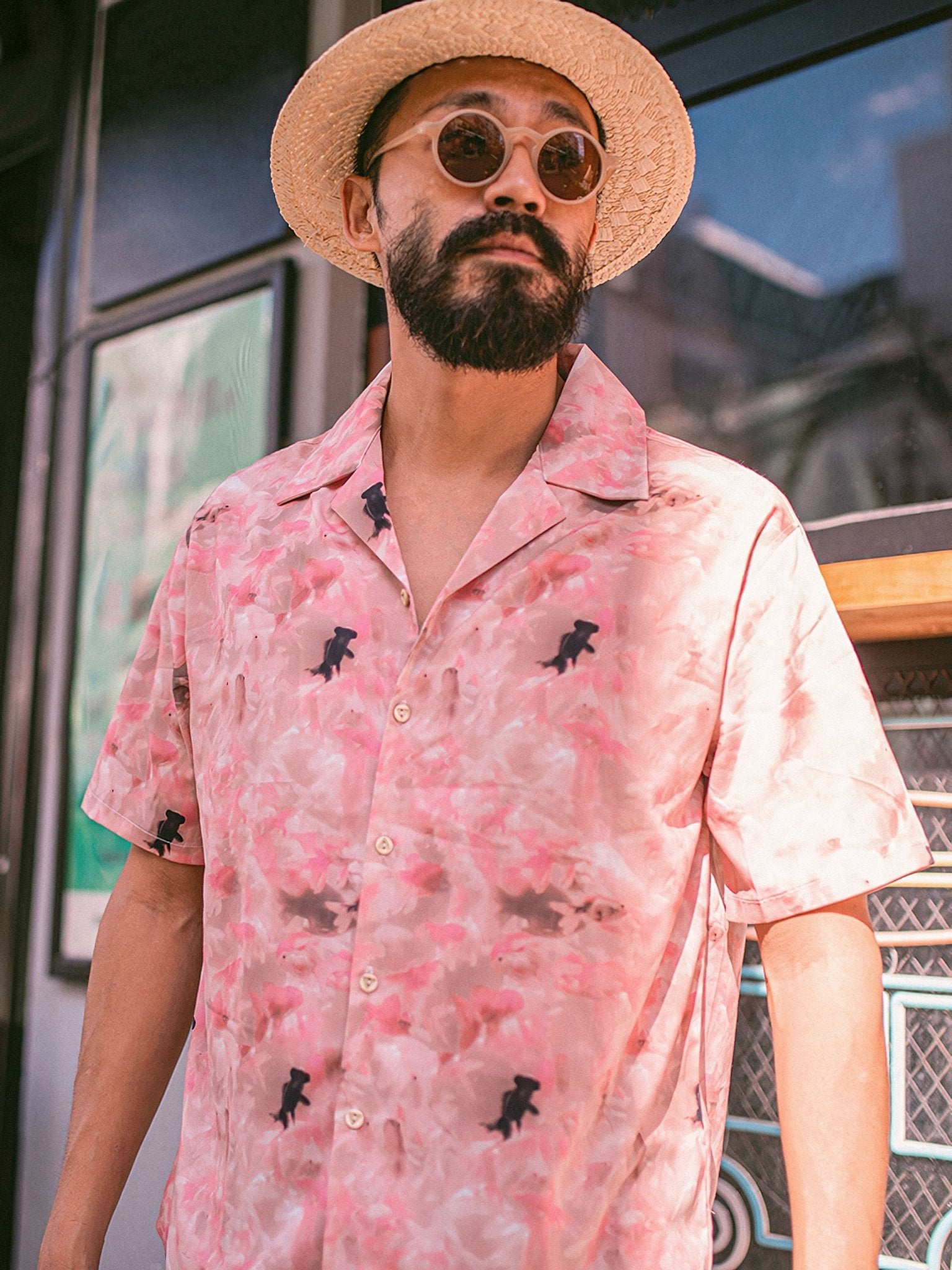 この夏、ハワイアンのスタイルを思わせるピンク色の金魚柄シャツが登場です!今後の暑い季節において、この素晴らしい色彩とデザインは、あなたのスタイリングにハイライトを加えること間違いありませんので、ぜひ見逃さないでください!