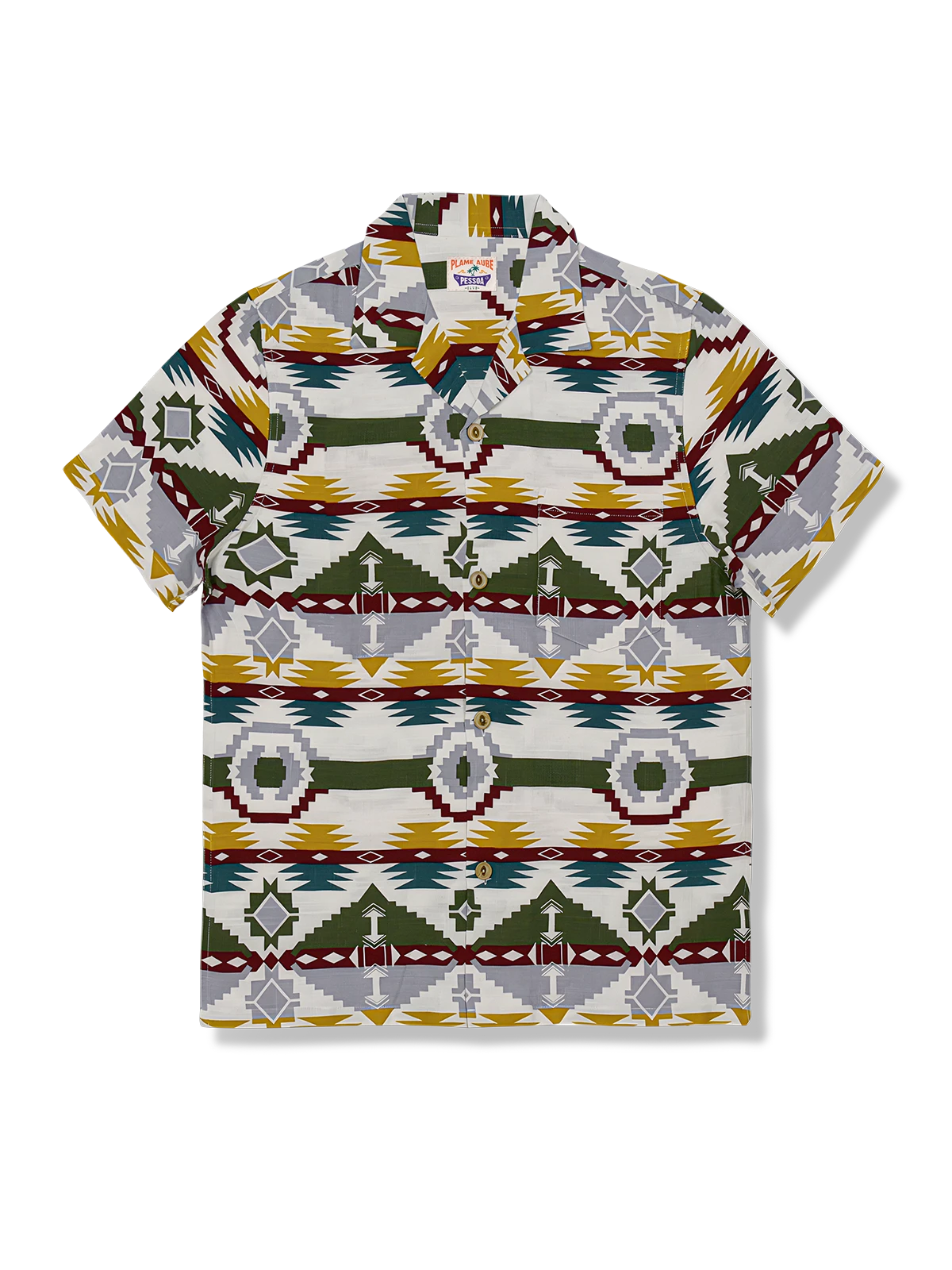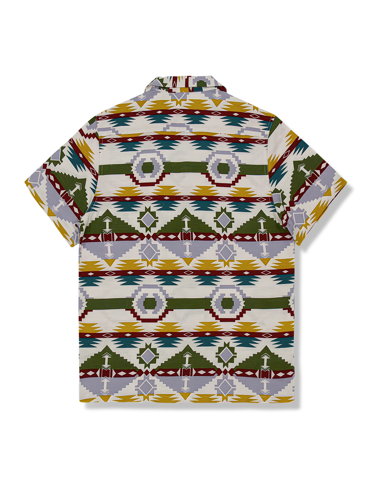 ヴィンテージ感のある柄に、民族調の模様を配置した独特なキューバカラーが特徴。胸元のポケットがワンポイントとなり、幅広いシーンで活躍する実用的なデザイン。