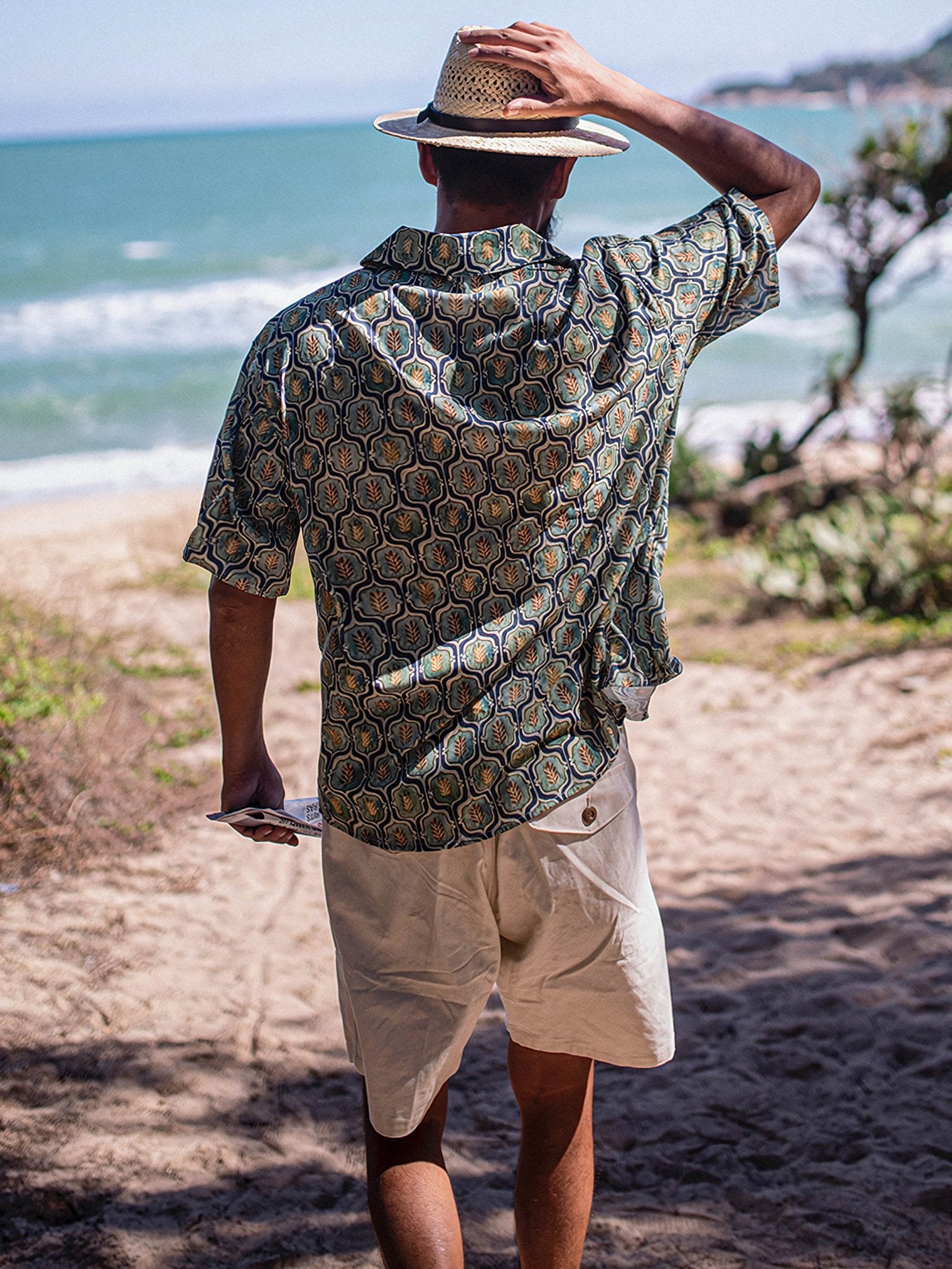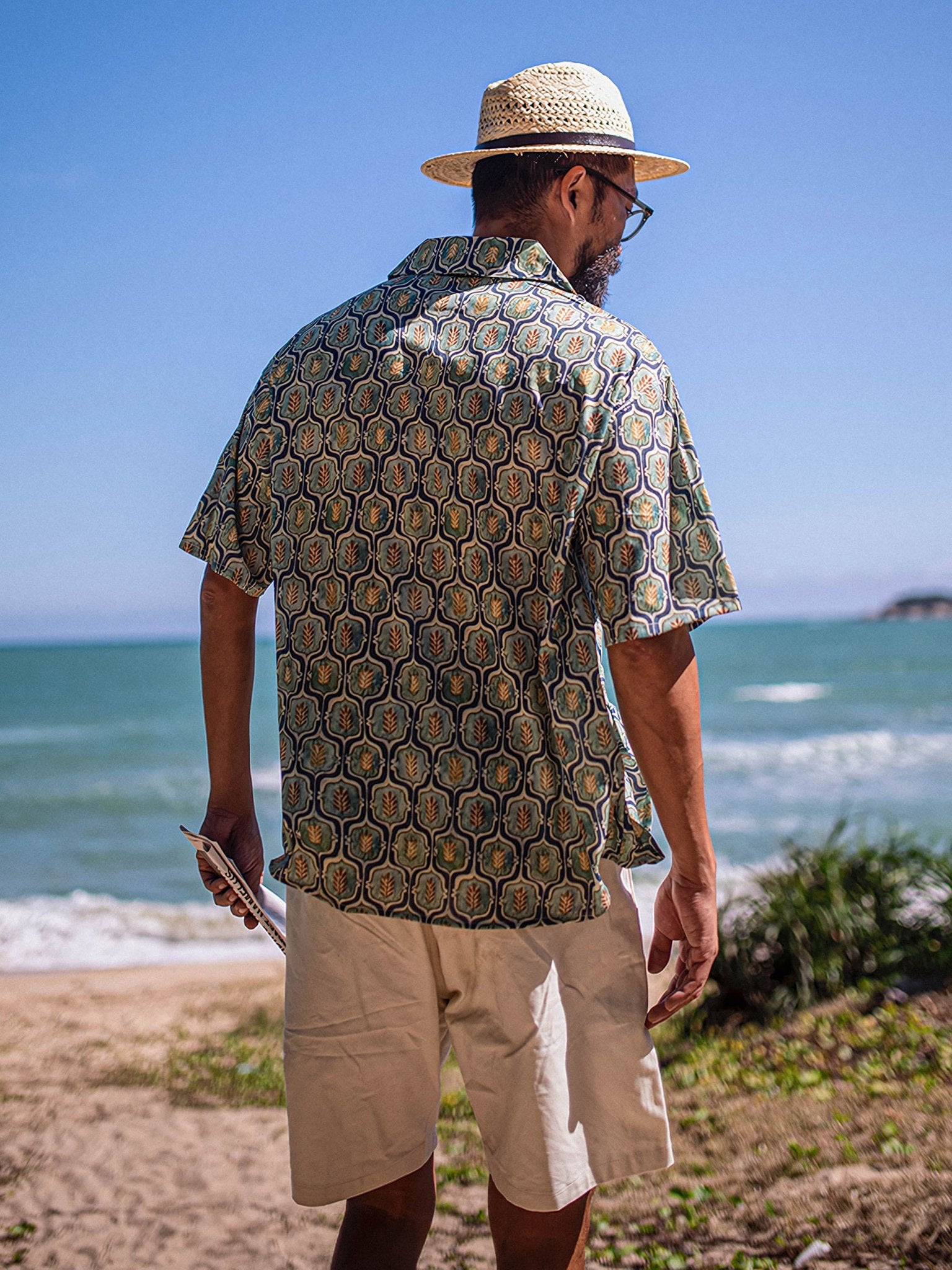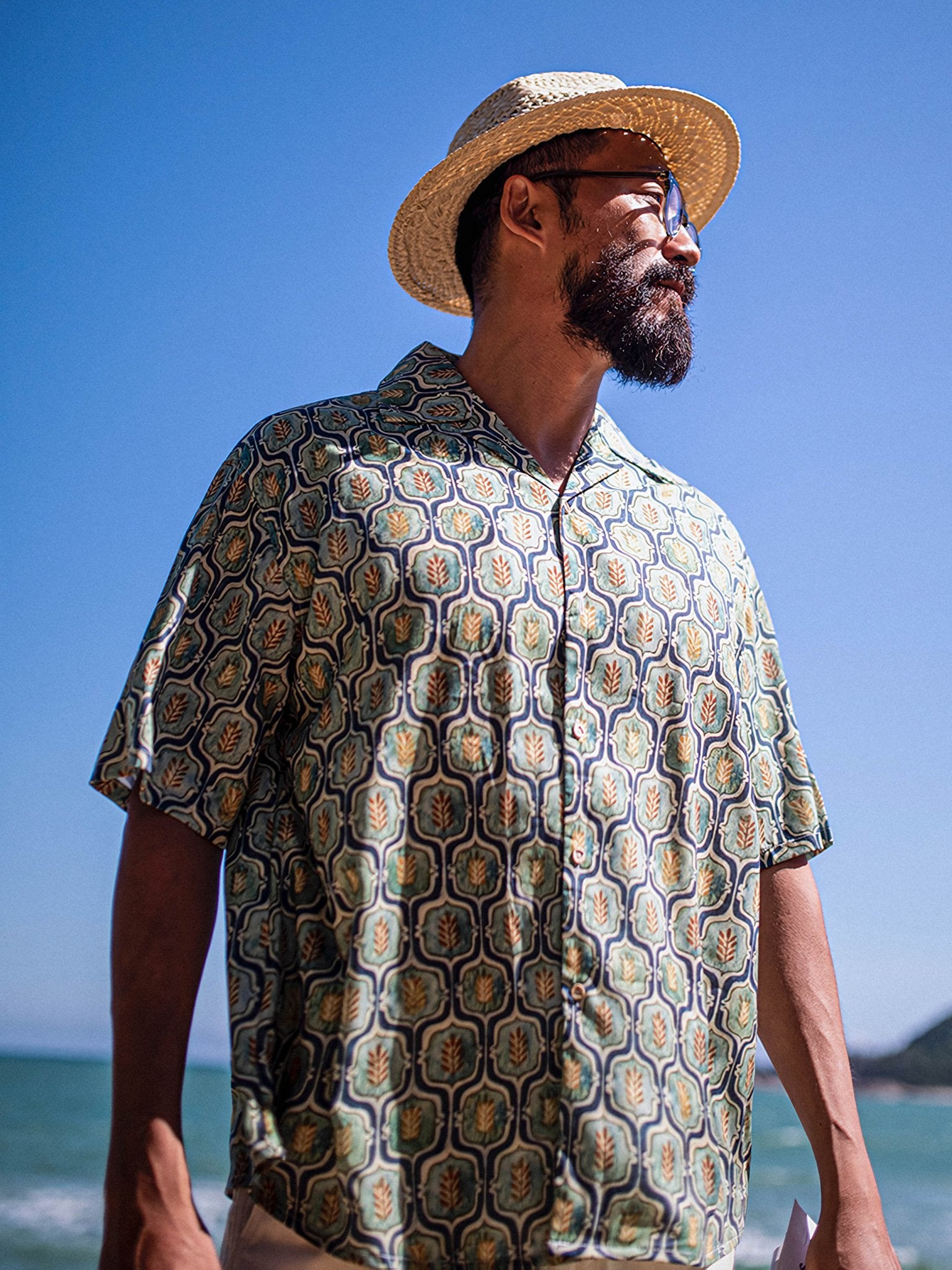 このシャツは、夏のリラックスしたアクティビティや旅行に最適です。ビーチリゾートや街中の散策など、あらゆる場面であなたをファッションの焦点にします。プリントとキューバカラーデザインを取り入れ、濃厚なレトロな雰囲気を演出しています。