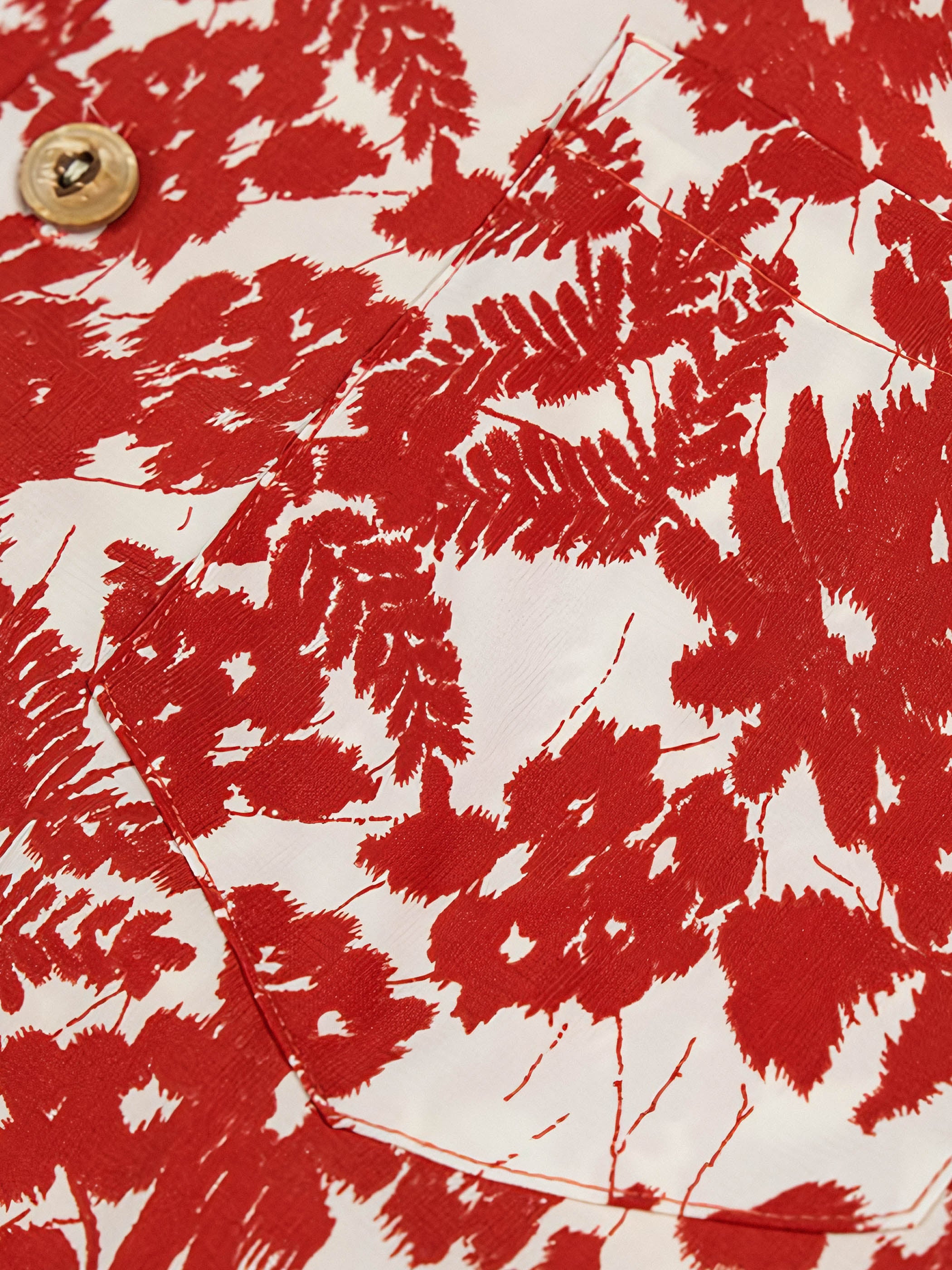キューバカラーのオープン襟デザインは、より快適な着心地を提供します。ドロップショルダーのデザインは、自由な気分とリラックス感を演出し、夏の季節に軽やかさを感じさせます。