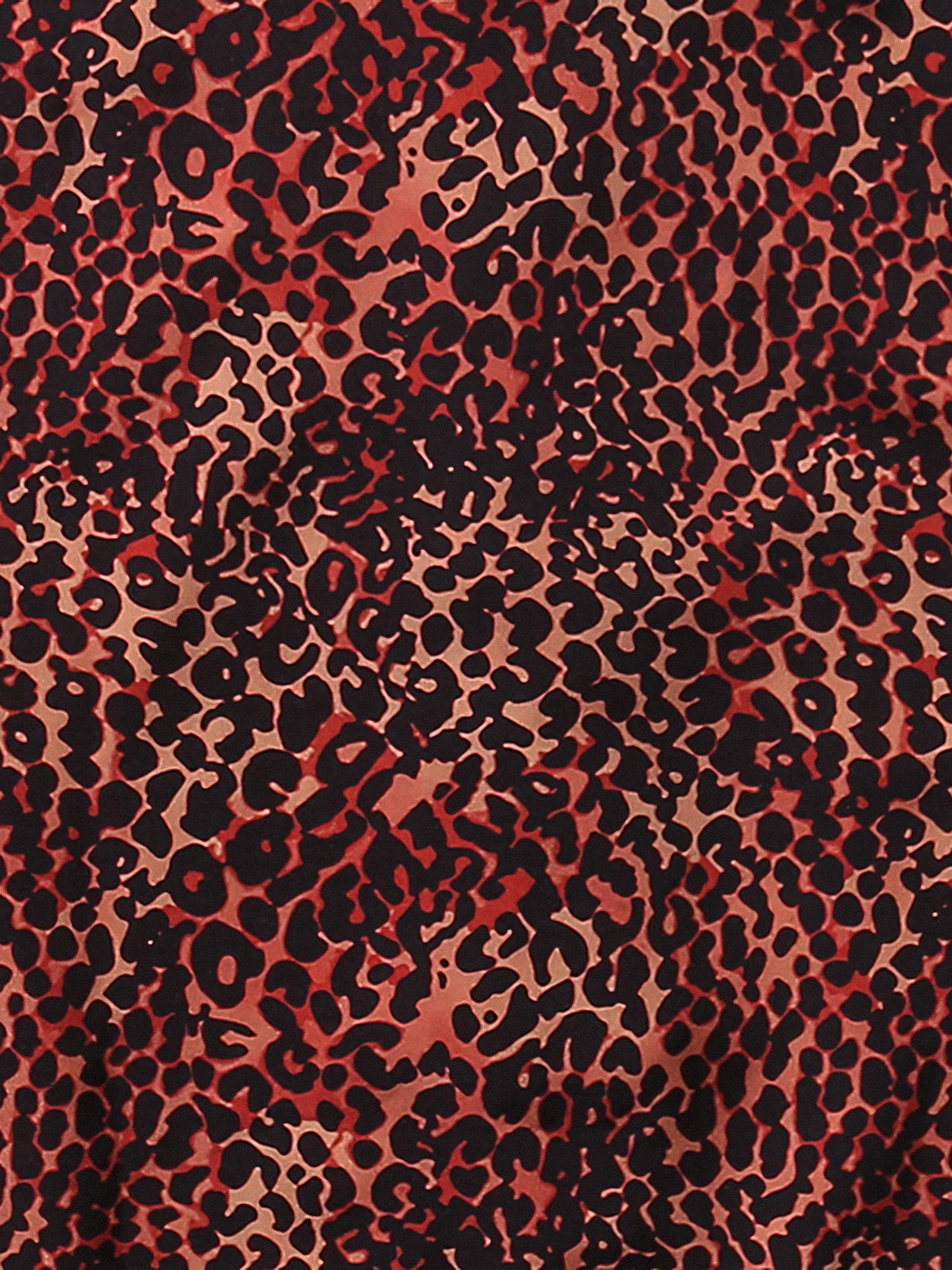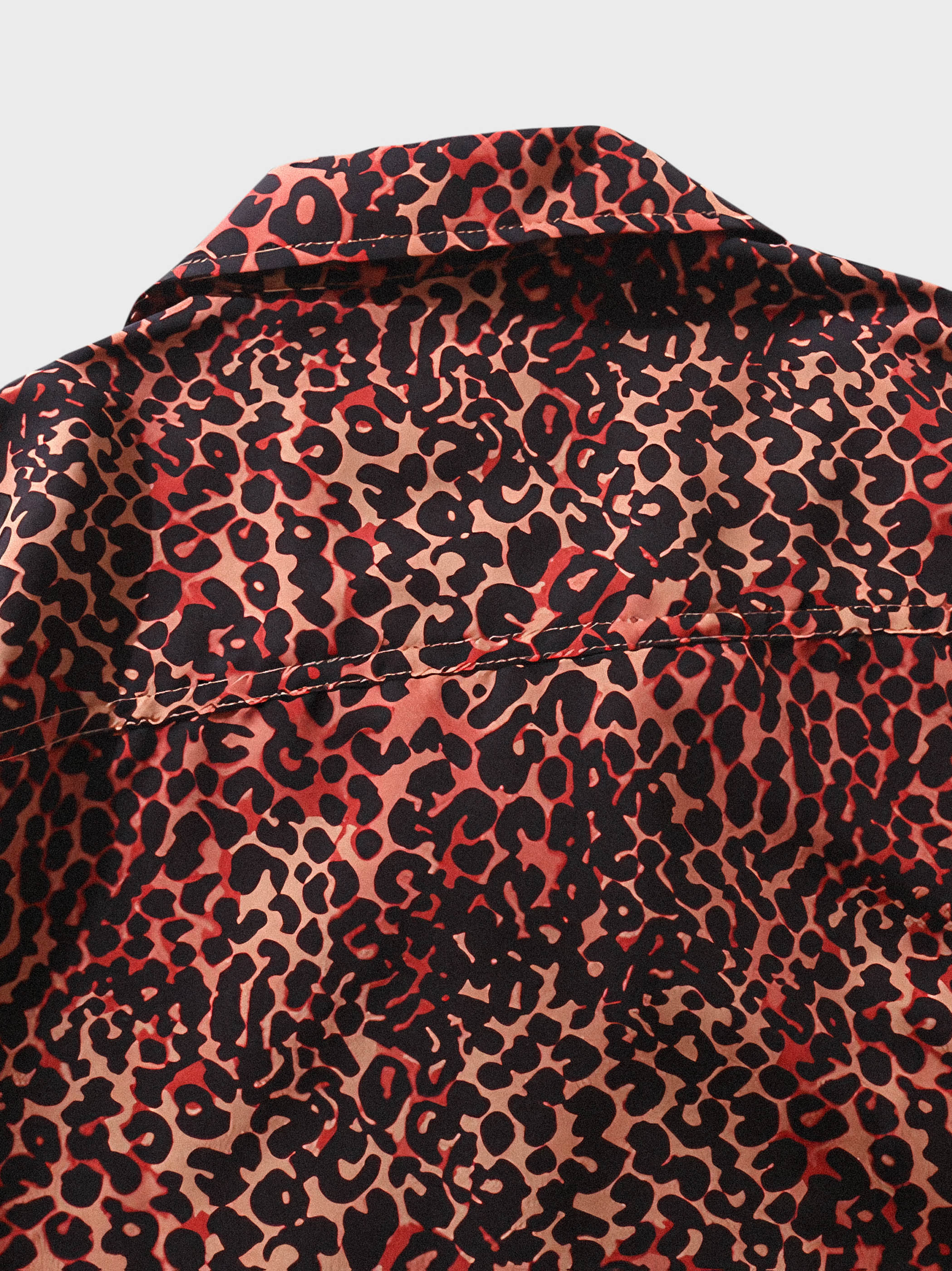 このアロハシャツは、独特な赤のヒョウ柄デザインで個性を表現しています。キューバカラーのデザインはカジュアルさを加え、ヒョウ柄はトレンドに対応し、着る人に野性的で自信に満ちた雰囲気を与えます。