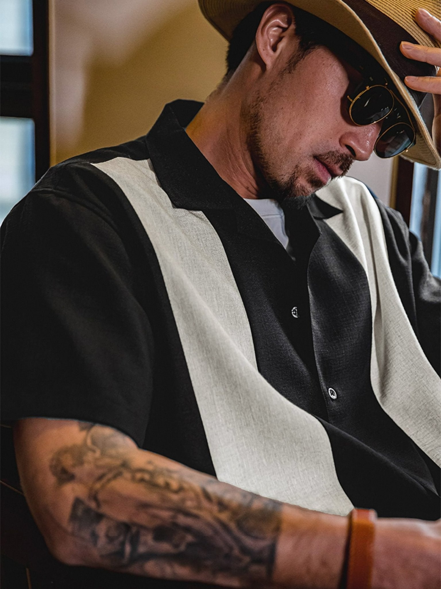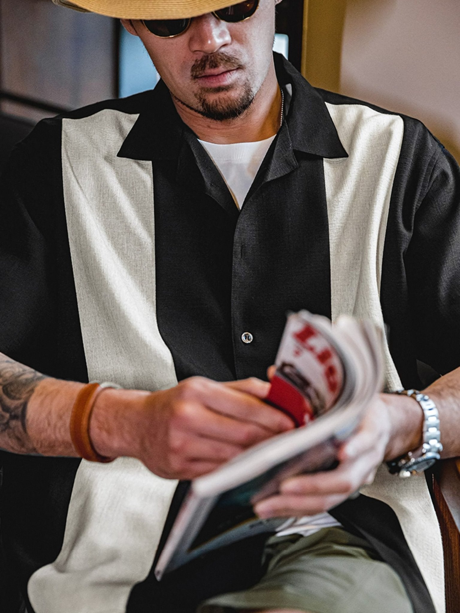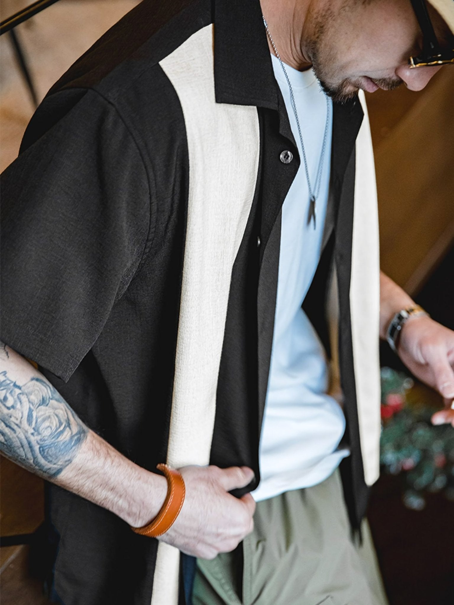 本アイテムは異素材コンビで仕上げ、フロントに黒と白でパッチワークデザインを採用し、質感やテキスチャーが美しく表現され、スペシャル感とビンテージ感を兼ね備えています。また、発色を抑えたカラーバランスが絶妙で、糸染め織物の立体感や奥行き感も魅力的です。