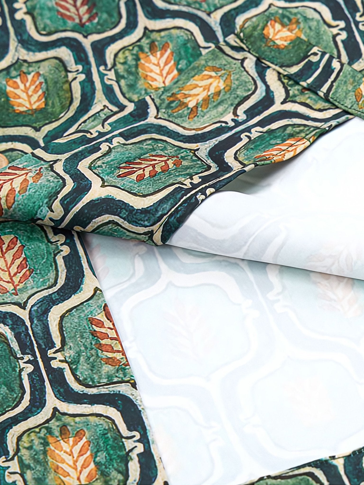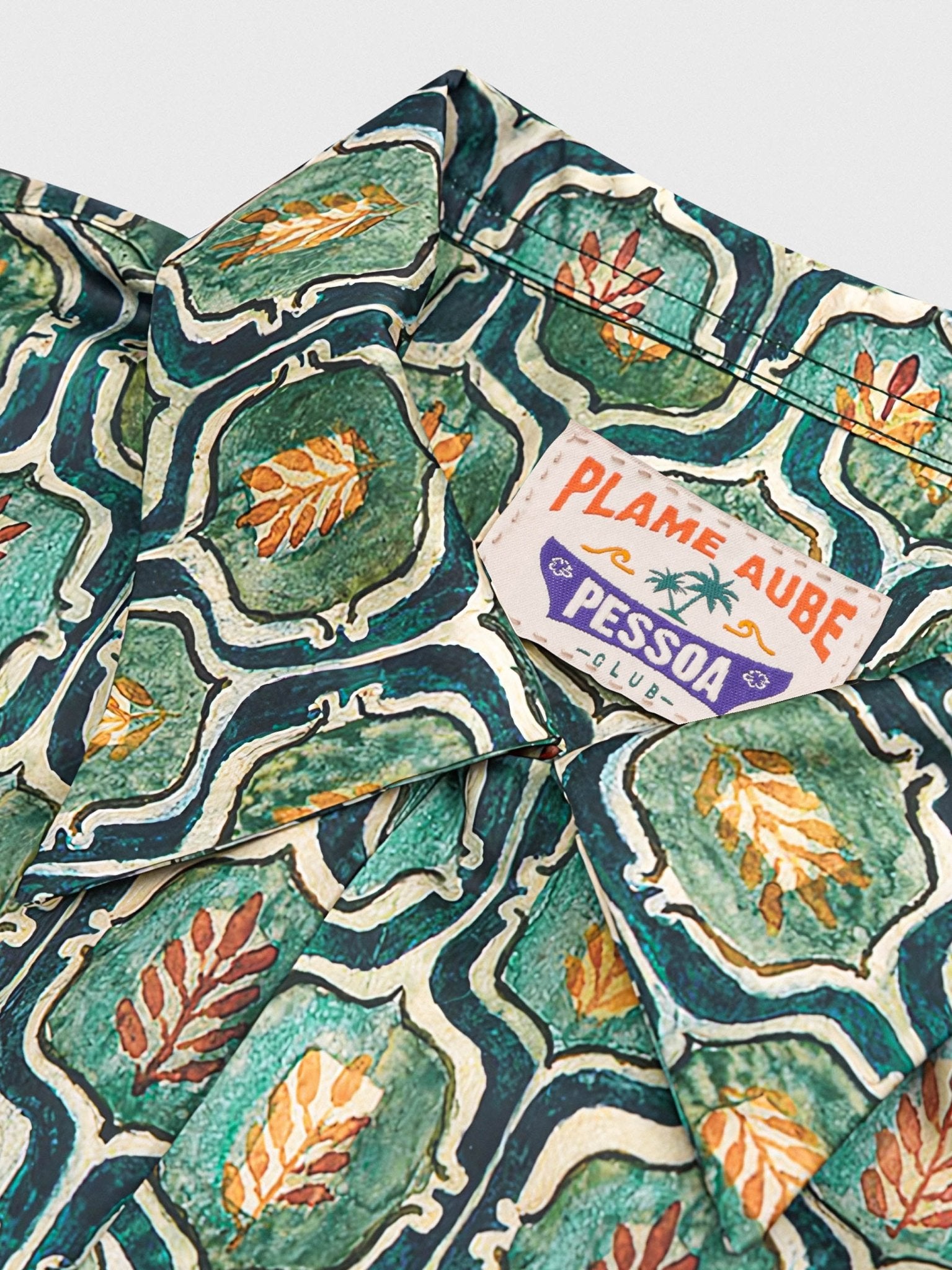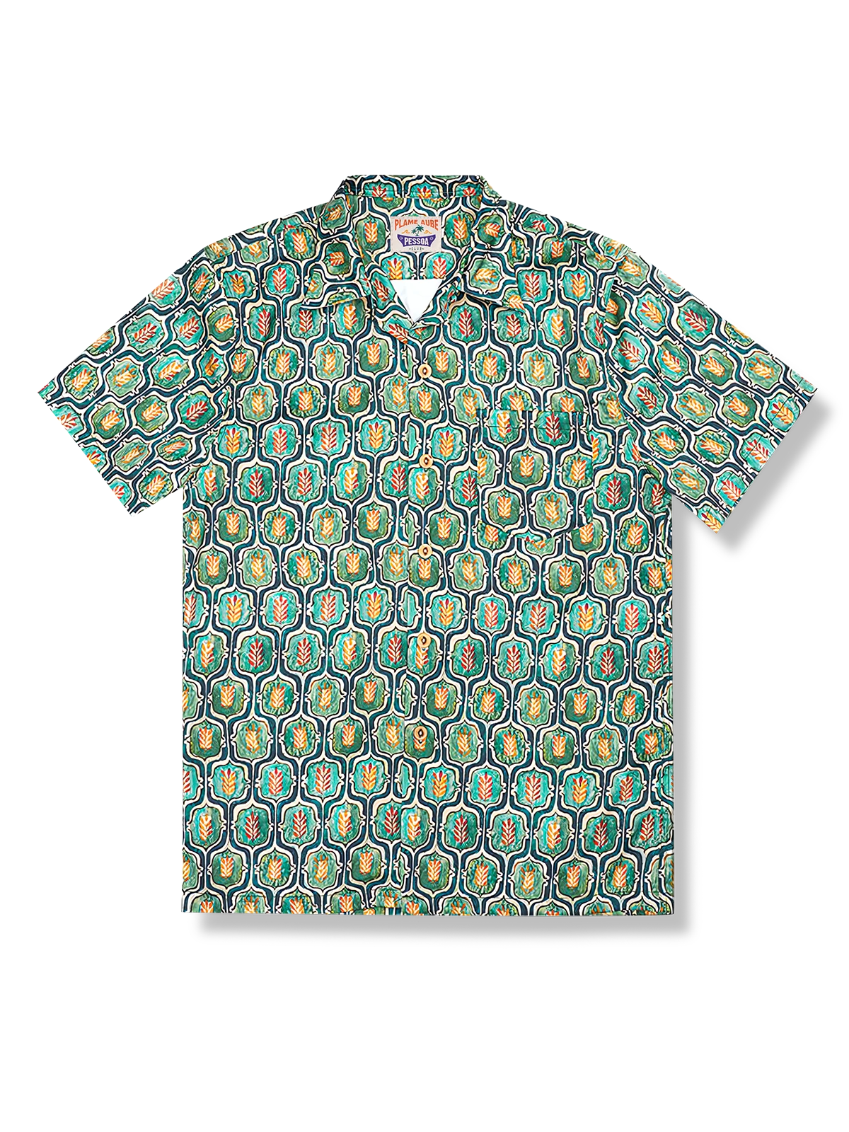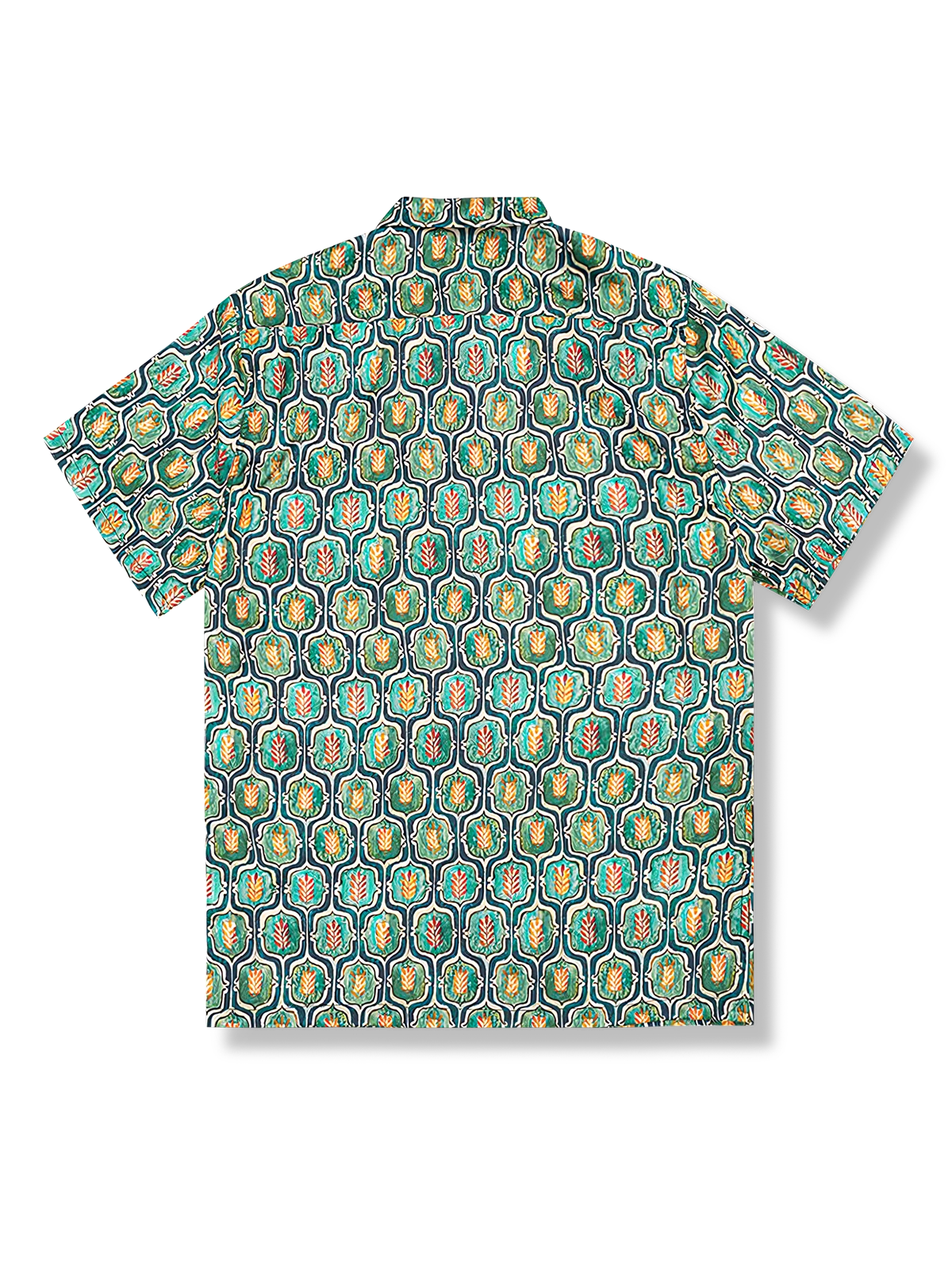 このアロハシャツは、アメリカンヴィンテージスタイルが溢れる、規則的なプリントデザインを採用しています。そのデザインはクリアで清潔感のある視覚効果を持ち、鮮やかなカラーを使用して、シャツ全体をより活き活きとした印象に仕上げています。