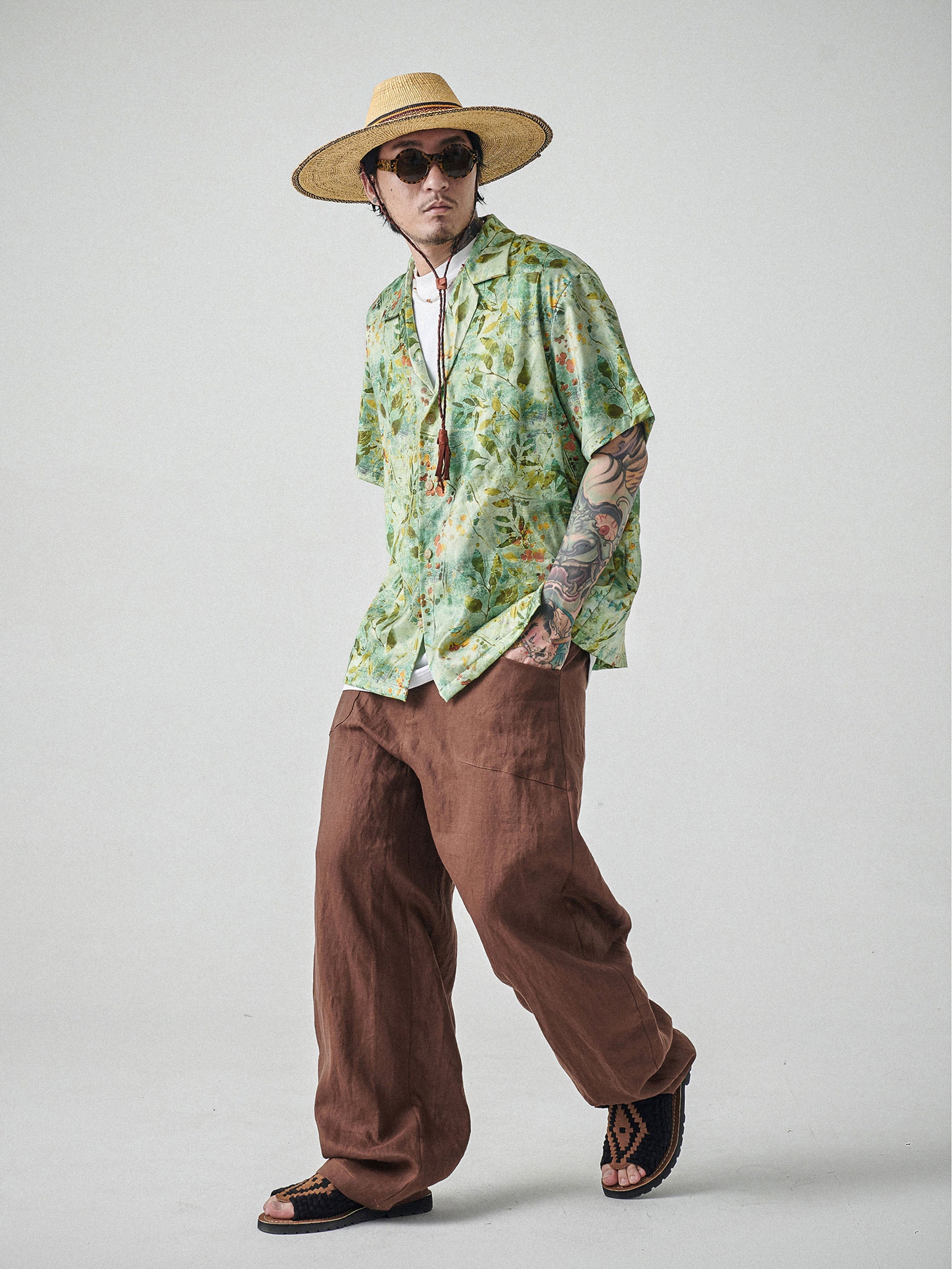 この緑の葉柄シャツは、夏のクローゼットに欠かせない一着であり、自信と魅力をあらゆる場面で放つことができます。