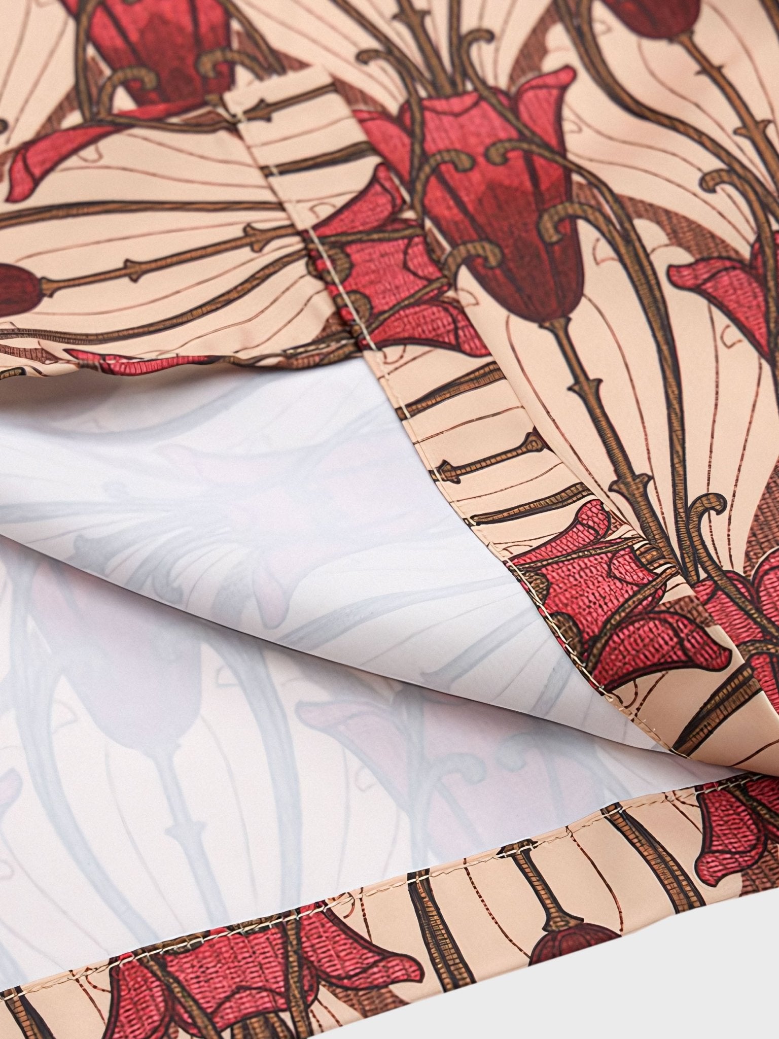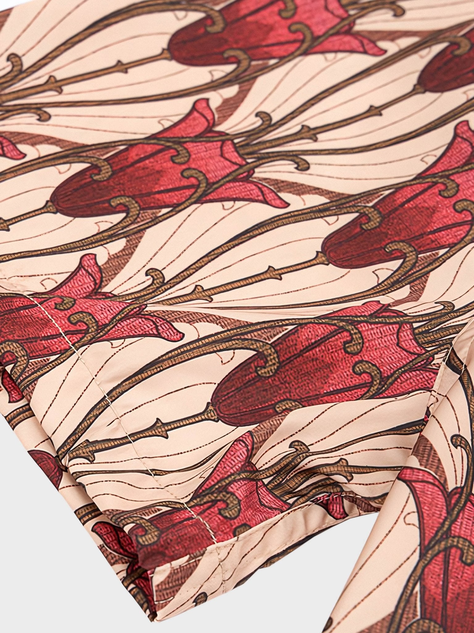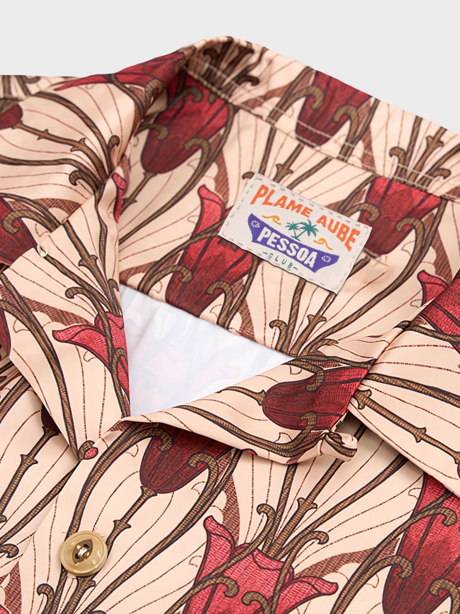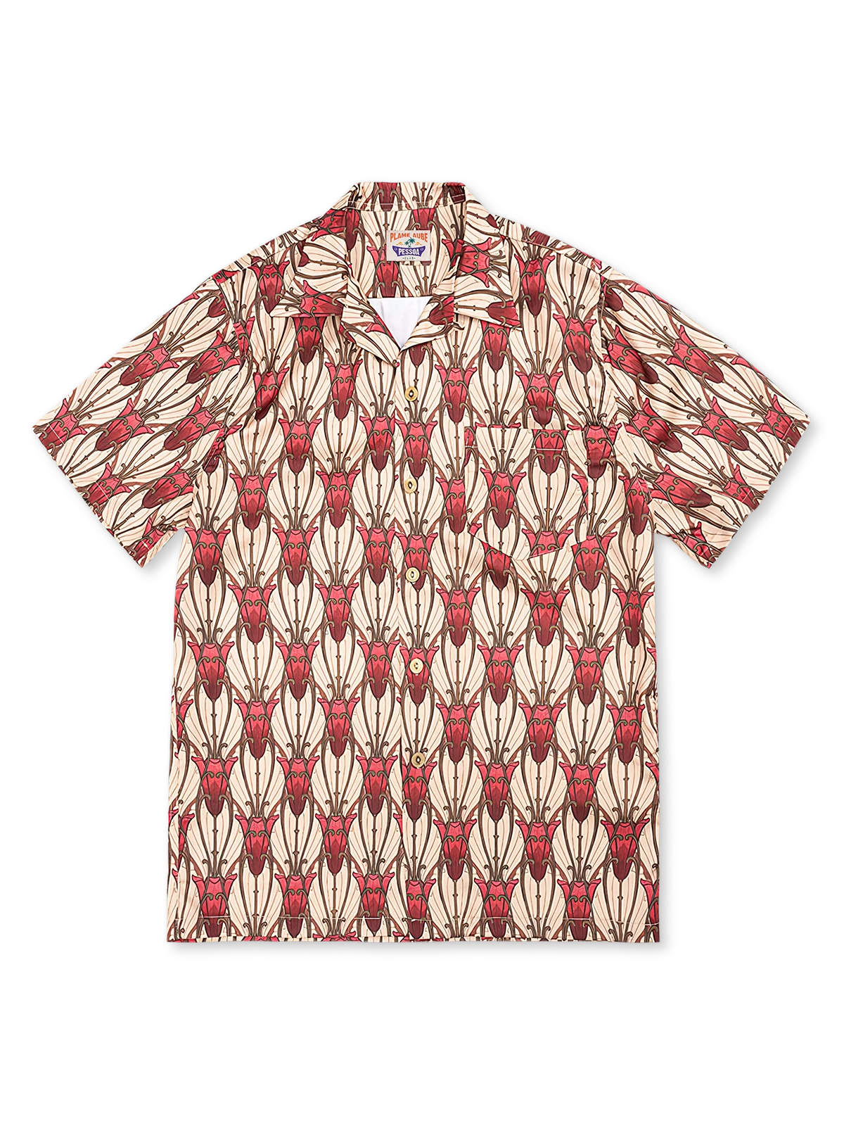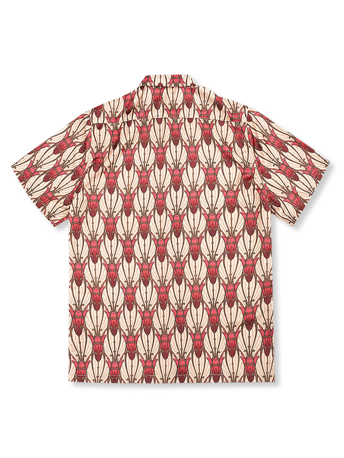 このアロハシャツは、アメリカンヴィンテージスタイルが溢れる、規則的なプリントデザインを採用しています。そのデザインはクリアで清潔感のある視覚効果を持ち、鮮やかなカラーを使用して、シャツ全体をより活き活きとした印象に仕上げています。