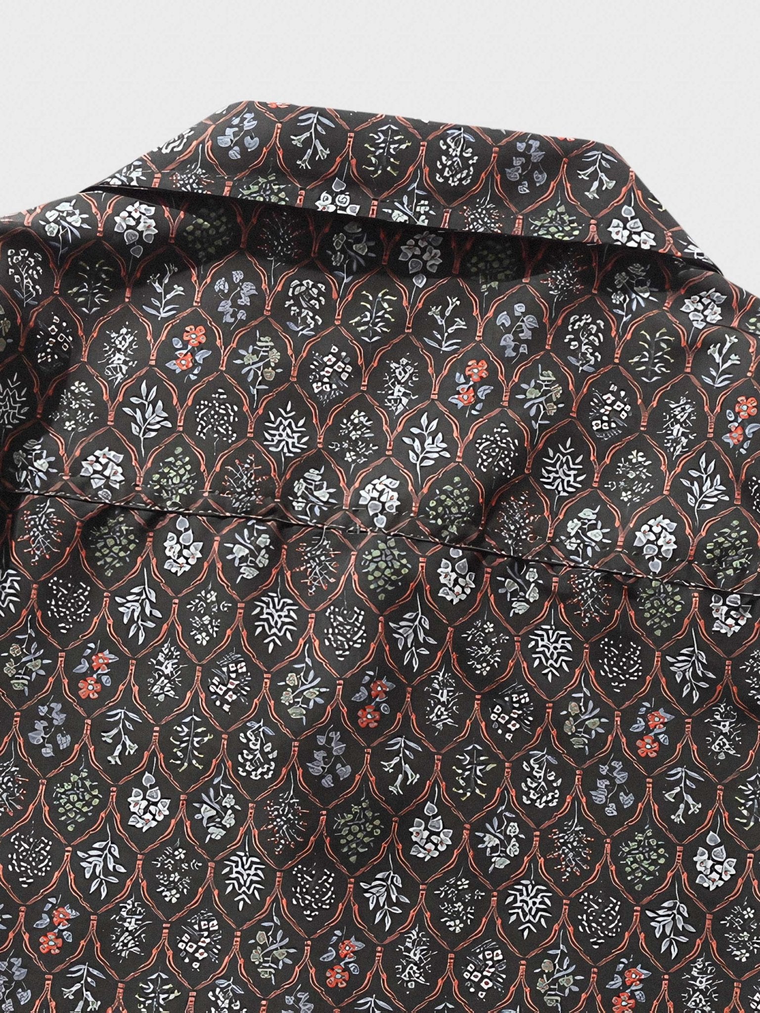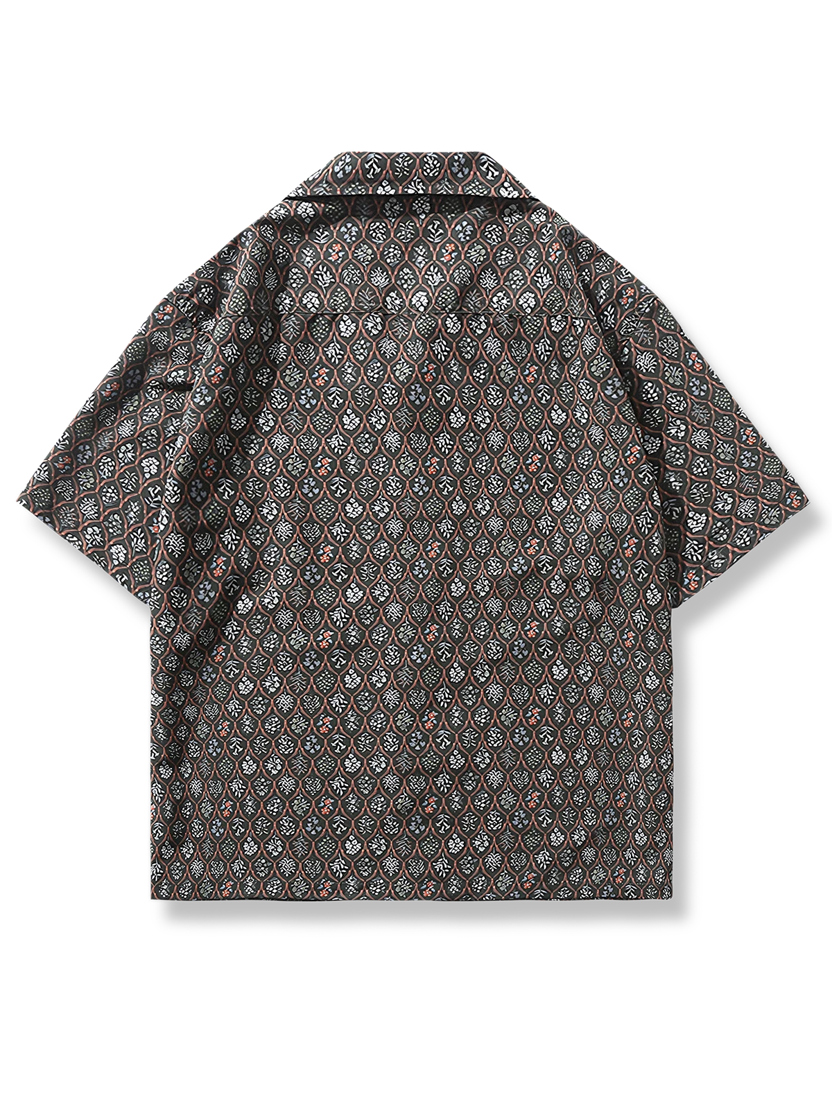 植物の花びらなどの全印花パターンが施されて、『本草図譜』をインスピレーションにしたデザインがシャツ全体に広がっています。豊富なドレープ感とゆったりとした快適なシルエットが、今のトレンド感を表現し、流行の雰囲気を醸し出しています。