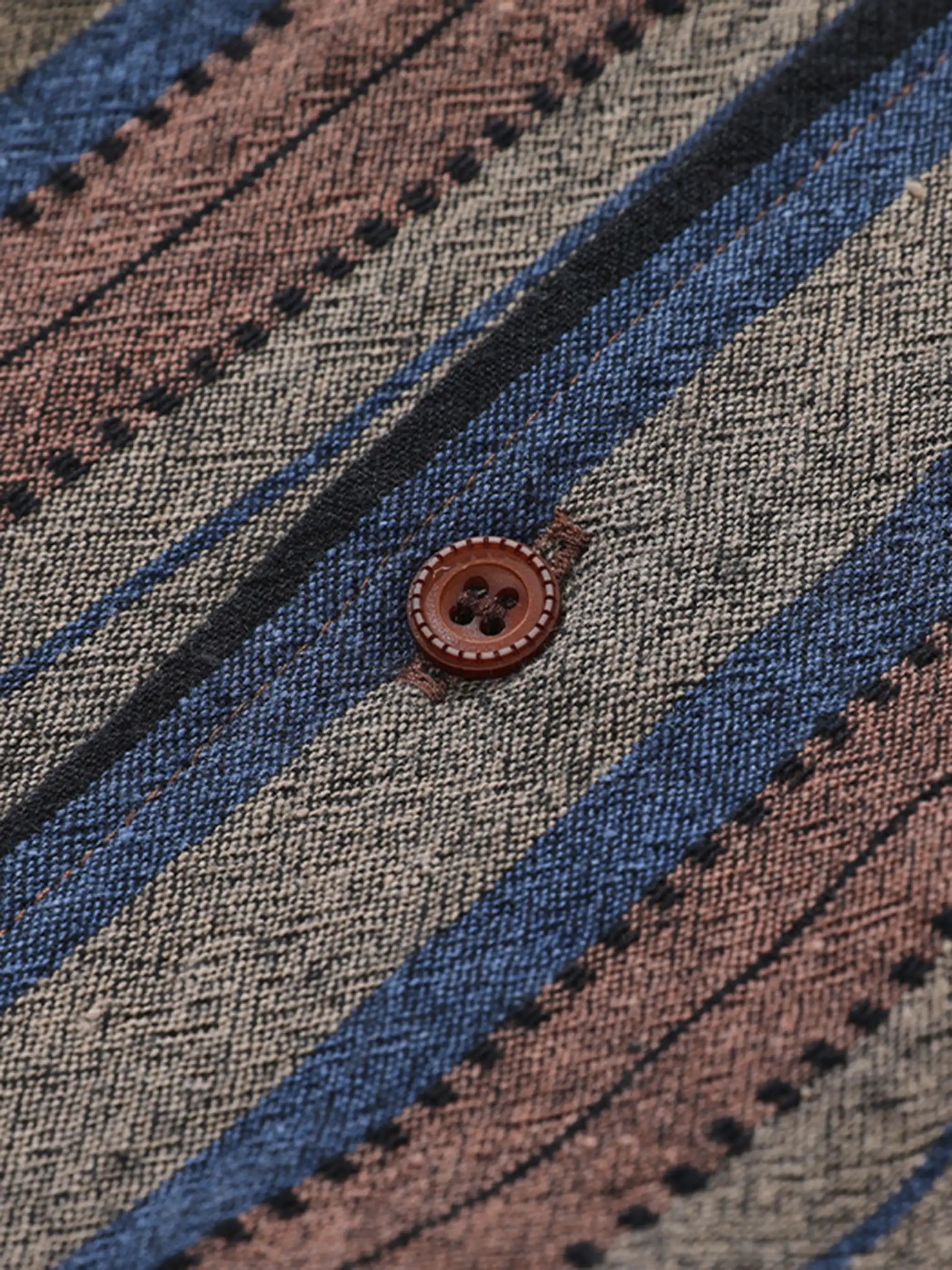縦に走るカラーラインが古き良きユーズド感を演出しつつ、ややオーバーサイズのシルエットが今どきのリラックスムードを醸成。1950年代のワークシャツから着想を得た堅牢な縫製と木目調ボタンが、毎シーズン長く愛用できるクオリティを約束します。綿×ポリエステル混紡生地は速乾性を備え、ジーンズやチノ、ショーツとのコーディネートでも崩れずにスマートをキープ。日常の通勤から週末のリゾートまで、幅広いスタイルに寄り添います。